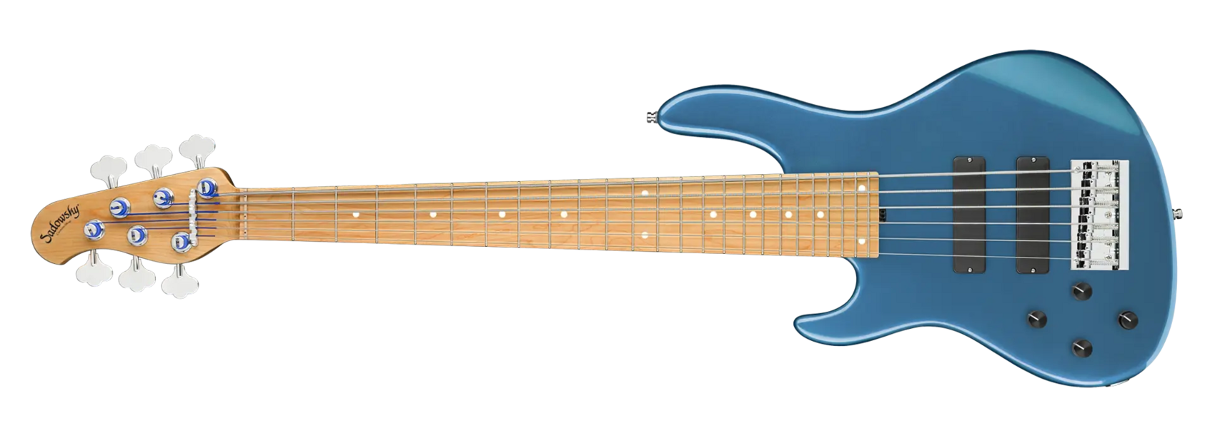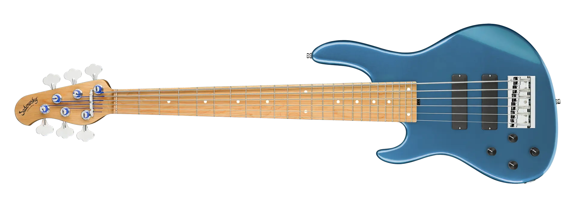 Der Sadowsky MasterBuilt 24-Fret Modern Bass ist perfekt für alle Spieler, die einen modernen Bass mit dem berühmten Sadowsky-Ton suchen: Niemals harsch oder schrill klingend, mit starken, kraftvollen, aber nie matschigen Bässen, mit präsenten, aber nicht zu aggressiven Mitten und einem süßen und luftigen Höhenbereich. Dieser 6-saitige Linkshänder-Bass hat einen Korpus aus amerikanischer Sumpfesche (chambered) mit einer Solid Dark Lake Placid Blue Metallic High Polish Lackierung. Die Korpusform ist schlank und unterdimensioniert mit tieferen Cutaways für bessere Bespielbarkeit und einen vollen Tonumfang von zwei Oktaven. Der Hals ist aus geröstetem amerikanischem Ahorn gefertigt und hat ein Griffbrett aus geröstetem amerikanischem Ahorn. Der Bass ist mit zwei passiven Sadowsky Soapbar-Tonabnehmern ausgestattet, beide in moderner Position, und verfügt über eine aktive Elektronik, die True Bypass, Vintage Tone Control sowie Treble- und Bass-Boost bietet. Die Hardware umfasst Sadowsky Light Open Gear Mechaniken und eine Sadowsky Quick String Release Brücke. Jeder Sadowsky MasterBuilt 24-Fret Modern Bass wird ausschließlich in unserer Werkstatt in Deutschland gefertigt und wiegt nicht mehr als 4,17 kg. Eine gute Wahl für Bassisten, die einen leichten, modern aussehenden Bass mit dem speziellen modernen Sadowsky-Sound suchen.