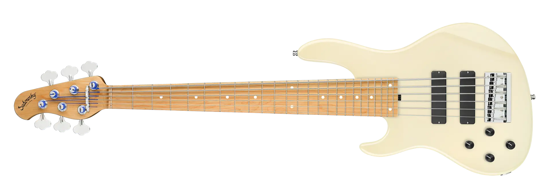 Der Sadowsky MasterBuilt 24-Fret Modern Bass ist perfekt für alle Spieler, die einen modernen Bass mit dem berühmten Sadowsky-Ton suchen: Niemals harsch oder schrill klingend, mit starken, kraftvollen, aber nie matschigen Bässen, mit präsenten, aber nicht zu aggressiven Mitten und einem süßen und luftigen Höhenbereich. Dieser 6-saitige Linkshänder-Bass hat einen Korpus aus amerikanischer Sumpfesche (chambered) mit einer Solid Olympic White High Polish Lackierung. Die Korpusform ist schlank und unterdimensioniert mit tieferen Cutaways für bessere Bespielbarkeit und einen vollen Tonumfang von zwei Oktaven. Der Hals ist aus geröstetem amerikanischem Ahorn gefertigt und hat ein Griffbrett aus geröstetem amerikanischem Ahorn. Der Bass ist mit zwei passiven Sadowsky Soapbar-Tonabnehmern ausgestattet, beide in moderner Position, und verfügt über eine aktive Elektronik, die True Bypass, Vintage Tone Control sowie Treble- und Bass-Boost bietet. Die Hardware umfasst Sadowsky Light Open Gear Mechaniken und eine Sadowsky Quick String Release Brücke. Jeder Sadowsky MasterBuilt 24-Fret Modern Bass wird ausschließlich in unserer Werkstatt in Deutschland gefertigt und wiegt nicht mehr als 4,17 kg. Eine gute Wahl für Bassisten, die einen leichten, modern aussehenden Bass mit dem speziellen modernen Sadowsky-Sound suchen.