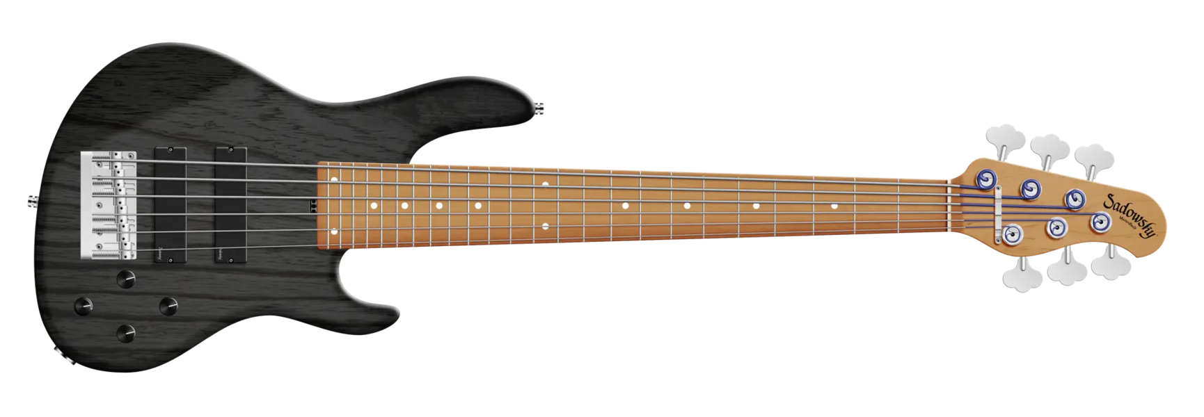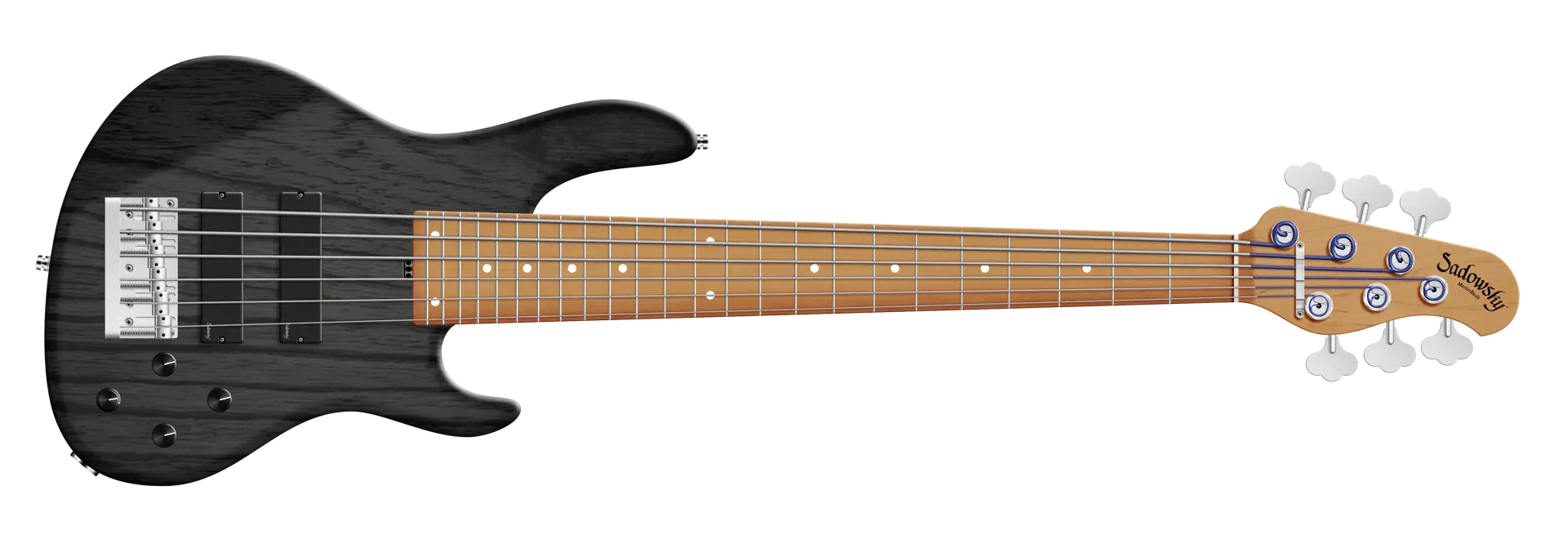 Der Sadowsky MasterBuilt 24-Fret Modern Bass ist perfekt für alle Spieler, die einen modernen Bass mit dem berühmten Sadowsky-Ton suchen: Niemals harsch oder schrill klingend, mit starken, kraftvollen, aber nie matschigen Bässen, mit präsenten, aber nicht zu aggressiven Mitten und einem süßen und luftigen Höhenbereich. Dieser 6-saitige Bass hat einen Korpus aus amerikanischer Sumpfesche (chambered) mit einer Nirvana Black Transparent Satin Lackierung. Die Korpusform ist schlank und unterdimensioniert mit tieferen Cutaways für bessere Bespielbarkeit und einen vollen Tonumfang von zwei Oktaven. Der Hals ist aus geröstetem amerikanischem Ahorn gefertigt und hat ein Griffbrett aus geröstetem amerikanischem Ahorn. Der Bass ist mit zwei passiven Sadowsky Soapbar-Tonabnehmern ausgestattet, beide in moderner Position, und verfügt über eine aktive Elektronik, die True Bypass, Vintage Tone Control sowie Treble- und Bass-Boost bietet. Die Hardware umfasst Sadowsky Light Open Gear Mechaniken und eine Sadowsky Quick String Release Brücke. Jeder Sadowsky MasterBuilt 24-Fret Modern Bass wird ausschließlich in unserer Werkstatt in Deutschland gefertigt und wiegt nicht mehr als 4,17 kg. Eine gute Wahl für Bassisten, die einen leichten, modern aussehenden Bass mit dem speziellen modernen Sadowsky-Sound suchen.