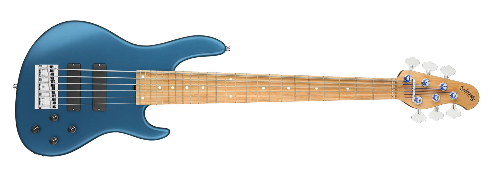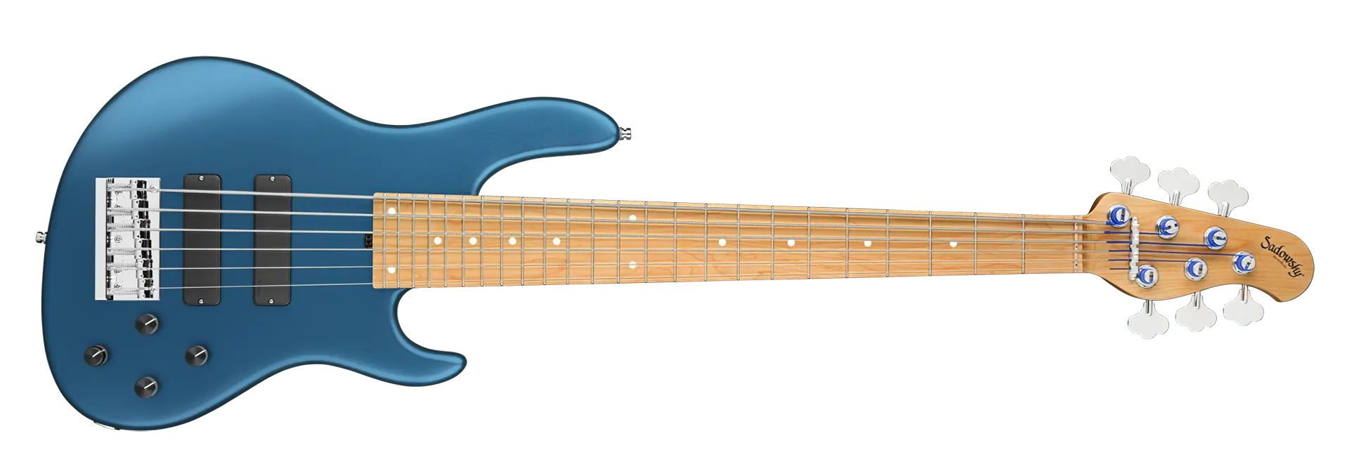 Der Sadowsky MasterBuilt 24-Fret Modern Bass ist perfekt für alle Spieler, die einen modernen Bass mit dem berühmten Sadowsky-Ton suchen: Niemals harsch oder schrill klingend, mit starken, kraftvollen, aber nie matschigen Bässen, mit präsenten, aber nicht zu aggressiven Mitten und einem süßen und luftigen Höhenbereich. Dieser 6-saitige Bass hat einen Korpus aus amerikanischer Sumpfesche (chambered) mit einer Solid Dark Lake Placid Blue Metallic Satin Lackierung. Die Korpusform ist schlank und unterdimensioniert mit tieferen Cutaways für bessere Bespielbarkeit und einen vollen Tonumfang von zwei Oktaven. Der Hals ist aus geröstetem amerikanischem Ahorn gefertigt und hat ein Griffbrett aus geröstetem amerikanischem Ahorn. Der Bass ist mit zwei passiven Sadowsky Soapbar-Tonabnehmern ausgestattet, beide in moderner Position, und verfügt über eine aktive Elektronik, die True Bypass, Vintage Tone Control sowie Treble- und Bass-Boost bietet. Die Hardware umfasst Sadowsky Light Open Gear Mechaniken und eine Sadowsky Quick String Release Brücke. Jeder Sadowsky MasterBuilt 24-Fret Modern Bass wird ausschließlich in unserer Werkstatt in Deutschland gefertigt und wiegt nicht mehr als 4,17 kg. Eine gute Wahl für Bassisten, die einen leichten, modern aussehenden Bass mit dem speziellen modernen Sadowsky-Sound suchen.