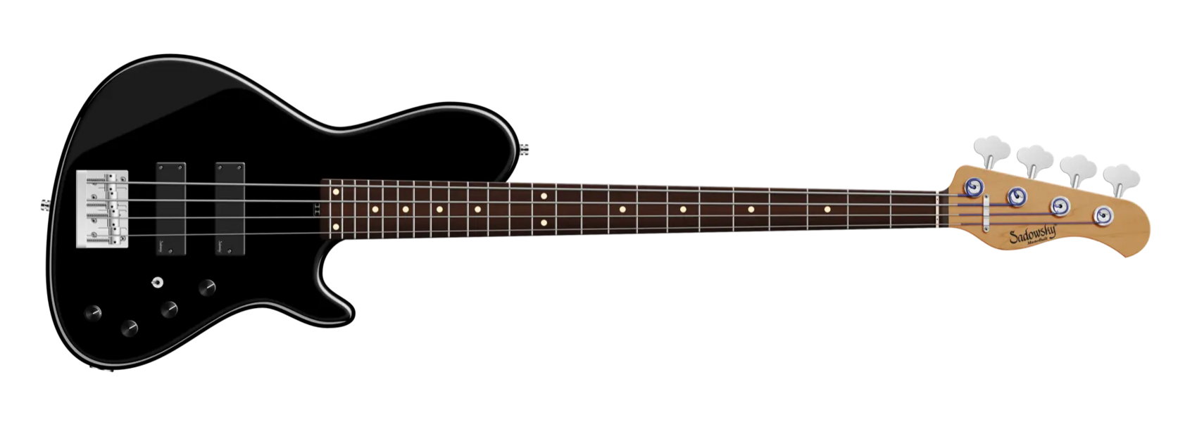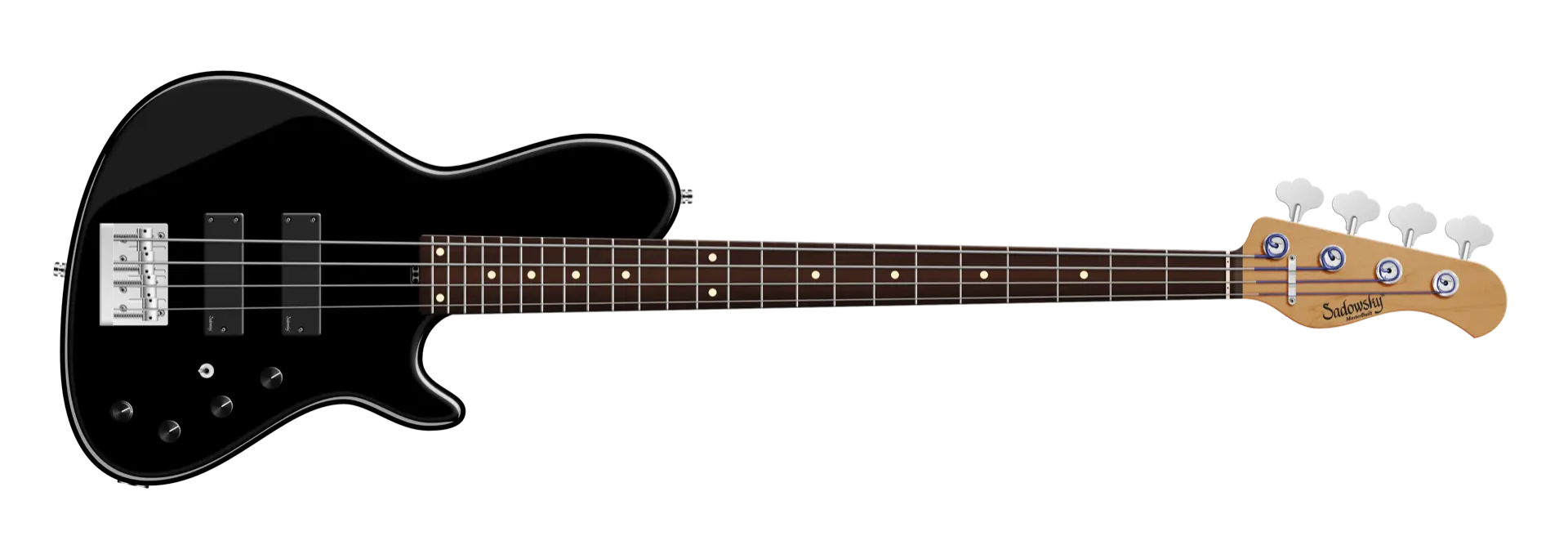 Der Sadowsky MasterBuilt 24-Fret Single Cut Bass 4-saitiger Bass verfügt über einen schlanken Single-Cut-Stil Korpus aus amerikanischer Roterle (chambered) mit einer Solid Black High Polish Lackierung. Der Hals ist aus geröstetem amerikanischem Ahorn gefertigt und mit einem Morado (Pau Ferro) Griffbrett ausgestattet. Zu den besonderen Merkmalen dieses Basses gehören Sadowsky Soapbar Pickups sowie Rogers berühmte Elektronik mit einem Preamp mit schaltbarem Mid-Boost und Trimmpoti (wahlweise 500 oder 800 Hz, schmal- oder breitbandig), Vintage Tone Control und Preamp Bypass. Zu den Reglern gehören Volume, Balance, VTC (P/P), Treble und Bass. Die Hardware umfasst eine Sadowsky Quick String Release Bridge und leichte, offene Sadowsky Mechaniken. Ein Sadowsky MasterBuilt 24-Fret Single Cut Bass, der ausschließlich in Deutschland hergestellt wird, wiegt nie mehr als 3,8 kg. Er ist eine gute Wahl für Spieler, die einen leichten Single-Cut-Bass mit dem berühmten Sadowsky-Ton suchen: ein starker, kraftvoller Bass, der nie matschig ist. Mitten, die präsent, aber nicht zu aggressiv sind, und ein süßer und luftiger Höhenbereich.