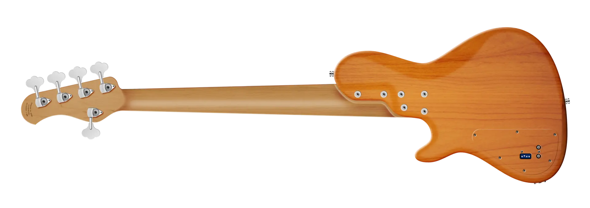Der Sadowsky MasterBuilt 24-Fret Single Cut Bass 5-saitiger Bass verfügt über einen schlanken Single-Cut-Stil Korpus aus amerikanischer Roterle (chambered) mit einer Honey Violin Transparent Satin Lackierung. Der Hals ist aus geröstetem amerikanischem Ahorn gefertigt und mit einem Morado (Pau Ferro) Griffbrett ausgestattet. Zu den besonderen Merkmalen dieses Basses gehören Sadowsky Soapbar Pickups sowie Rogers berühmte Elektronik mit einem Preamp mit schaltbarem Mid-Boost und Trimmpoti (wahlweise 500 oder 800 Hz, schmal- oder breitbandig), Vintage Tone Control und Preamp Bypass. Zu den Reglern gehören Volume, Balance, VTC (P/P), Treble und Bass. Die Hardware umfasst eine Sadowsky Quick String Release Bridge und leichte, offene Sadowsky Mechaniken. Ein Sadowsky MasterBuilt 24-Fret Single Cut Bass, der ausschließlich in Deutschland hergestellt wird, wiegt nie mehr als 3,8 kg. Er ist eine gute Wahl für Spieler, die einen leichten Single-Cut-Bass mit dem berühmten Sadowsky-Ton suchen: ein starker, kraftvoller Bass, der nie matschig ist. Mitten, die präsent, aber nicht zu aggressiv sind, und ein süßer und luftiger Höhenbereich.