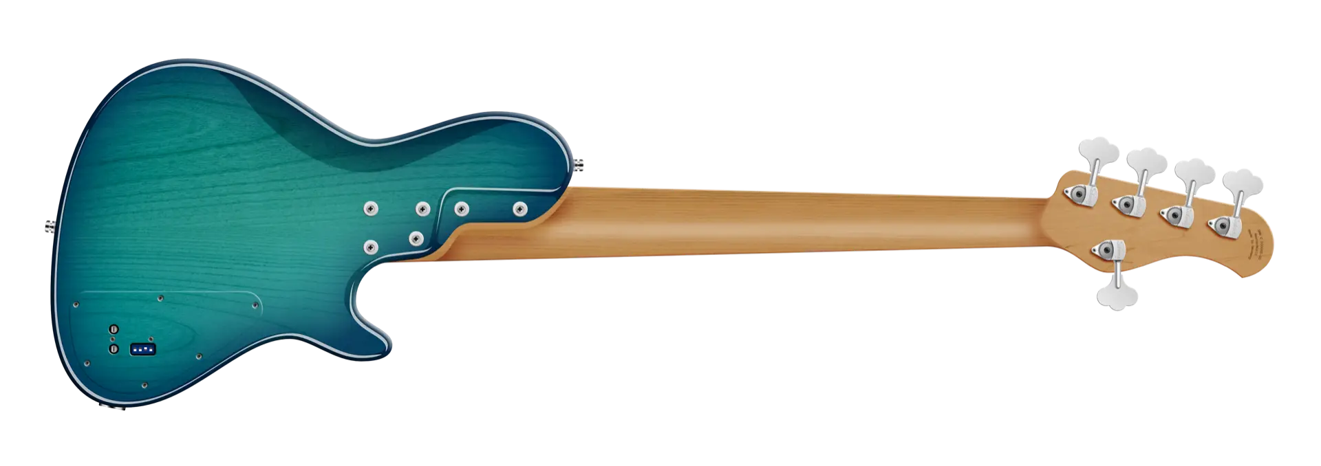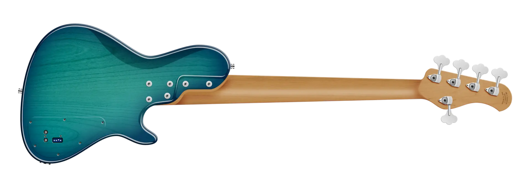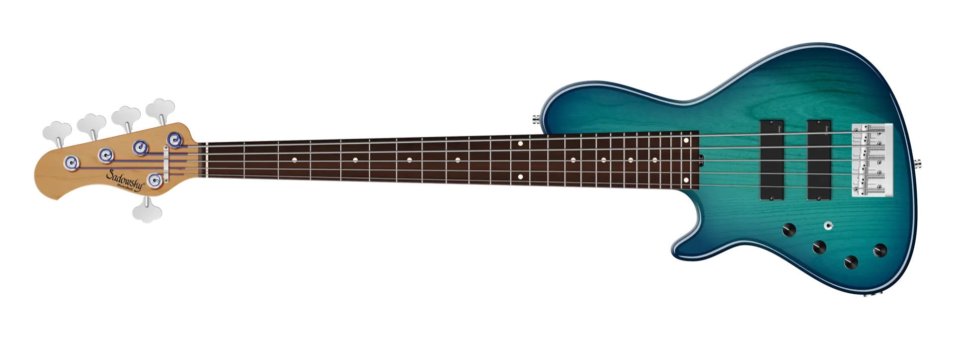 Der Sadowsky MasterBuilt 24-Fret Single Cut Bass 5-saitiger Linkshänder-Bass verfügt über einen schlanken Single-Cut-Stil Korpus aus amerikanischer Roterle (chambered) mit einer Bora Blue Burst Transparent High Polish Lackierung. Der Hals ist aus geröstetem amerikanischem Ahorn gefertigt und mit einem Morado (Pau Ferro) Griffbrett ausgestattet. Zu den besonderen Merkmalen dieses Basses gehören Sadowsky Soapbar Pickups sowie Rogers berühmte Elektronik mit einem Preamp mit schaltbarem Mid-Boost und Trimmpoti (wahlweise 500 oder 800 Hz, schmal- oder breitbandig), Vintage Tone Control und Preamp Bypass. Zu den Reglern gehören Volume, Balance, VTC (P/P), Treble und Bass. Die Hardware umfasst eine Sadowsky Quick String Release Bridge und leichte, offene Sadowsky Mechaniken. Ein Sadowsky MasterBuilt 24-Fret Single Cut Bass, der ausschließlich in Deutschland hergestellt wird, wiegt nie mehr als 3,8 kg. Er ist eine gute Wahl für Spieler, die einen leichten Single-Cut-Bass mit dem berühmten Sadowsky-Ton suchen: ein starker, kraftvoller Bass, der nie matschig ist. Mitten, die präsent, aber nicht zu aggressiv sind, und ein süßer und luftiger Höhenbereich.