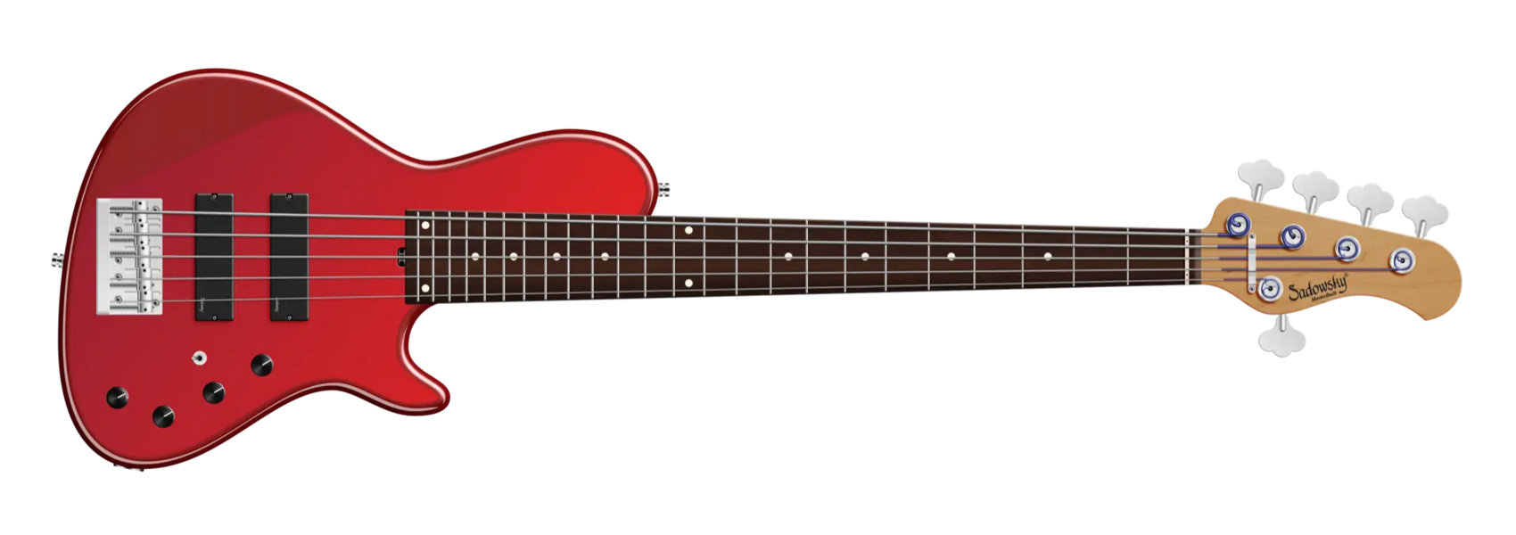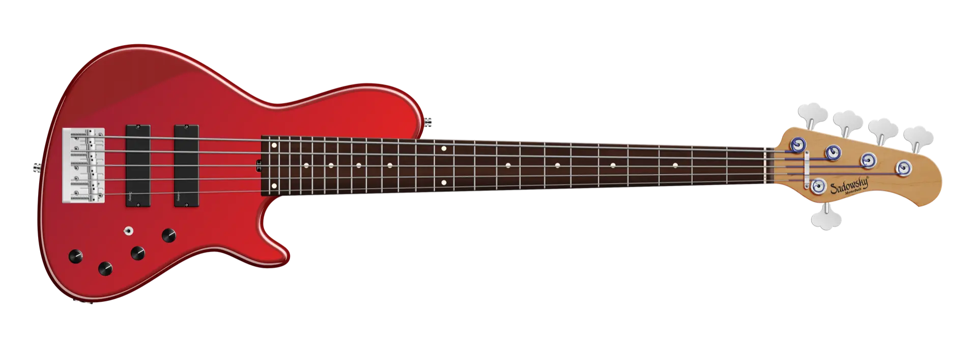 Der Sadowsky MasterBuilt 24-Fret Single Cut Bass 5-saitiger Bass verfügt über einen schlanken Single-Cut-Stil Korpus aus amerikanischer Roterle (chambered) mit einer Solid Candy Apple Red Metallic High Polish Lackierung. Der Hals ist aus geröstetem amerikanischem Ahorn gefertigt und mit einem Morado (Pau Ferro) Griffbrett ausgestattet. Zu den besonderen Merkmalen dieses Basses gehören Sadowsky Soapbar Pickups sowie Rogers berühmte Elektronik mit einem Preamp mit schaltbarem Mid-Boost und Trimmpoti (wahlweise 500 oder 800 Hz, schmal- oder breitbandig), Vintage Tone Control und Preamp Bypass. Zu den Reglern gehören Volume, Balance, VTC (P/P), Treble und Bass. Die Hardware umfasst eine Sadowsky Quick String Release Bridge und leichte, offene Sadowsky Mechaniken. Ein Sadowsky MasterBuilt 24-Fret Single Cut Bass, der ausschließlich in Deutschland hergestellt wird, wiegt nie mehr als 3,8 kg. Er ist eine gute Wahl für Spieler, die einen leichten Single-Cut-Bass mit dem berühmten Sadowsky-Ton suchen: ein starker, kraftvoller Bass, der nie matschig ist. Mitten, die präsent, aber nicht zu aggressiv sind, und ein süßer und luftiger Höhenbereich.