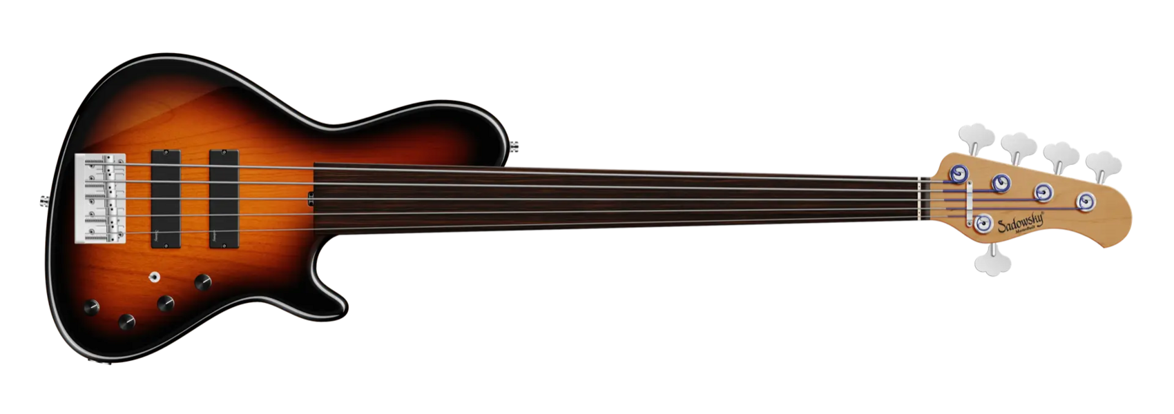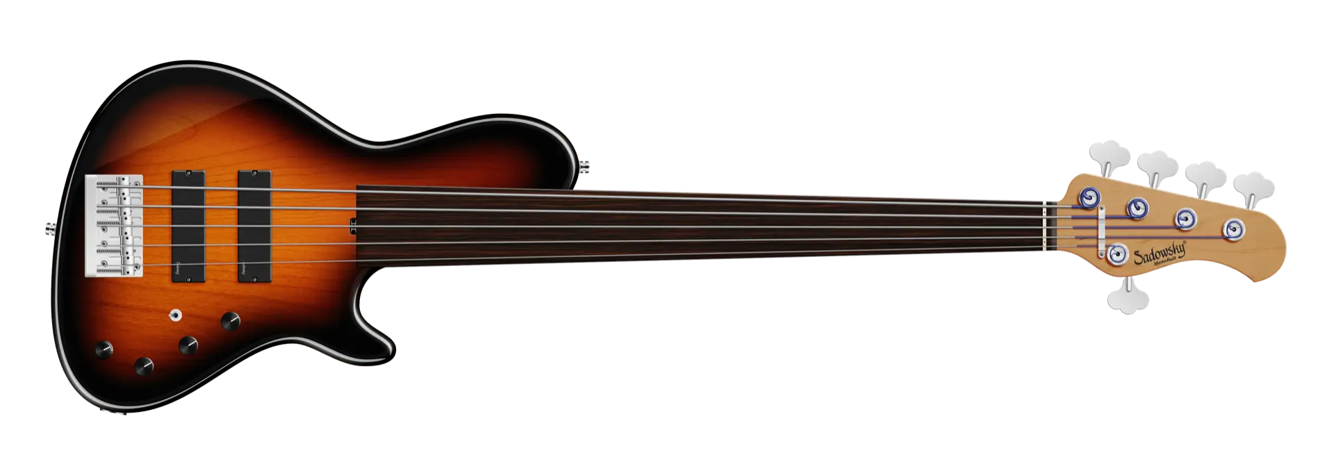 Der Sadowsky MasterBuilt 24-Fret Single Cut Bass 5-saitiger Fretless-Bass verfügt über einen schlanken Single-Cut-Stil Korpus aus amerikanischer Roterle (chambered) mit einer '59 Burst Transparent High Polish Lackierung. Der Hals ist aus geröstetem amerikanischem Ahorn gefertigt und mit einem Morado (Pau Ferro) Griffbrett ausgestattet. Zu den besonderen Merkmalen dieses Basses gehören Sadowsky Soapbar Pickups sowie Rogers berühmte Elektronik mit einem Preamp mit schaltbarem Mid-Boost und Trimmpoti (wahlweise 500 oder 800 Hz, schmal- oder breitbandig), Vintage Tone Control und Preamp Bypass. Zu den Reglern gehören Volume, Balance, VTC (P/P), Treble und Bass. Die Hardware umfasst eine Sadowsky Quick String Release Bridge und leichte, offene Sadowsky Mechaniken. Ein Sadowsky MasterBuilt 24-Fret Single Cut Bass, der ausschließlich in Deutschland hergestellt wird, wiegt nie mehr als 3,8 kg. Er ist eine gute Wahl für Spieler, die einen leichten Single-Cut-Bass mit dem berühmten Sadowsky-Ton suchen: ein starker, kraftvoller Bass, der nie matschig ist. Mitten, die präsent, aber nicht zu aggressiv sind, und ein süßer und luftiger Höhenbereich.