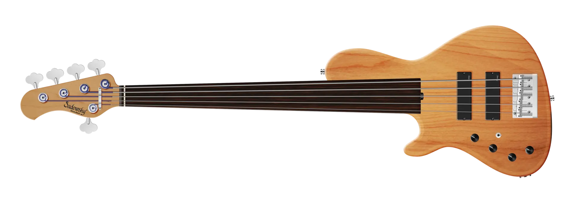 Der Sadowsky MasterBuilt 24-Fret Single Cut Bass 5-saitiger Linkshänder Fretless-Bass verfügt über einen schlanken Single-Cut-Stil Korpus aus amerikanischer Roterle (chambered) mit einer Natural Transparent Satin Lackierung. Der Hals ist aus geröstetem amerikanischem Ahorn gefertigt und mit einem Morado (Pau Ferro) Griffbrett ausgestattet. Zu den besonderen Merkmalen dieses Basses gehören Sadowsky Soapbar Pickups sowie Rogers berühmte Elektronik mit einem Preamp mit schaltbarem Mid-Boost und Trimmpoti (wahlweise 500 oder 800 Hz, schmal- oder breitbandig), Vintage Tone Control und Preamp Bypass. Zu den Reglern gehören Volume, Balance, VTC (P/P), Treble und Bass. Die Hardware umfasst eine Sadowsky Quick String Release Bridge und leichte, offene Sadowsky Mechaniken. Ein Sadowsky MasterBuilt 24-Fret Single Cut Bass, der ausschließlich in Deutschland hergestellt wird, wiegt nie mehr als 3,8 kg. Er ist eine gute Wahl für Spieler, die einen leichten Single-Cut-Bass mit dem berühmten Sadowsky-Ton suchen: ein starker, kraftvoller Bass, der nie matschig ist. Mitten, die präsent, aber nicht zu aggressiv sind, und ein süßer und luftiger Höhenbereich.