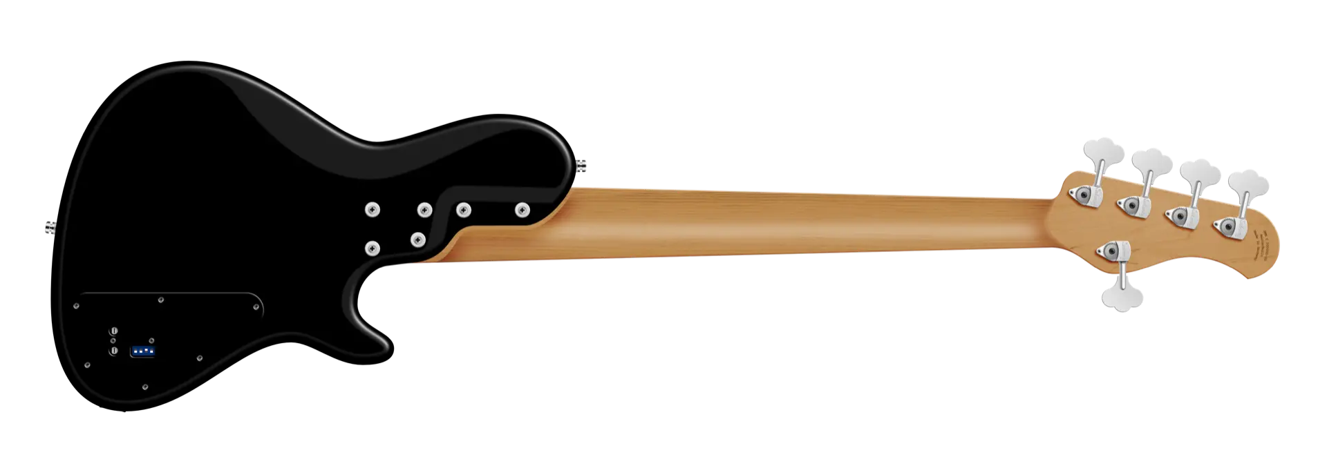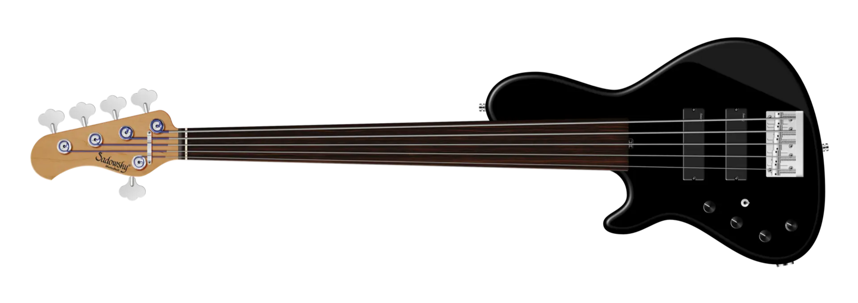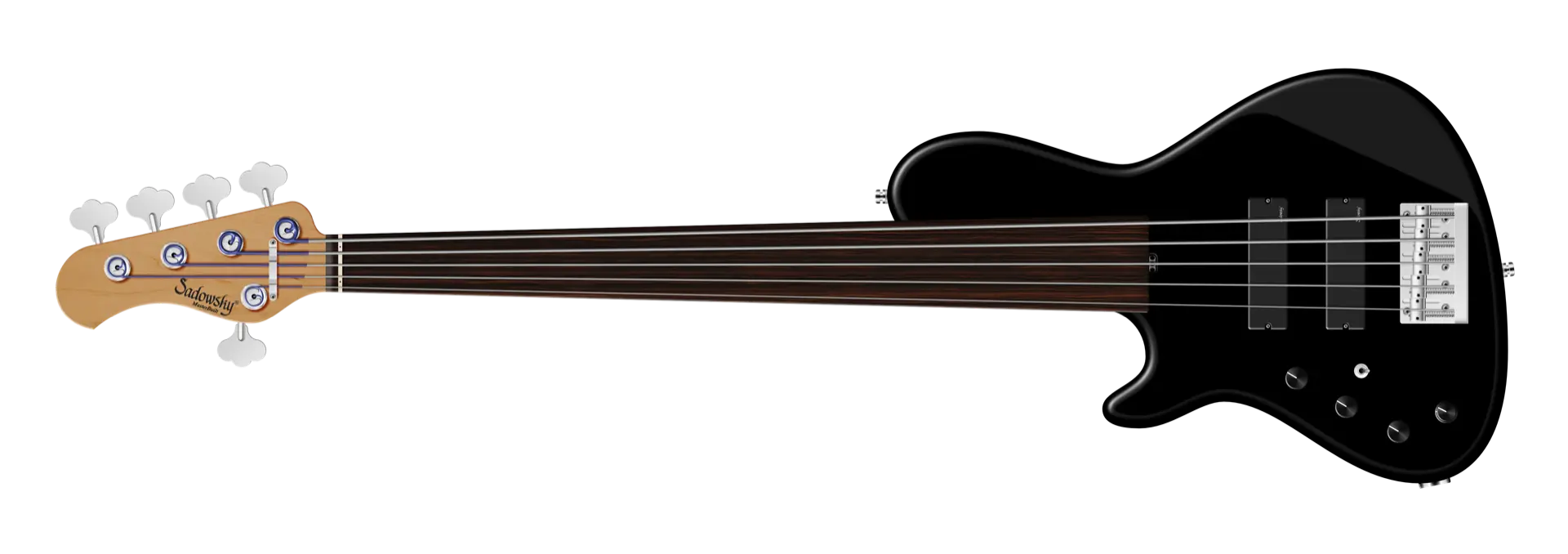 Der Sadowsky MasterBuilt 24-Fret Single Cut Bass 5-saitiger Linkshänder Fretless-Bass verfügt über einen schlanken Single-Cut-Stil Korpus aus amerikanischer Roterle (chambered) mit einer Solid Black Satin Lackierung. Der Hals ist aus geröstetem amerikanischem Ahorn gefertigt und mit einem Morado (Pau Ferro) Griffbrett ausgestattet. Zu den besonderen Merkmalen dieses Basses gehören Sadowsky Soapbar Pickups sowie Rogers berühmte Elektronik mit einem Preamp mit schaltbarem Mid-Boost und Trimmpoti (wahlweise 500 oder 800 Hz, schmal- oder breitbandig), Vintage Tone Control und Preamp Bypass. Zu den Reglern gehören Volume, Balance, VTC (P/P), Treble und Bass. Die Hardware umfasst eine Sadowsky Quick String Release Bridge und leichte, offene Sadowsky Mechaniken. Ein Sadowsky MasterBuilt 24-Fret Single Cut Bass, der ausschließlich in Deutschland hergestellt wird, wiegt nie mehr als 3,8 kg. Er ist eine gute Wahl für Spieler, die einen leichten Single-Cut-Bass mit dem berühmten Sadowsky-Ton suchen: ein starker, kraftvoller Bass, der nie matschig ist. Mitten, die präsent, aber nicht zu aggressiv sind, und ein süßer und luftiger Höhenbereich.