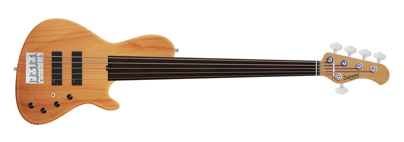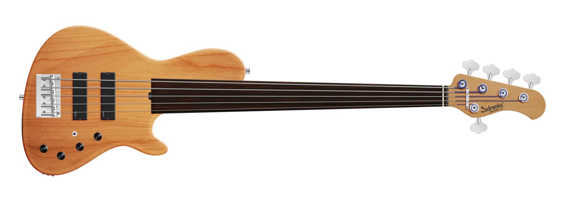 Der Sadowsky MasterBuilt 24-Fret Single Cut Bass 5-saitiger Fretless-Bass verfügt über einen schlanken Single-Cut-Stil Korpus aus amerikanischer Roterle (chambered) mit einer Natural Transparent Satin Lackierung. Der Hals ist aus geröstetem amerikanischem Ahorn gefertigt und mit einem Morado (Pau Ferro) Griffbrett ausgestattet. Zu den besonderen Merkmalen dieses Basses gehören Sadowsky Soapbar Pickups sowie Rogers berühmte Elektronik mit einem Preamp mit schaltbarem Mid-Boost und Trimmpoti (wahlweise 500 oder 800 Hz, schmal- oder breitbandig), Vintage Tone Control und Preamp Bypass. Zu den Reglern gehören Volume, Balance, VTC (P/P), Treble und Bass. Die Hardware umfasst eine Sadowsky Quick String Release Bridge und leichte, offene Sadowsky Mechaniken. Ein Sadowsky MasterBuilt 24-Fret Single Cut Bass, der ausschließlich in Deutschland hergestellt wird, wiegt nie mehr als 3,8 kg. Er ist eine gute Wahl für Spieler, die einen leichten Single-Cut-Bass mit dem berühmten Sadowsky-Ton suchen: ein starker, kraftvoller Bass, der nie matschig ist. Mitten, die präsent, aber nicht zu aggressiv sind, und ein süßer und luftiger Höhenbereich.