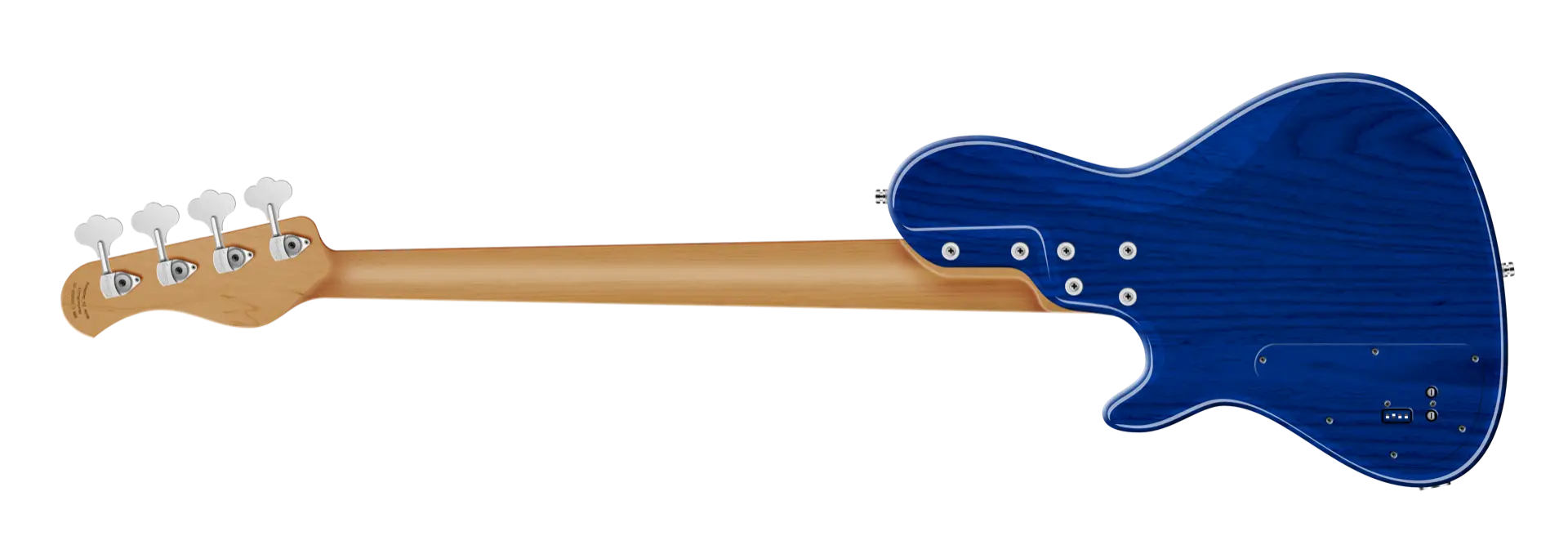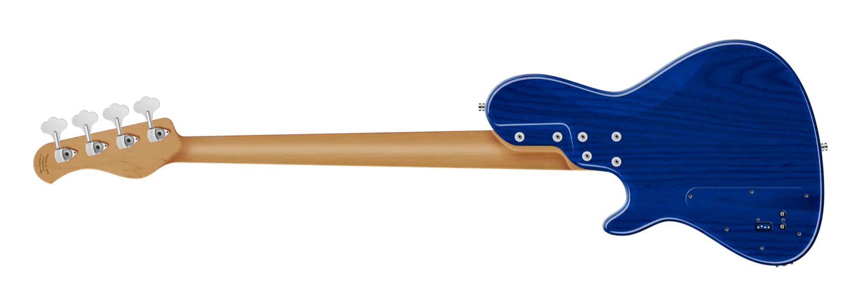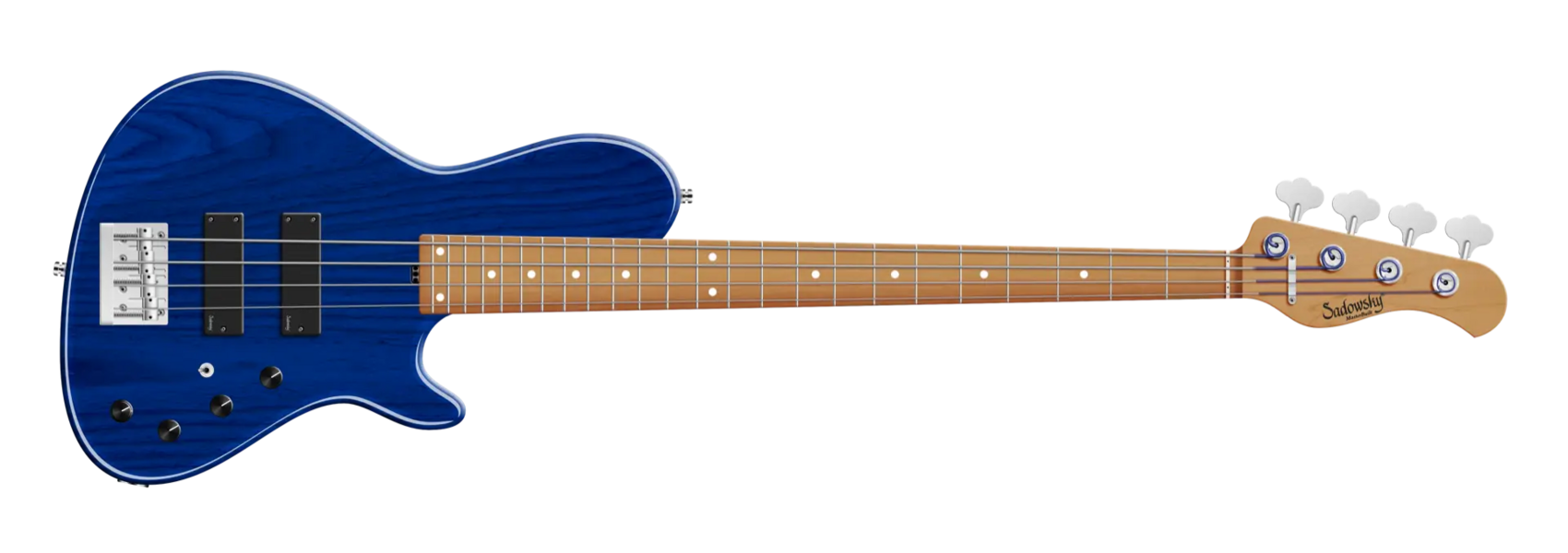 Der Sadowsky MasterBuilt 24-Fret Single Cut Bass 4-saitiger Bass verfügt über einen schlanken Single-Cut-Stil Korpus aus amerikanischer Sumpfesche (chambered) mit einer Ocean Blue Transparent High Polish Lackierung. Der Hals ist aus geröstetem amerikanischem Ahorn gefertigt und mit einem Griffbrett aus geröstetem amerikanischem Ahorn. Zu den besonderen Merkmalen dieses Basses gehören Sadowsky Soapbar Pickups sowie Rogers berühmte Elektronik mit einem Preamp mit schaltbarem Mid-Boost und Trimmpoti (wahlweise 500 oder 800 Hz, schmal- oder breitbandig), Vintage Tone Control und Preamp Bypass. Zu den Reglern gehören Volume, Balance, VTC (P/P), Treble und Bass. Die Hardware umfasst eine Sadowsky Quick String Release Bridge und leichte, offene Sadowsky Mechaniken. Ein Sadowsky MasterBuilt 24-Fret Single Cut Bass, der ausschließlich in Deutschland hergestellt wird, wiegt nie mehr als 3,8 kg. Er ist eine gute Wahl für Spieler, die einen leichten Single-Cut-Bass mit dem berühmten Sadowsky-Ton suchen: ein starker, kraftvoller Bass, der nie matschig ist. Mitten, die präsent, aber nicht zu aggressiv sind, und ein süßer und luftiger Höhenbereich.