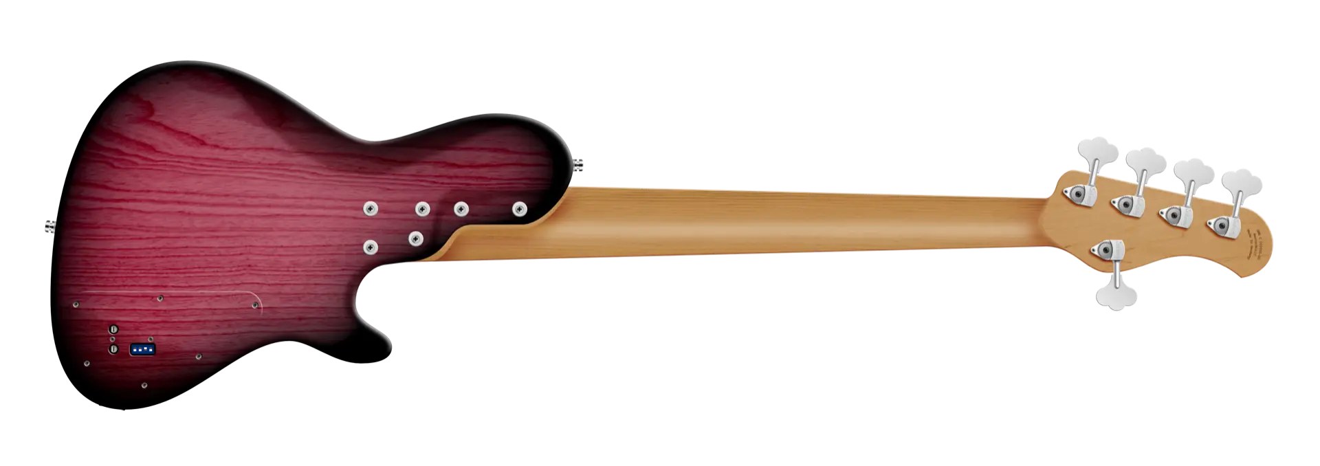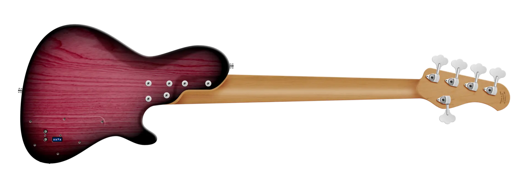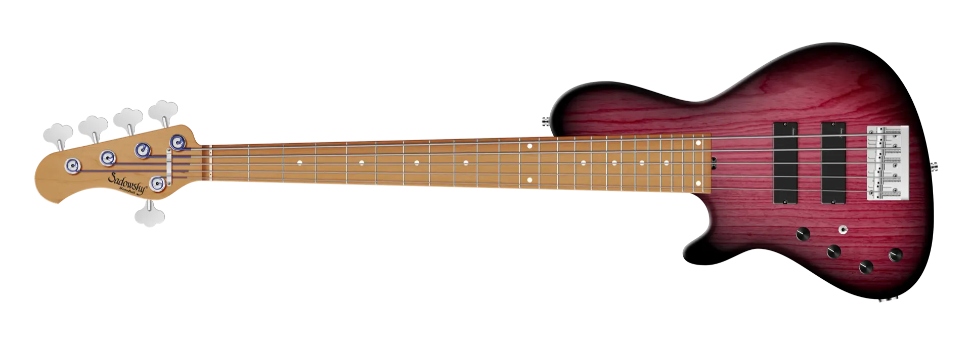 Der Sadowsky MasterBuilt 24-Fret Single Cut Bass 5-saitiger Linkshänder-Bass verfügt über einen schlanken Single-Cut-Stil Korpus aus amerikanischer Sumpfesche (chambered) mit einer Burgundy Blackburst Transparent Satin Lackierung. Der Hals ist aus geröstetem amerikanischem Ahorn gefertigt und mit einem Griffbrett aus geröstetem amerikanischem Ahorn. Zu den besonderen Merkmalen dieses Basses gehören Sadowsky Soapbar Pickups sowie Rogers berühmte Elektronik mit einem Preamp mit schaltbarem Mid-Boost und Trimmpoti (wahlweise 500 oder 800 Hz, schmal- oder breitbandig), Vintage Tone Control und Preamp Bypass. Zu den Reglern gehören Volume, Balance, VTC (P/P), Treble und Bass. Die Hardware umfasst eine Sadowsky Quick String Release Bridge und leichte, offene Sadowsky Mechaniken. Ein Sadowsky MasterBuilt 24-Fret Single Cut Bass, der ausschließlich in Deutschland hergestellt wird, wiegt nie mehr als 3,8 kg. Er ist eine gute Wahl für Spieler, die einen leichten Single-Cut-Bass mit dem berühmten Sadowsky-Ton suchen: ein starker, kraftvoller Bass, der nie matschig ist. Mitten, die präsent, aber nicht zu aggressiv sind, und ein süßer und luftiger Höhenbereich.