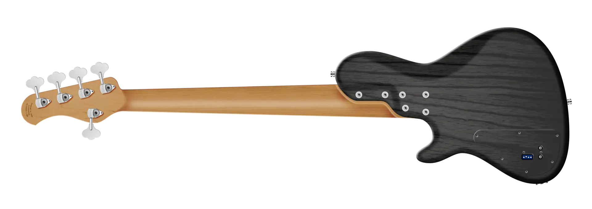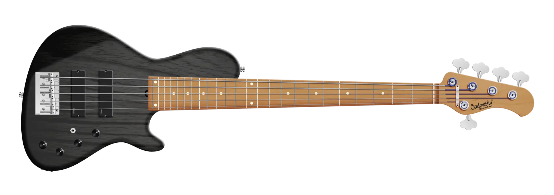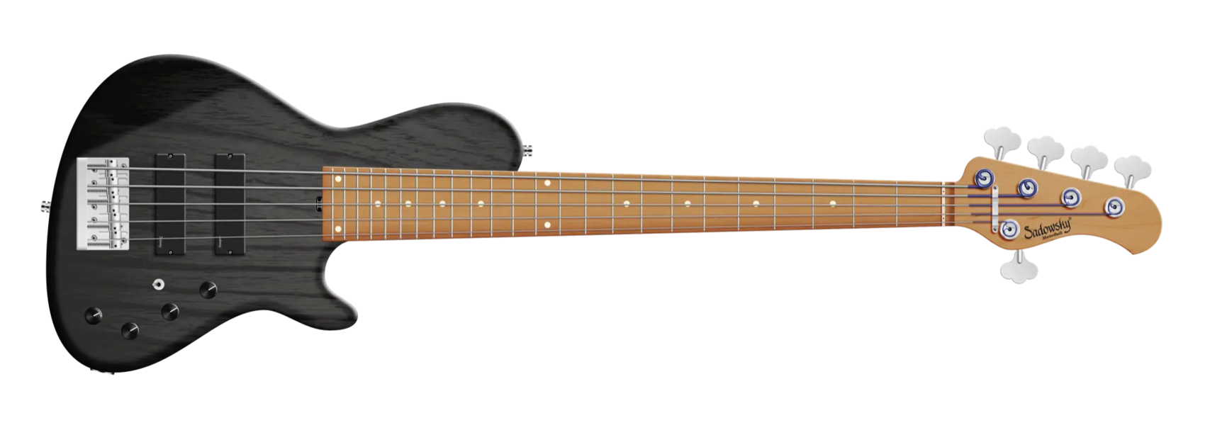 Der Sadowsky MasterBuilt 24-Fret Single Cut Bass 5-saitiger Bass verfügt über einen schlanken Single-Cut-Stil Korpus aus amerikanischer Sumpfesche (chambered) mit einer Nirvana Black Transparent Satin Lackierung. Der Hals ist aus geröstetem amerikanischem Ahorn gefertigt und mit einem Griffbrett aus geröstetem amerikanischem Ahorn. Zu den besonderen Merkmalen dieses Basses gehören Sadowsky Soapbar Pickups sowie Rogers berühmte Elektronik mit einem Preamp mit schaltbarem Mid-Boost und Trimmpoti (wahlweise 500 oder 800 Hz, schmal- oder breitbandig), Vintage Tone Control und Preamp Bypass. Zu den Reglern gehören Volume, Balance, VTC (P/P), Treble und Bass. Die Hardware umfasst eine Sadowsky Quick String Release Bridge und leichte, offene Sadowsky Mechaniken. Ein Sadowsky MasterBuilt 24-Fret Single Cut Bass, der ausschließlich in Deutschland hergestellt wird, wiegt nie mehr als 3,8 kg. Er ist eine gute Wahl für Spieler, die einen leichten Single-Cut-Bass mit dem berühmten Sadowsky-Ton suchen: ein starker, kraftvoller Bass, der nie matschig ist. Mitten, die präsent, aber nicht zu aggressiv sind, und ein süßer und luftiger Höhenbereich.