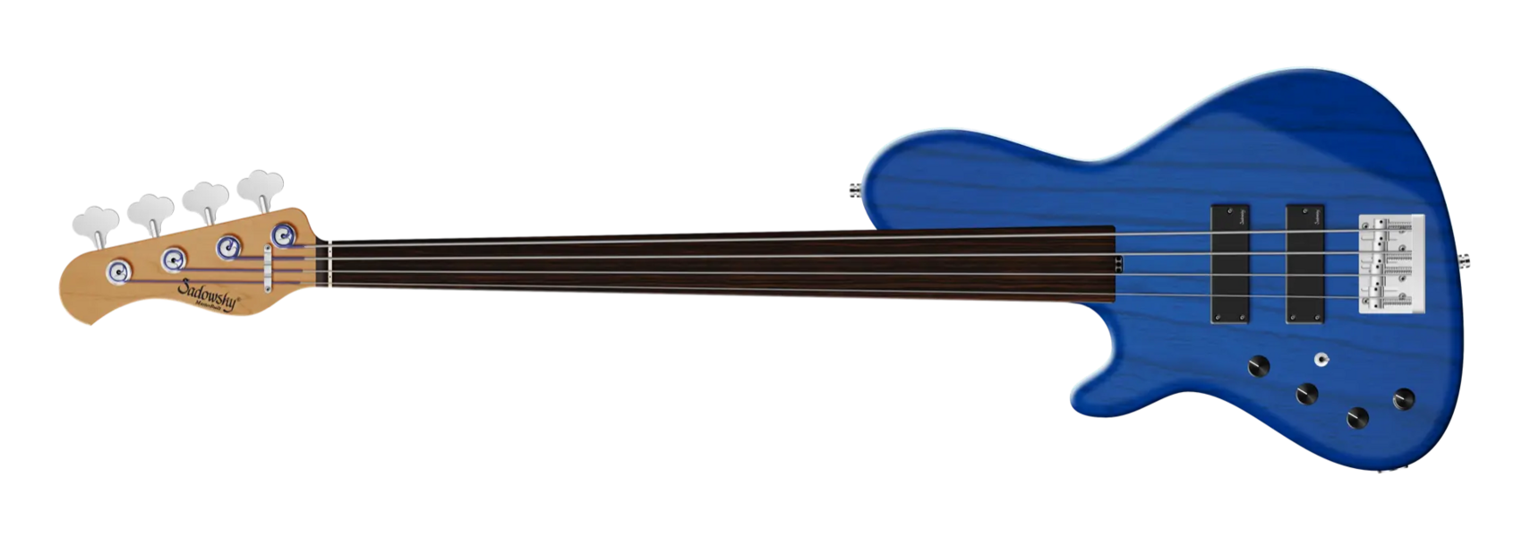 Der Sadowsky MasterBuilt 24-Fret Single Cut Bass 4-saitiger Linkshänder Fretless-Bass verfügt über einen schlanken Single-Cut-Stil Korpus aus amerikanischer Sumpfesche (chambered) mit einer Ocean Blue Transparent Satin Lackierung. Der Hals ist aus geröstetem amerikanischem Ahorn gefertigt und mit einem Griffbrett aus Tigerstripe Ebony. Zu den besonderen Merkmalen dieses Basses gehören Sadowsky Soapbar Pickups sowie Rogers berühmte Elektronik mit einem Preamp mit schaltbarem Mid-Boost und Trimmpoti (wahlweise 500 oder 800 Hz, schmal- oder breitbandig), Vintage Tone Control und Preamp Bypass. Zu den Reglern gehören Volume, Balance, VTC (P/P), Treble und Bass. Die Hardware umfasst eine Sadowsky Quick String Release Bridge und leichte, offene Sadowsky Mechaniken. Ein Sadowsky MasterBuilt 24-Fret Single Cut Bass, der ausschließlich in Deutschland hergestellt wird, wiegt nie mehr als 3,8 kg. Er ist eine gute Wahl für Spieler, die einen leichten Single-Cut-Bass mit dem berühmten Sadowsky-Ton suchen: ein starker, kraftvoller Bass, der nie matschig ist. Mitten, die präsent, aber nicht zu aggressiv sind, und ein süßer und luftiger Höhenbereich.