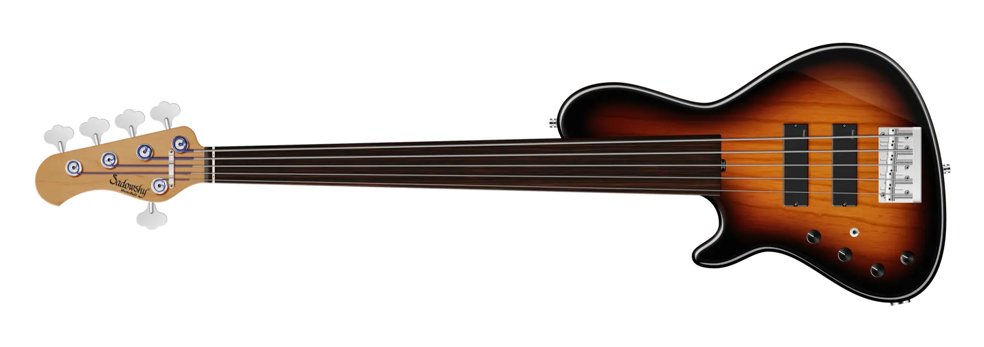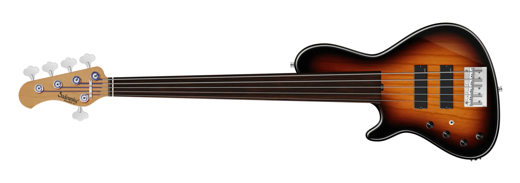 Der Sadowsky MasterBuilt 24-Fret Single Cut Bass 5-saitiger Linkshänder Fretless-Bass verfügt über einen schlanken Single-Cut-Stil Korpus aus amerikanischer Sumpfesche (chambered) mit einer '59 Burst Transparent High Polish Lackierung. Der Hals ist aus geröstetem amerikanischem Ahorn gefertigt und mit einem Griffbrett aus Tigerstripe Ebony. Zu den besonderen Merkmalen dieses Basses gehören Sadowsky Soapbar Pickups sowie Rogers berühmte Elektronik mit einem Preamp mit schaltbarem Mid-Boost und Trimmpoti (wahlweise 500 oder 800 Hz, schmal- oder breitbandig), Vintage Tone Control und Preamp Bypass. Zu den Reglern gehören Volume, Balance, VTC (P/P), Treble und Bass. Die Hardware umfasst eine Sadowsky Quick String Release Bridge und leichte, offene Sadowsky Mechaniken. Ein Sadowsky MasterBuilt 24-Fret Single Cut Bass, der ausschließlich in Deutschland hergestellt wird, wiegt nie mehr als 3,8 kg. Er ist eine gute Wahl für Spieler, die einen leichten Single-Cut-Bass mit dem berühmten Sadowsky-Ton suchen: ein starker, kraftvoller Bass, der nie matschig ist. Mitten, die präsent, aber nicht zu aggressiv sind, und ein süßer und luftiger Höhenbereich.