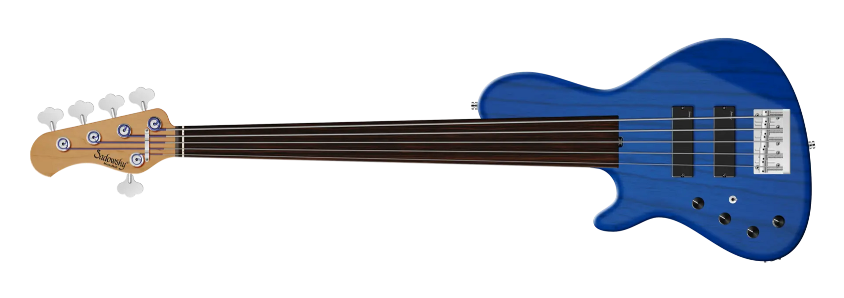 Der Sadowsky MasterBuilt 24-Fret Single Cut Bass 5-saitiger Linkshänder Fretless-Bass verfügt über einen schlanken Single-Cut-Stil Korpus aus amerikanischer Sumpfesche (chambered) mit einer Ocean Blue Transparent Satin Lackierung. Der Hals ist aus geröstetem amerikanischem Ahorn gefertigt und mit einem Griffbrett aus Tigerstripe Ebony. Zu den besonderen Merkmalen dieses Basses gehören Sadowsky Soapbar Pickups sowie Rogers berühmte Elektronik mit einem Preamp mit schaltbarem Mid-Boost und Trimmpoti (wahlweise 500 oder 800 Hz, schmal- oder breitbandig), Vintage Tone Control und Preamp Bypass. Zu den Reglern gehören Volume, Balance, VTC (P/P), Treble und Bass. Die Hardware umfasst eine Sadowsky Quick String Release Bridge und leichte, offene Sadowsky Mechaniken. Ein Sadowsky MasterBuilt 24-Fret Single Cut Bass, der ausschließlich in Deutschland hergestellt wird, wiegt nie mehr als 3,8 kg. Er ist eine gute Wahl für Spieler, die einen leichten Single-Cut-Bass mit dem berühmten Sadowsky-Ton suchen: ein starker, kraftvoller Bass, der nie matschig ist. Mitten, die präsent, aber nicht zu aggressiv sind, und ein süßer und luftiger Höhenbereich.