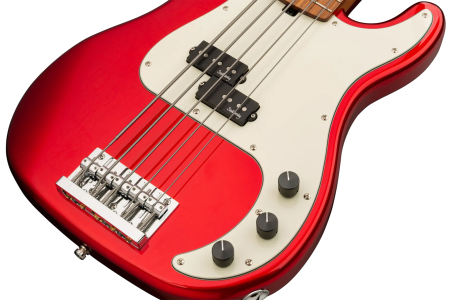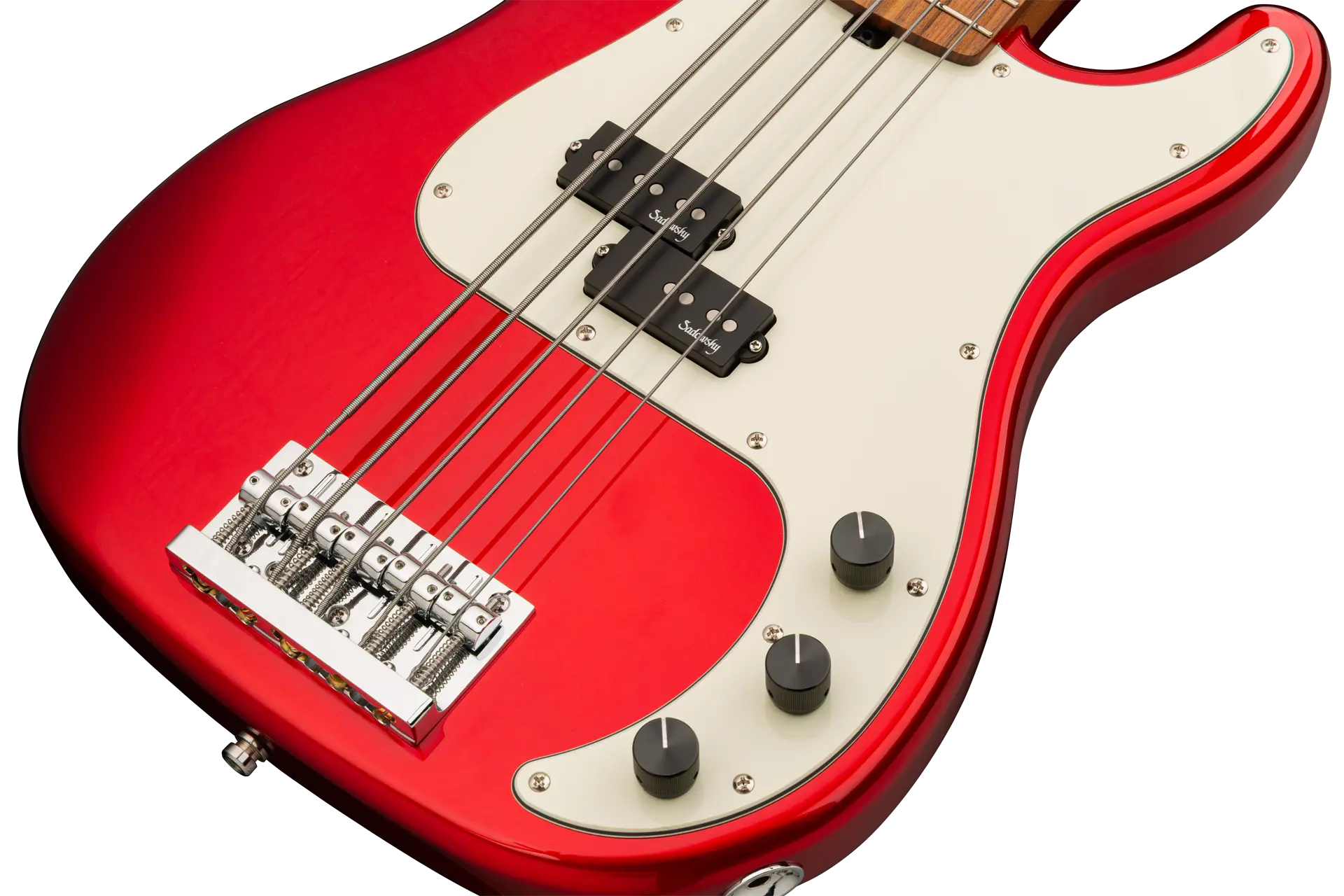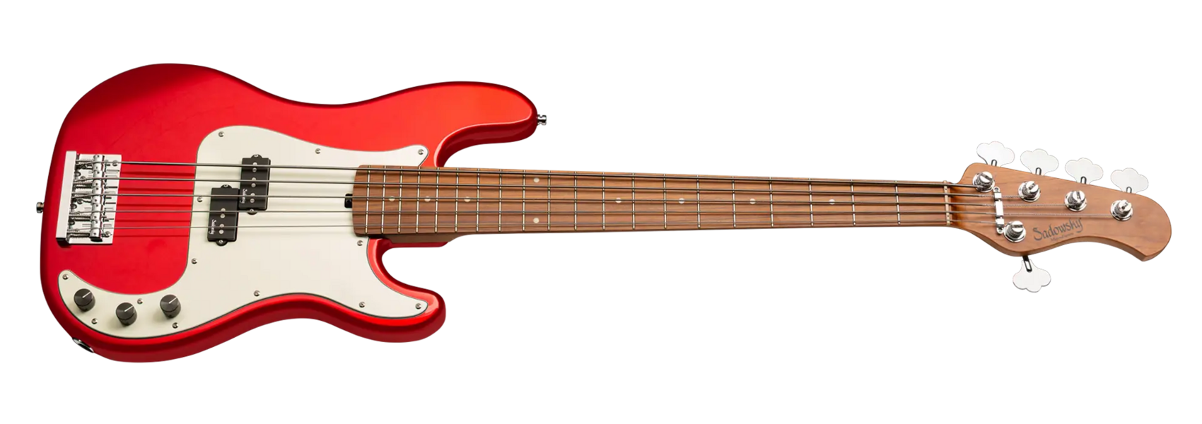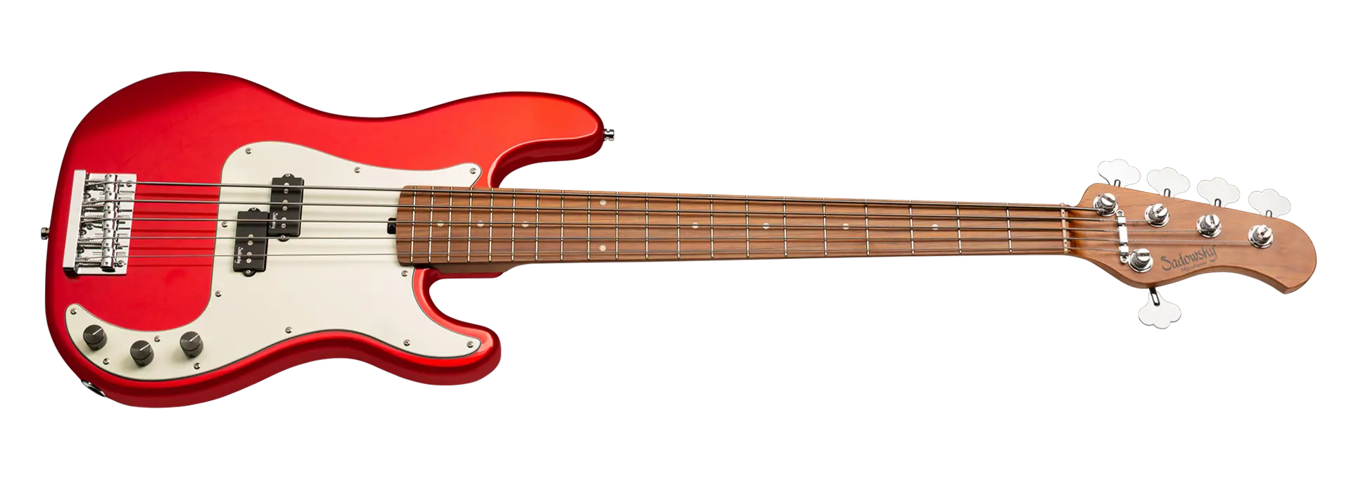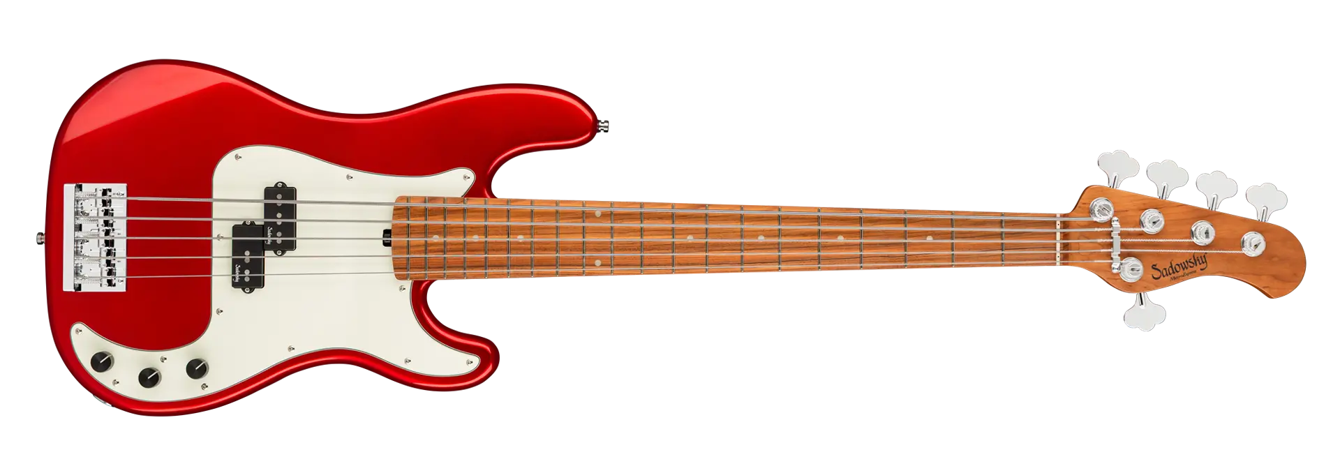 Roger Sadowskys Ziel war es schon immer, das Bassdesign zu verbessern, indem er einige sehr einzigartige und wichtige Verbesserungen vornahm. Durch die Verwendung seiner proprietären Spezialelektronik, leichter Mechaniken und ausgewählter Tonhölzer hat Roger diesen MetroExpress 20-Fret Ultra Vintage P Bass auf ein ganz anderes Niveau gehoben! Zu den Merkmalen gehören ein leichter, massiver Okoume-Korpus, der in Solid Candy Apple Red Metallic High Polish lackiert ist, ein Parchment Schlagbrett, ein Hals aus geröstetem Ahorn und ein Griffbrett aus Morado. Es ist ein fantastisch aussehender und spielbarer Bass, und wir sind sicher, dass Sie ihn gerne spielen werden! Unsere MetroExpress-Bässe sind der einfachste Weg, um den berühmten Sadowsky-Ton zu erreichen: Niemals harsch oder schrill klingend, mit starken, kraftvollen, aber niemals matschigen Bässen, mit präsenten, aber nicht zu aggressiven Mitten und einem süßen, luftigen Diskant.