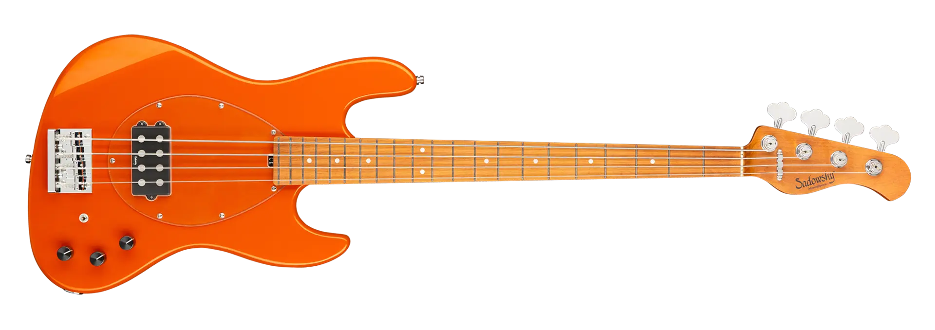Roger Sadowskys Ziel war es schon immer, das Bassdesign zu verbessern, indem er einige sehr einzigartige und wichtige Verbesserungen vornahm. Durch die Verwendung seiner proprietären Spezialelektronik, leichter Mechaniken und ausgewählter Tonhölzer hat Roger diesen MetroExpress 21-Fret Vintage M Bass 4-String Bass auf ein ganz anderes Niveau gehoben! Zu den Merkmalen gehören ein leichter, massiver Okoume-Korpus, der in Solid Candy Apple Orange Metallic High Polish lackiert ist, ein Transparent Schlagbrett, ein Hals aus geröstetem Ahorn und ein Griffbrett aus geröstetem Ahorn. Dies ist ein fantastisch aussehender und spielender Bass, und wir sind sicher, dass Sie ihn gerne spielen werden! Unsere MetroExpress-Bässe sind der einfachste Weg, um den berühmten Sadowsky-Ton zu erreichen: Niemals harsch oder schrill klingend, mit starken, kraftvollen, aber niemals matschigen Bässen, mit präsenten, aber nicht zu aggressiven Mitten und einem süßen, luftigen Diskant.