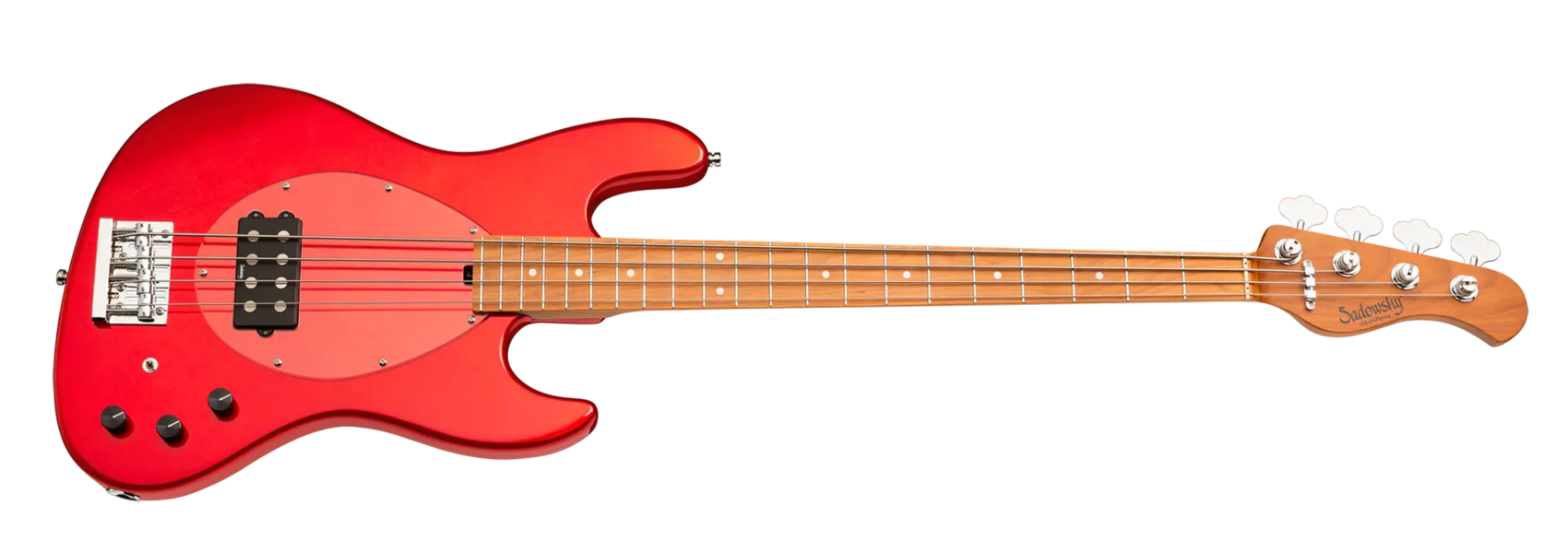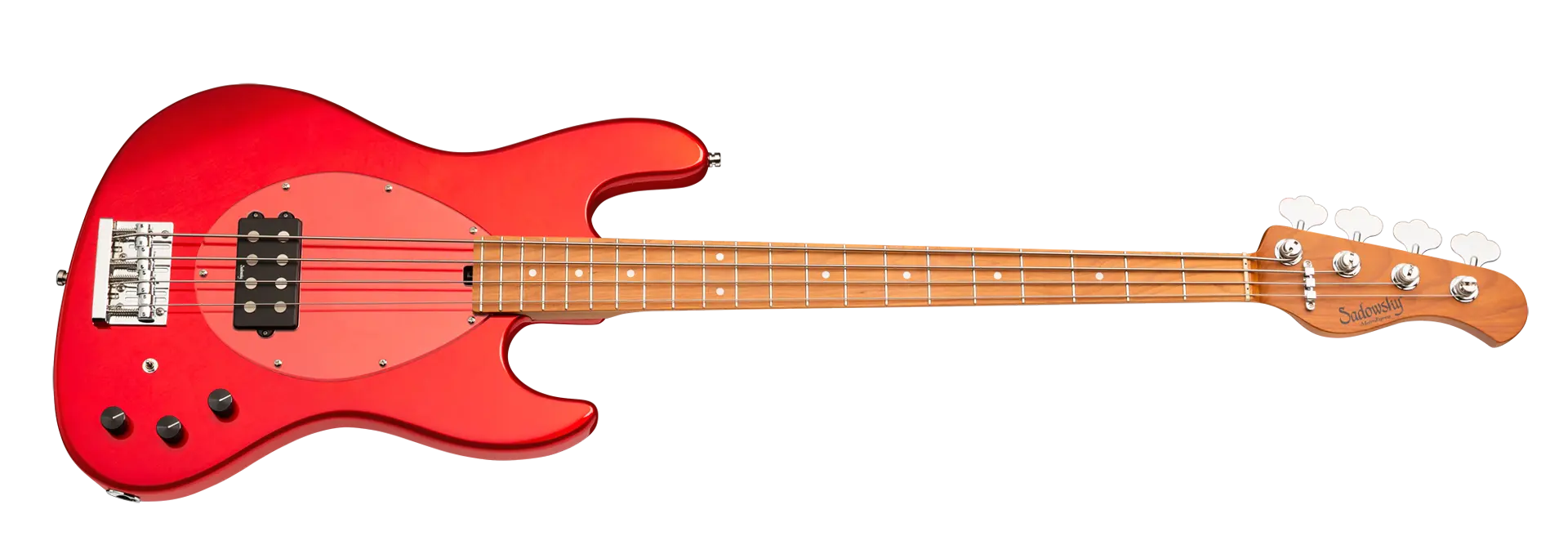 Roger Sadowskys Ziel war es schon immer, das Bassdesign zu verbessern, indem er einige sehr einzigartige und wichtige Verbesserungen vornahm. Durch die Verwendung seiner proprietären Spezialelektronik, leichter Mechaniken und ausgewählter Tonhölzer hat Roger diesen MetroExpress 21-Fret Vintage M Bass 4-String Bass auf ein ganz anderes Niveau gehoben! Zu den Merkmalen gehören ein leichter, massiver Okoume-Korpus, der in Solid Candy Apple Red Metallic High Polish lackiert ist, ein Transparent Schlagbrett, ein Hals aus geröstetem Ahorn und ein Griffbrett aus geröstetem Ahorn. Dies ist ein fantastisch aussehender und spielender Bass, und wir sind sicher, dass Sie ihn gerne spielen werden! Unsere MetroExpress-Bässe sind der einfachste Weg, um den berühmten Sadowsky-Ton zu erreichen: Niemals harsch oder schrill klingend, mit starken, kraftvollen, aber niemals matschigen Bässen, mit präsenten, aber nicht zu aggressiven Mitten und einem süßen, luftigen Diskant.