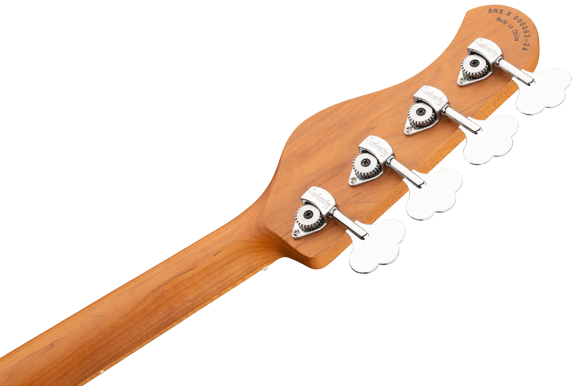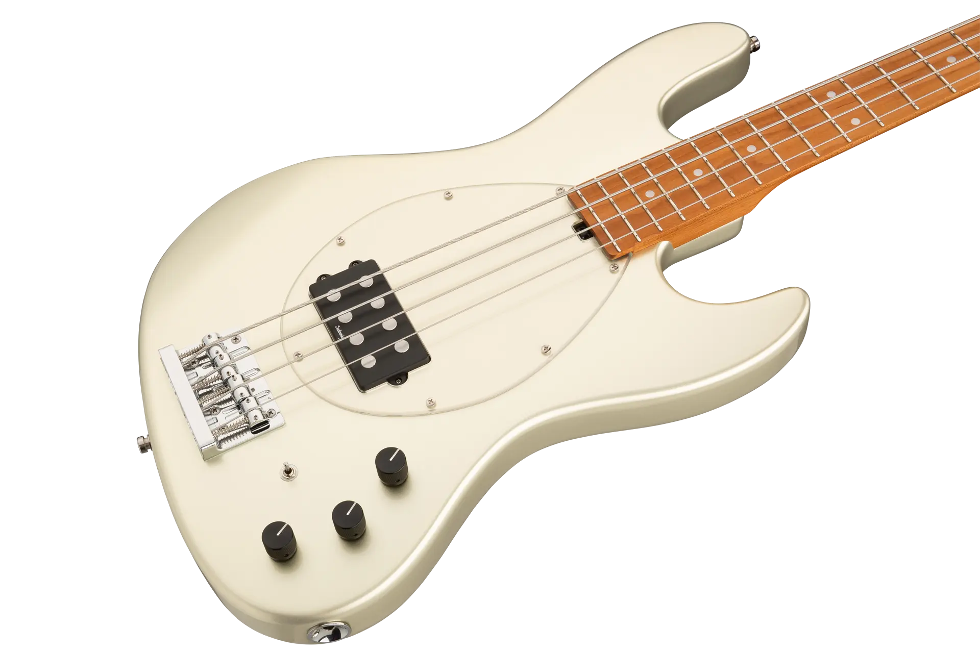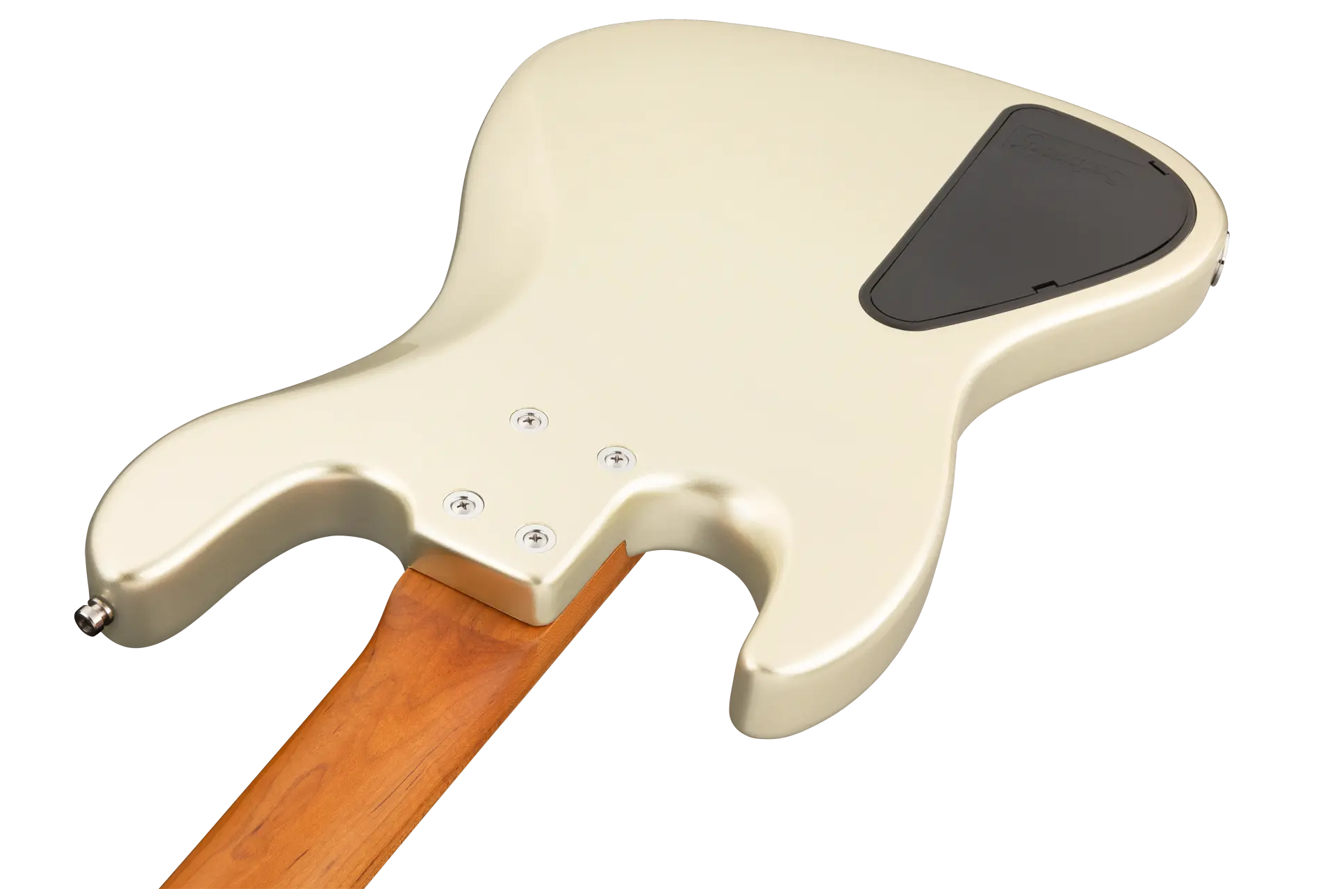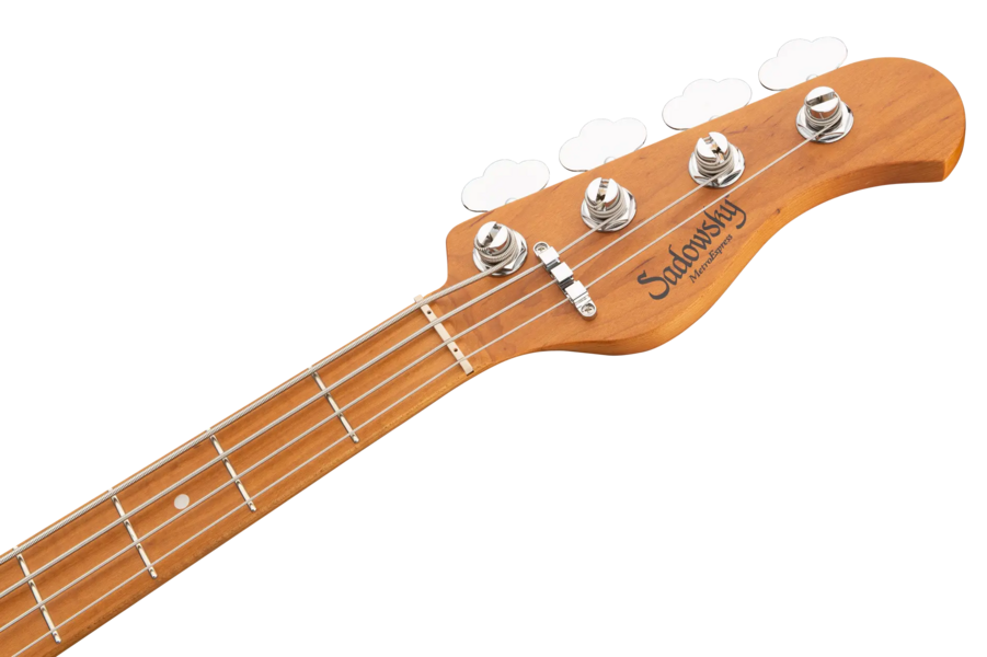 Roger Sadowskys Ziel war es schon immer, das Bassdesign zu verbessern, indem er einige sehr einzigartige und wichtige Verbesserungen vornahm. Durch die Verwendung seiner proprietären Spezialelektronik, leichter Mechaniken und ausgewählter Tonhölzer hat Roger diesen MetroExpress 21-Fret Vintage M Bass 4-String Bass auf ein ganz anderes Niveau gehoben! Zu den Merkmalen gehören ein leichter, massiver Okoume-Korpus, der in Solid Champagne Metallic High Polish lackiert ist, ein Transparent Schlagbrett, ein Hals aus geröstetem Ahorn und ein Griffbrett aus geröstetem Ahorn. Dies ist ein fantastisch aussehender und spielender Bass, und wir sind sicher, dass Sie ihn gerne spielen werden! Unsere MetroExpress-Bässe sind der einfachste Weg, um den berühmten Sadowsky-Ton zu erreichen: Niemals harsch oder schrill klingend, mit starken, kraftvollen, aber niemals matschigen Bässen, mit präsenten, aber nicht zu aggressiven Mitten und einem süßen, luftigen Diskant.