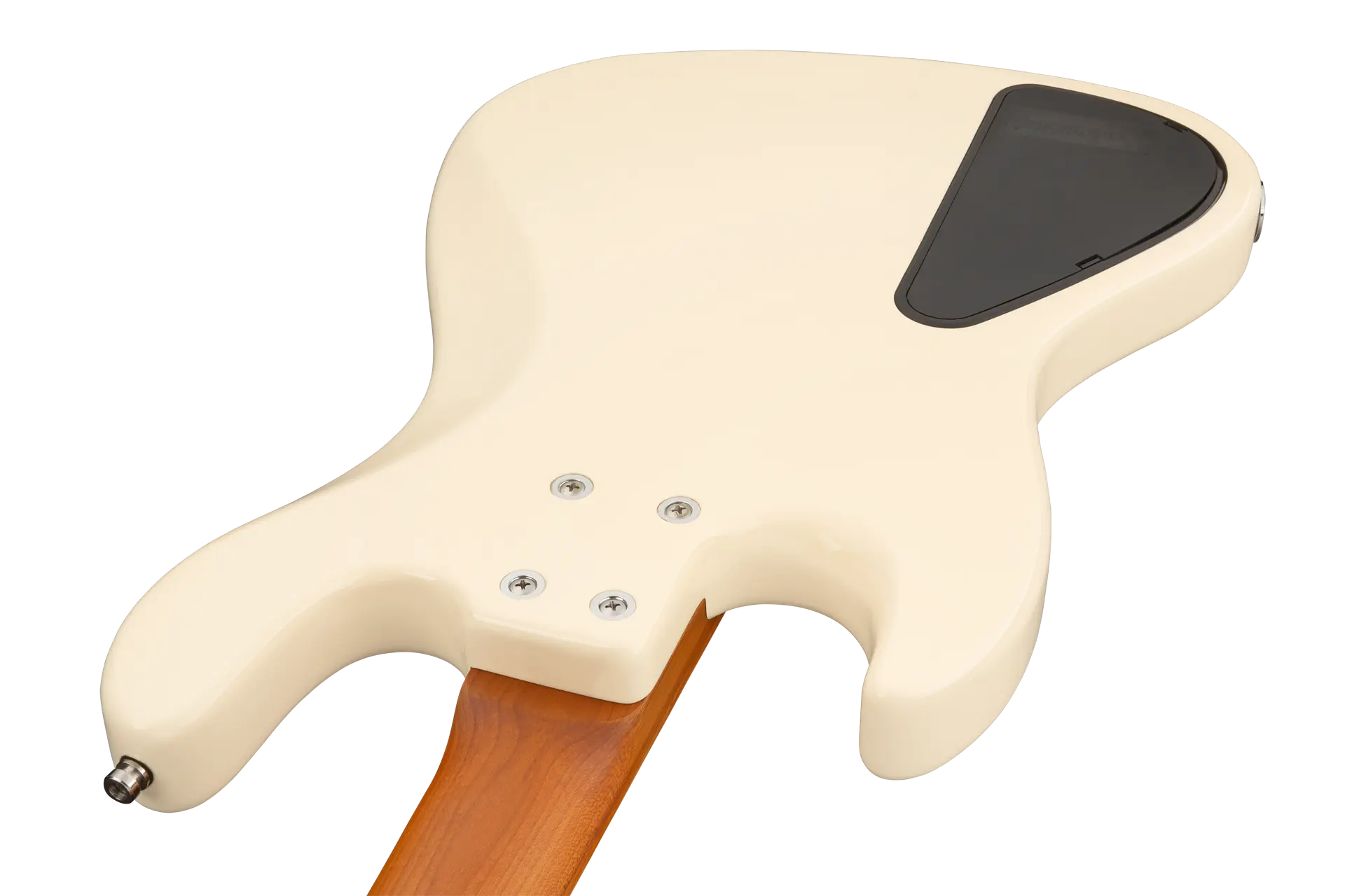 Roger Sadowskys Ziel war es schon immer, das Bassdesign zu verbessern, indem er einige sehr einzigartige und wichtige Verbesserungen vornahm. Durch die Verwendung seiner proprietären Spezialelektronik, leichter Mechaniken und ausgewählter Tonhölzer hat Roger diesen MetroExpress 21-Fret Vintage M Bass 4-String Bass auf ein ganz anderes Niveau gehoben! Zu den Merkmalen gehören ein leichter, massiver Okoume-Korpus, der in Solid Olympic White High Polish lackiert ist, ein Transparent Schlagbrett, ein Hals aus geröstetem Ahorn und ein Griffbrett aus geröstetem Ahorn. Dies ist ein fantastisch aussehender und spielender Bass, und wir sind sicher, dass Sie ihn gerne spielen werden! Unsere MetroExpress-Bässe sind der einfachste Weg, um den berühmten Sadowsky-Ton zu erreichen: Niemals harsch oder schrill klingend, mit starken, kraftvollen, aber niemals matschigen Bässen, mit präsenten, aber nicht zu aggressiven Mitten und einem süßen, luftigen Diskant.