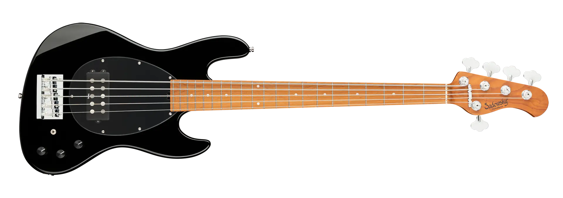 Roger Sadowskys Ziel war es schon immer, das Bassdesign zu verbessern, indem er einige sehr einzigartige und wichtige Verbesserungen vornahm. Durch die Verwendung seiner proprietären Spezialelektronik, leichter Mechaniken und ausgewählter Tonhölzer hat Roger diesen MetroExpress 21-Fret Vintage M Bass 5-String Bass auf ein ganz anderes Niveau gehoben! Zu den Merkmalen gehören ein leichter, massiver Okoume-Korpus, der in Solid Black High Polish lackiert ist, ein Transparent Schlagbrett, ein Hals aus geröstetem Ahorn und ein Griffbrett aus geröstetem Ahorn. Es ist ein fantastisch aussehender und spielbarer Bass, und wir sind sicher, dass Sie ihn gerne spielen werden! Unsere MetroExpress-Bässe sind der einfachste Weg, um den berühmten Sadowsky-Ton zu erreichen: Niemals harsch oder schrill klingend, mit starken, kraftvollen, aber niemals matschigen Bässen, mit präsenten, aber nicht zu aggressiven Mitten und einem süßen, luftigen Diskant.