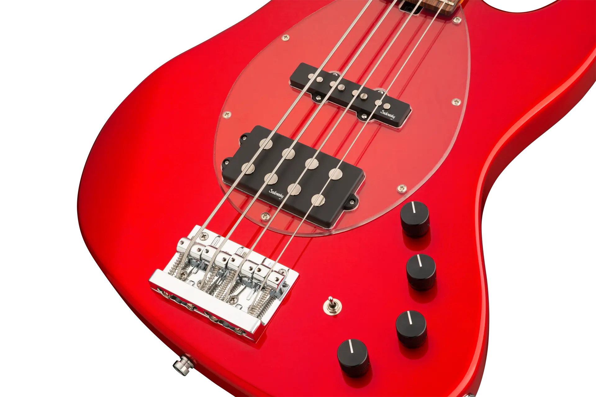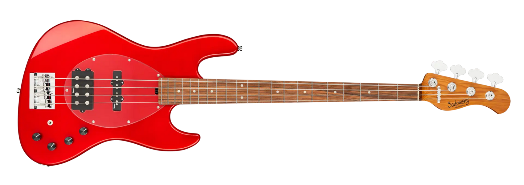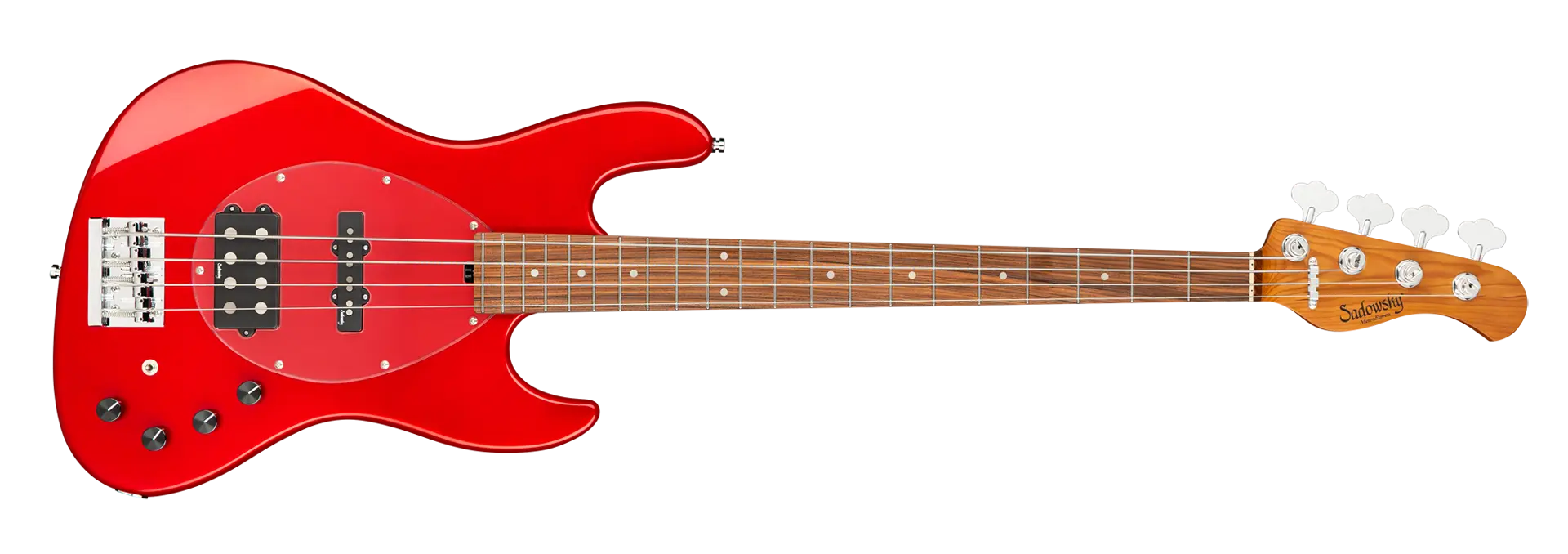 Roger Sadowskys Ziel war es schon immer, das Bassdesign zu verbessern, indem er einige sehr einzigartige und wichtige Verbesserungen vornahm. Durch die Verwendung seiner proprietären Spezialelektronik, leichter Mechaniken und ausgewählter Tonhölzer hat Roger diesen MetroExpress 21-Fret Vintage M/J 4-String Bass auf ein ganz anderes Niveau gehoben! Zu den Merkmalen gehören ein leichter, massiver Okoume-Korpus, der in Solid Candy Apple Red Metallic High Polish lackiert ist, ein Transparent Schlagbrett, ein Hals aus geröstetem Ahorn und ein Griffbrett aus Morado. Dies ist ein fantastisch aussehender und spielender Bass, und wir sind sicher, dass Sie ihn gerne spielen werden! Unsere MetroExpress-Bässe sind der einfachste Weg, um den berühmten Sadowsky-Ton zu erreichen: Niemals harsch oder schrill klingend, mit starken, kraftvollen, aber niemals matschigen Bässen, mit präsenten, aber nicht zu aggressiven Mitten und einem süßen, luftigen Diskant.