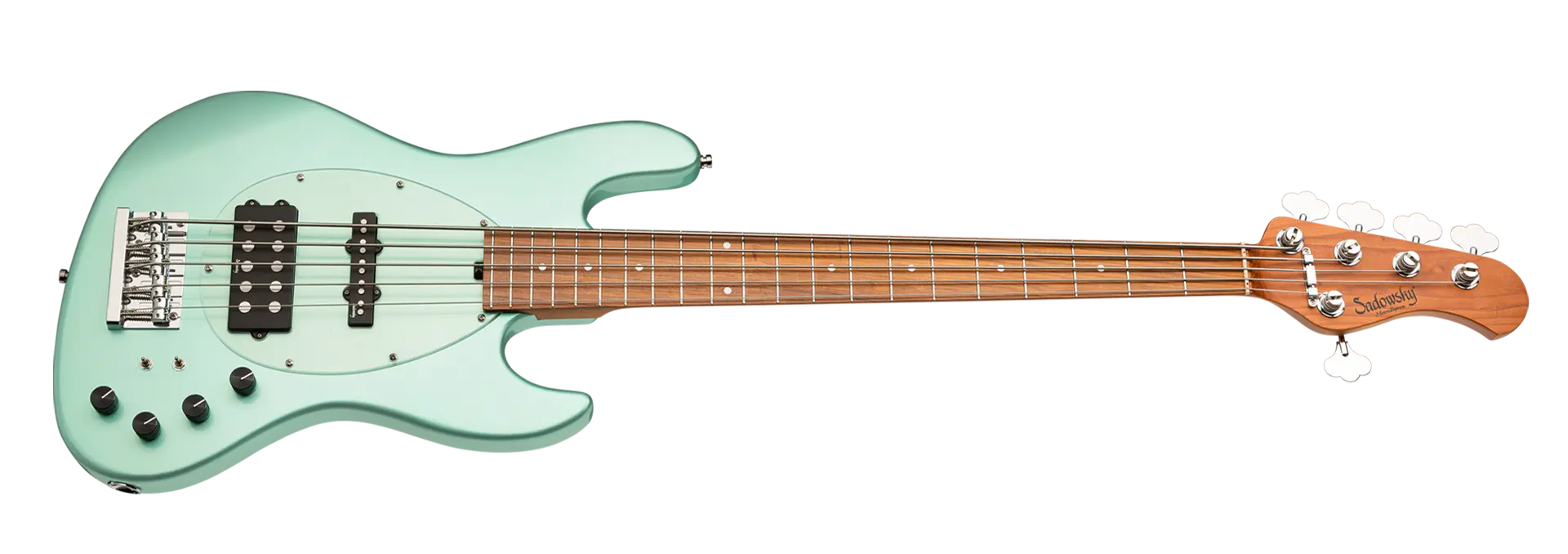 Roger Sadowskys Ziel war es schon immer, das Bassdesign zu verbessern, indem er einige sehr einzigartige und wichtige Verbesserungen vornahm. Durch die Verwendung seiner proprietären Spezialelektronik, leichter Mechaniken und ausgewählter Tonhölzer hat Roger diesen MetroExpress 21-Fret Vintage M/J 5-String Bass auf ein ganz anderes Niveau gehoben! Zu den Merkmalen gehören ein leichter, massiver Okoume-Korpus, der in Solid Sage Green Metallic High Polish lackiert ist, ein Transparent Schlagbrett, ein Hals aus geröstetem Ahorn und ein Griffbrett aus Morado. Dies ist ein fantastisch aussehender und spielender Bass, und wir sind sicher, dass Sie ihn gerne spielen werden! Unsere MetroExpress-Bässe sind der einfachste Weg, um den berühmten Sadowsky-Ton zu erreichen: Niemals harsch oder schrill klingend, mit starken, kraftvollen, aber niemals matschigen Bässen, mit präsenten, aber nicht zu aggressiven Mitten und einem süßen, luftigen Diskant.
