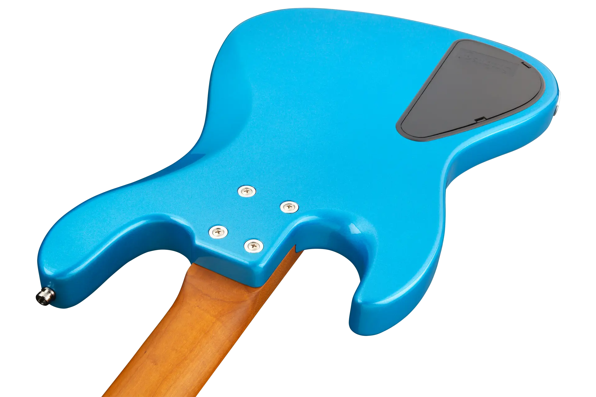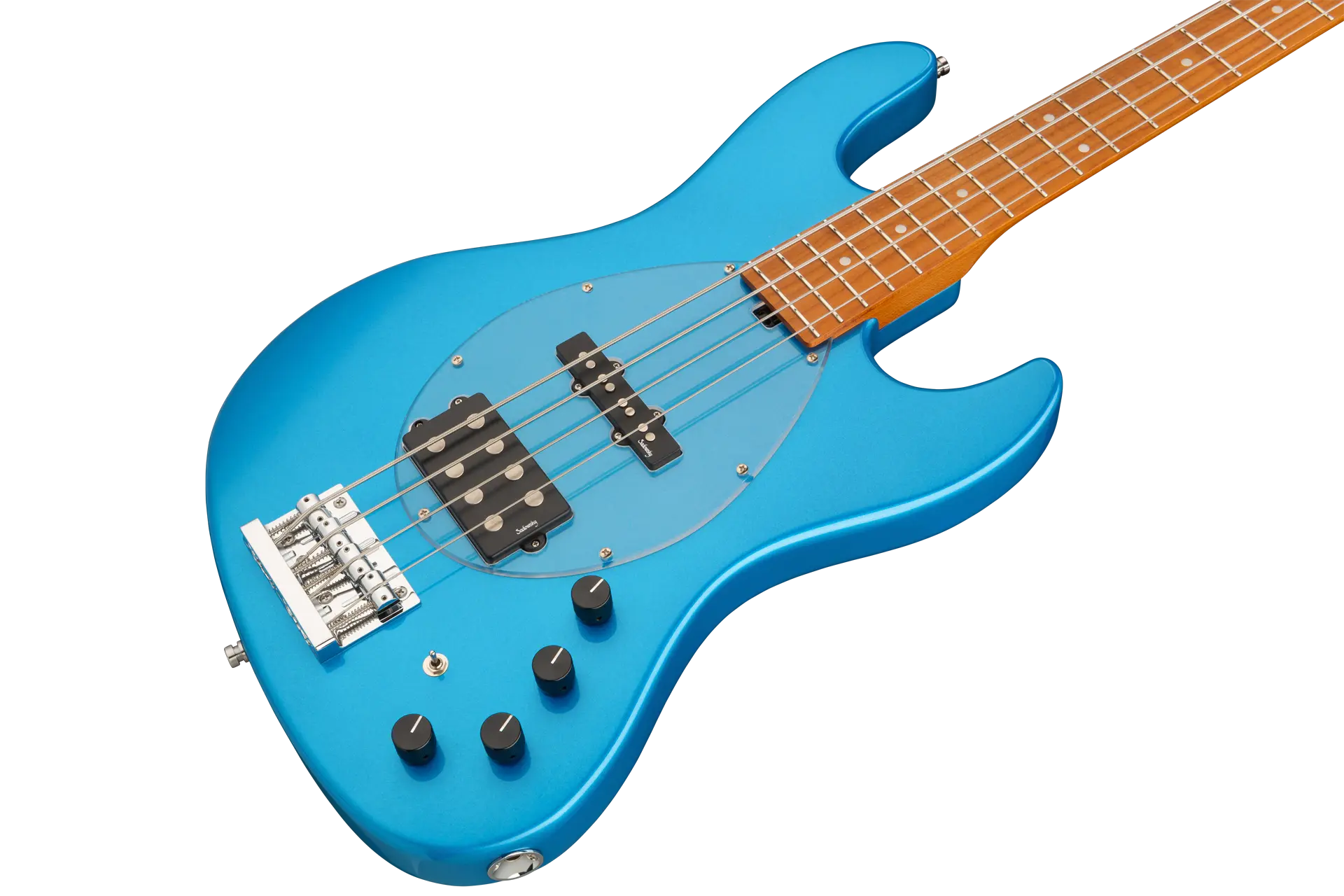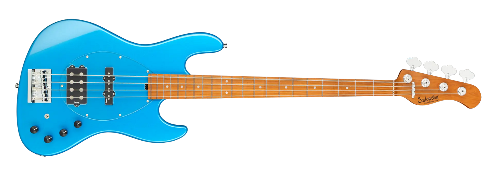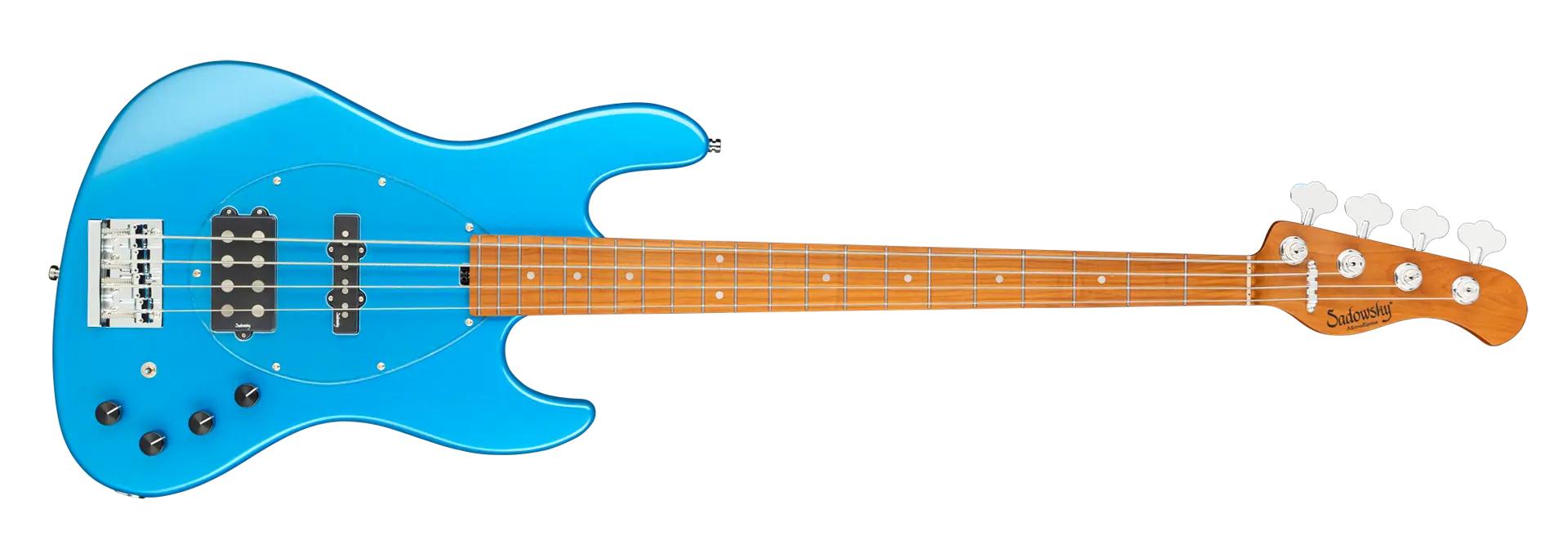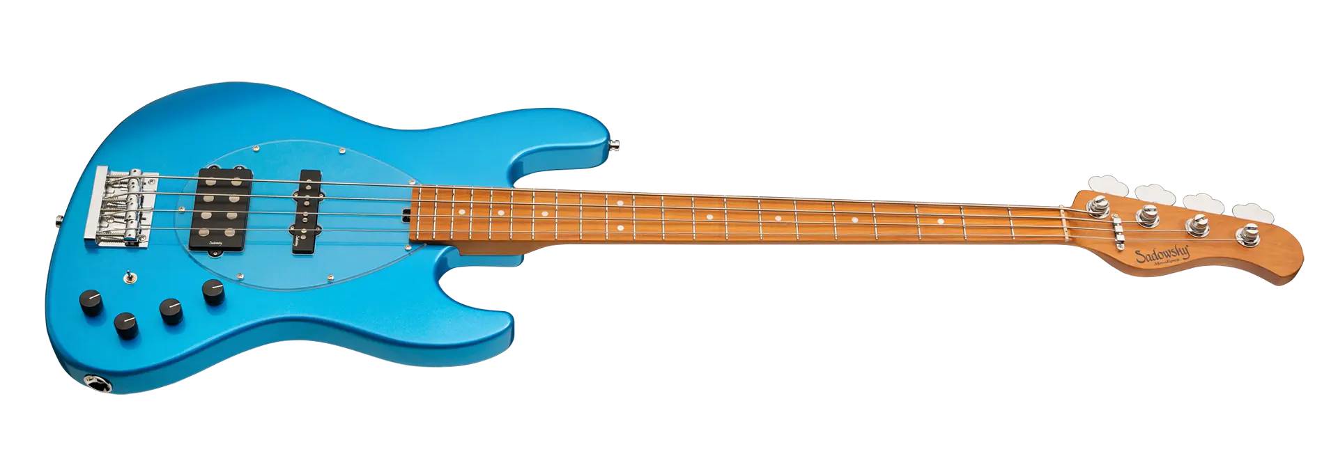 Roger Sadowskys Ziel war es schon immer, das Bassdesign zu verbessern, indem er einige sehr einzigartige und wichtige Verbesserungen vornahm. Durch die Verwendung seiner proprietären Spezialelektronik, leichter Mechaniken und ausgewählter Tonhölzer hat Roger diesen MetroExpress 21-Fret Vintage M/J 4-String Bass auf ein ganz anderes Niveau gehoben! Zu den Merkmalen gehören ein leichter, massiver Okoume-Korpus, der in Solid Ocean Blue Metallic High Polish lackiert ist, ein Transparent Schlagbrett, ein Hals aus geröstetem Ahorn und ein Griffbrett aus geröstetem Ahorn. Dies ist ein fantastisch aussehender und spielender Bass, und wir sind sicher, dass Sie ihn gerne spielen werden! Unsere MetroExpress-Bässe sind der einfachste Weg, um den berühmten Sadowsky-Ton zu erreichen: Niemals harsch oder schrill klingend, mit starken, kraftvollen, aber niemals matschigen Bässen, mit präsenten, aber nicht zu aggressiven Mitten und einem süßen, luftigen Diskant.