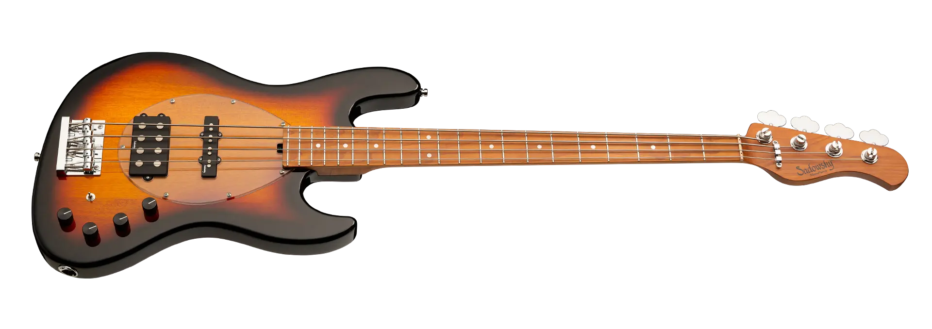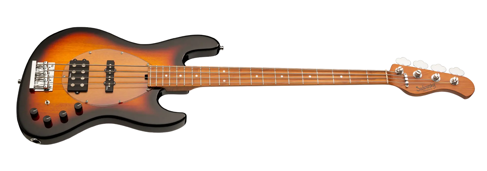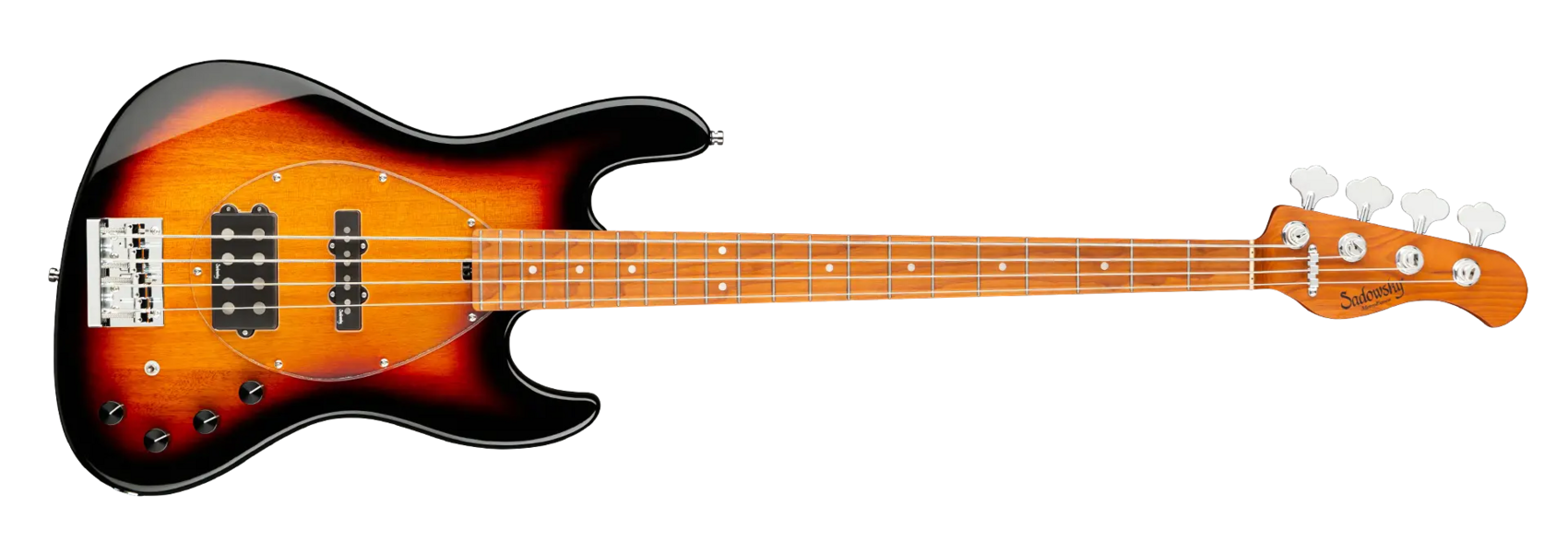 Roger Sadowskys Ziel war es schon immer, das Bassdesign zu verbessern, indem er einige sehr einzigartige und wichtige Verbesserungen vornahm. Durch die Verwendung seiner proprietären Spezialelektronik, leichter Mechaniken und ausgewählter Tonhölzer hat Roger diesen MetroExpress 21-Fret Vintage M/J 4-String Bass auf ein ganz anderes Niveau gehoben! Zu den Merkmalen gehören ein leichter, massiver Okoume-Korpus, der in Tobacco Sunburst Transparent High Polish lackiert ist, ein Transparent Schlagbrett, ein Hals aus geröstetem Ahorn und ein Griffbrett aus geröstetem Ahorn. Dies ist ein fantastisch aussehender und spielender Bass, und wir sind sicher, dass Sie ihn gerne spielen werden! Unsere MetroExpress-Bässe sind der einfachste Weg, um den berühmten Sadowsky-Ton zu erreichen: Niemals harsch oder schrill klingend, mit starken, kraftvollen, aber niemals matschigen Bässen, mit präsenten, aber nicht zu aggressiven Mitten und einem süßen, luftigen Diskant.