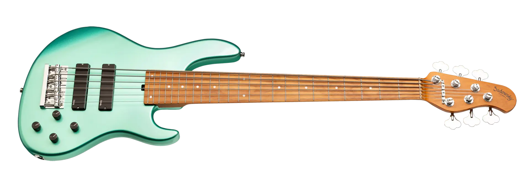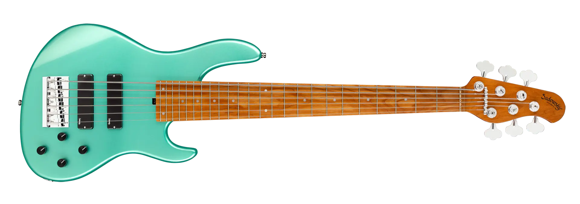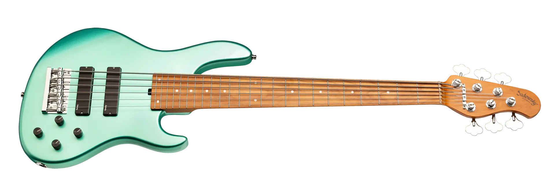 Roger Sadowskys Ziel war es schon immer, das Bassdesign zu verbessern, indem er einige sehr einzigartige und wichtige Verbesserungen vornahm. Durch die Verwendung seiner proprietären Spezialelektronik, leichter Mechaniken und ausgewählter Tonhölzer hat Roger diesen Sadowsky MetroExpress 24-Fret Modern 6-String Bass auf ein ganz anderes Niveau gehoben! Zu den Merkmalen gehören ein leichter, massiver Okoume-Korpus, der in Solid Sage Green Metallic High Polish lackiert ist, ein Hals aus geröstetem Ahorn und ein Griffbrett aus geröstetem Ahorn. Es ist ein fantastisch aussehender und spielbarer Bass, und wir sind sicher, dass Sie ihn gerne spielen werden! Unsere MetroExpress-Bässe sind der einfachste Weg, um den berühmten Sadowsky-Ton zu erreichen: Niemals harsch oder schrill klingend, mit starken, kraftvollen, aber niemals matschigen Bässen, mit präsenten, aber nicht zu aggressiven Mitten und einem süßen, luftigen Diskant.