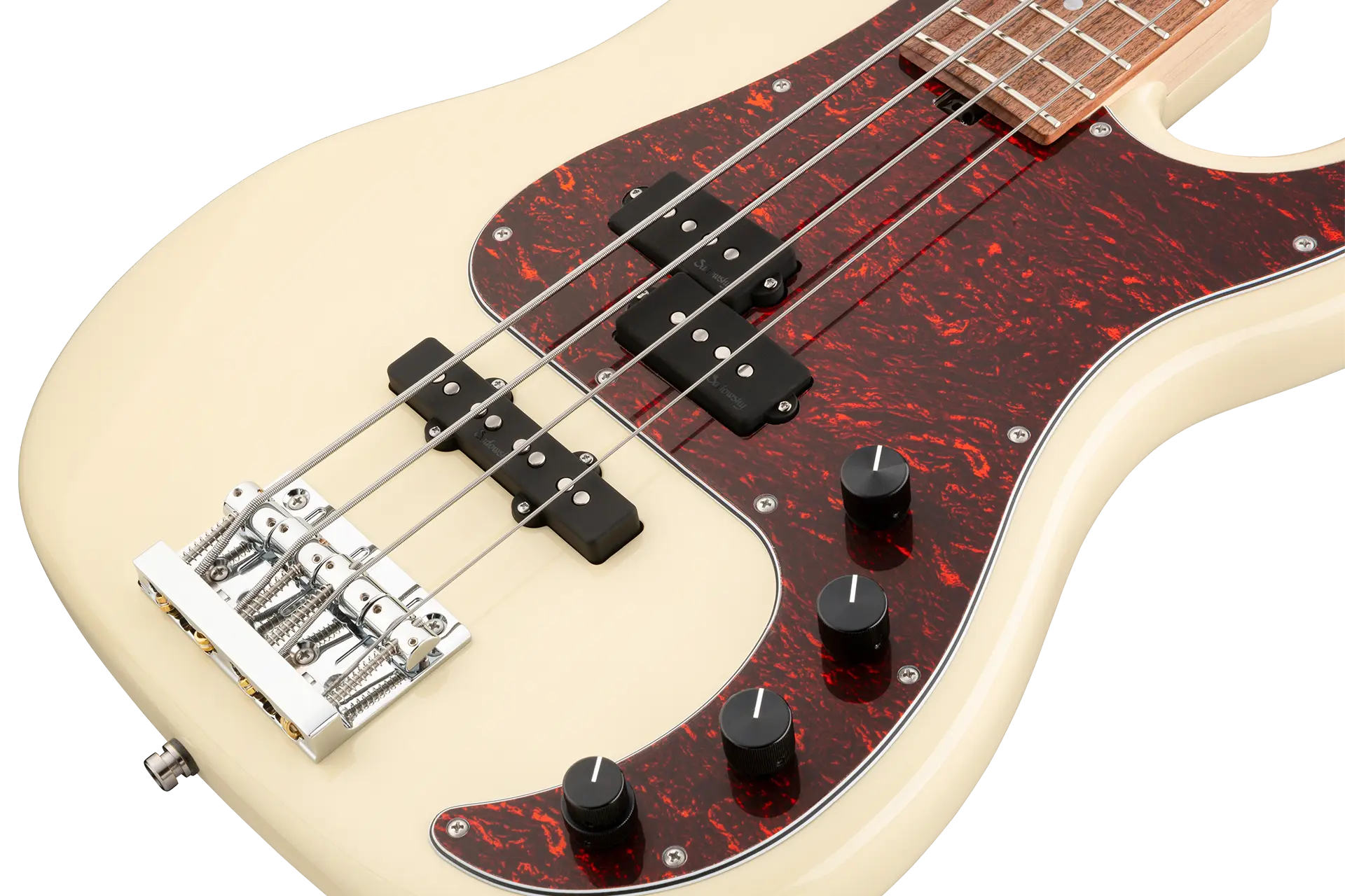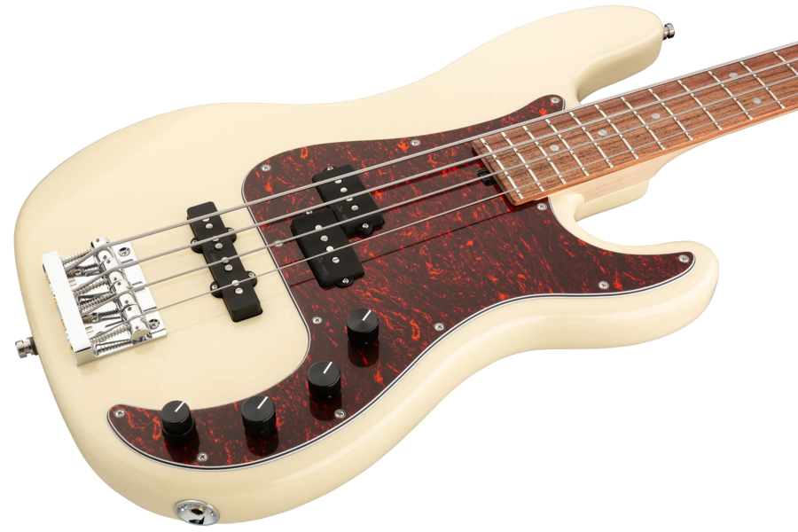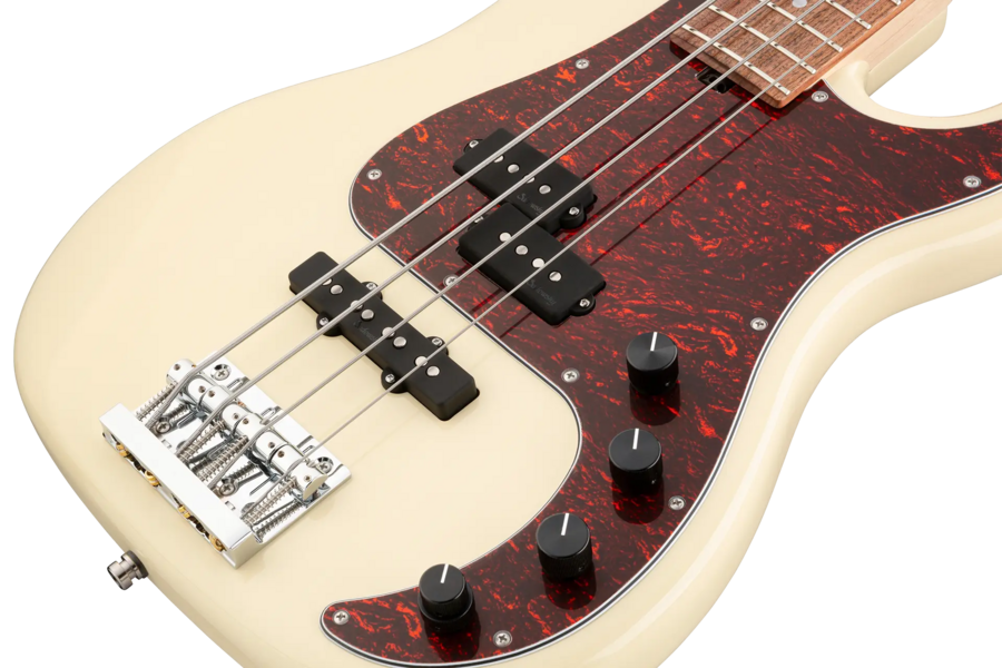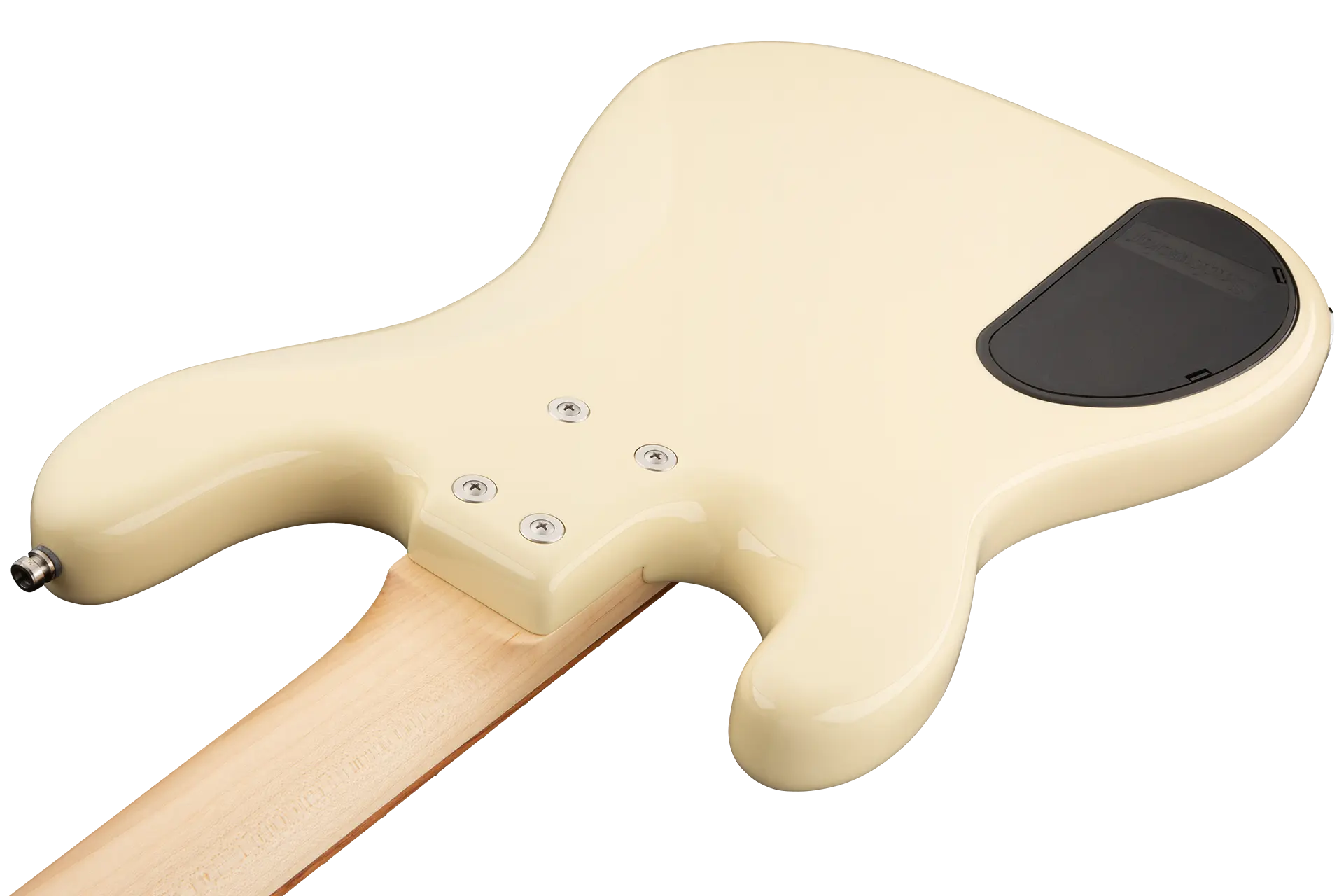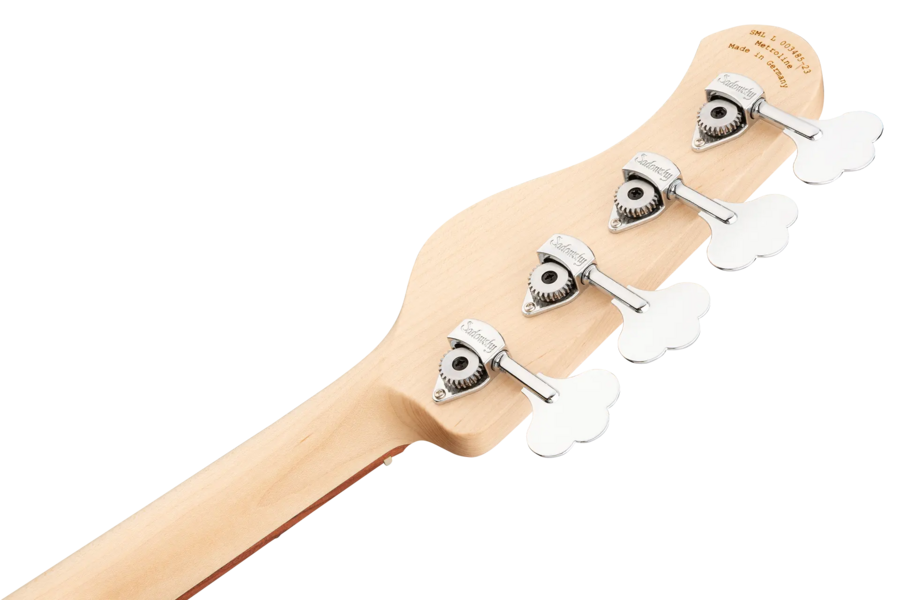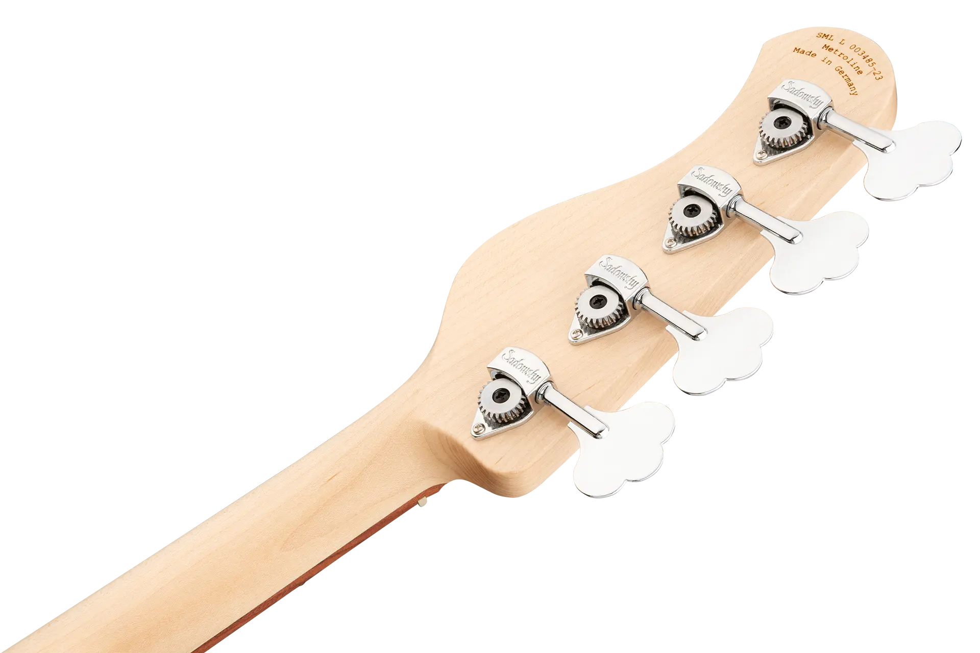 Roger Sadowsky hat es sich zur Aufgabe gemacht ein bereits sehr erfolgreiches Bass-Design noch weiter zu verbessern, indem er eine Reihe von Detailverbesserungen vornahm. Zusammen mit der von ihm entwickelten Elektronik hat er es geschafft, den bekannten P/J-Bass-Sound auf ein neues Level zu heben, so dass man heute von einem typischen Sadowsky Tone sprechen kann: Niemals harsch klingend, mit tiefen, definierten, keinesfalls dumpfen Bässen, präsenten, jedoch nicht aufdringlichen Mitten sowie süßen und luftigen Höhen. Dieser 4-saitige Bass, hier in einer Solid Olympic White High Polish Finish, hat einen P-Style Korpus (chambered) aus Roterle. Der Hals ist aus Ahorn gefertigt und verfügt über ein Morado (Pau Ferro) Griffbrett. Besondere Merkmale dieses Basses sind Sadowsky P und J Pickups, aktive Elektronik mit True Bypass, Vintage Tone Control, Treble und Bass Boost. Dieser Bass verfügt außerdem über leichte, offene Sadowsky-Mechaniken und die Sadowsky Quick String Release Bridge. Sadowsky MetroLine 21-Fret Hybrid P/J Bässe werden ausschließlich in Deutschland hergestellt. Das Gewicht dieses Basses beträgt nie mehr als 4,0 kg und sind damit auch für Bassisten interessant, die neben einem modernen Bass-Sound auch eine leichtgewichtige Lösung für die Bühne suchen.