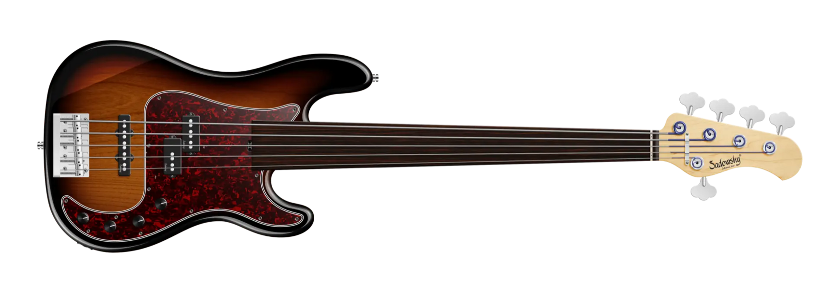 Roger Sadowsky hat es sich zur Aufgabe gemacht ein bereits sehr erfolgreiches Bass-Design noch weiter zu verbessern, indem er eine Reihe von Detailverbesserungen vornahm. Zusammen mit der von ihm entwickelten Elektronik hat er es geschafft, den bekannten P/J-Bass-Sound auf ein neues Level zu heben, so dass man heute von einem typischen Sadowsky Tone sprechen kann: Niemals harsch klingend, mit tiefen, definierten, keinesfalls dumpfen Bässen, präsenten, jedoch nicht aufdringlichen Mitten sowie süßen und luftigen Höhen. Dieser 5-saitige Bass, hier in einer '59 Burst Transparent High Polish Finish, hat einen P-Style Korpus (chambered) aus Roterle. Der Hals ist aus Ahorn gefertigt und verfügt über ein Tigerstripe Ebony Griffbrett. Besondere Merkmale dieses Basses sind Sadowsky P und J Pickups, aktive Elektronik mit True Bypass, Vintage Tone Control, Treble und Bass Boost. Dieser Bass verfügt außerdem über leichte, offene Sadowsky-Mechaniken und die Sadowsky Quick String Release Bridge. Sadowsky MetroLine 21-Fret Hybrid P/J Bässe werden ausschließlich in Deutschland hergestellt. Das Gewicht dieses Basses beträgt nie mehr als 4,0 kg und sind damit auch für Bassisten interessant, die neben einem modernen Bass-Sound auch eine leichtgewichtige Lösung für die Bühne suchen.
