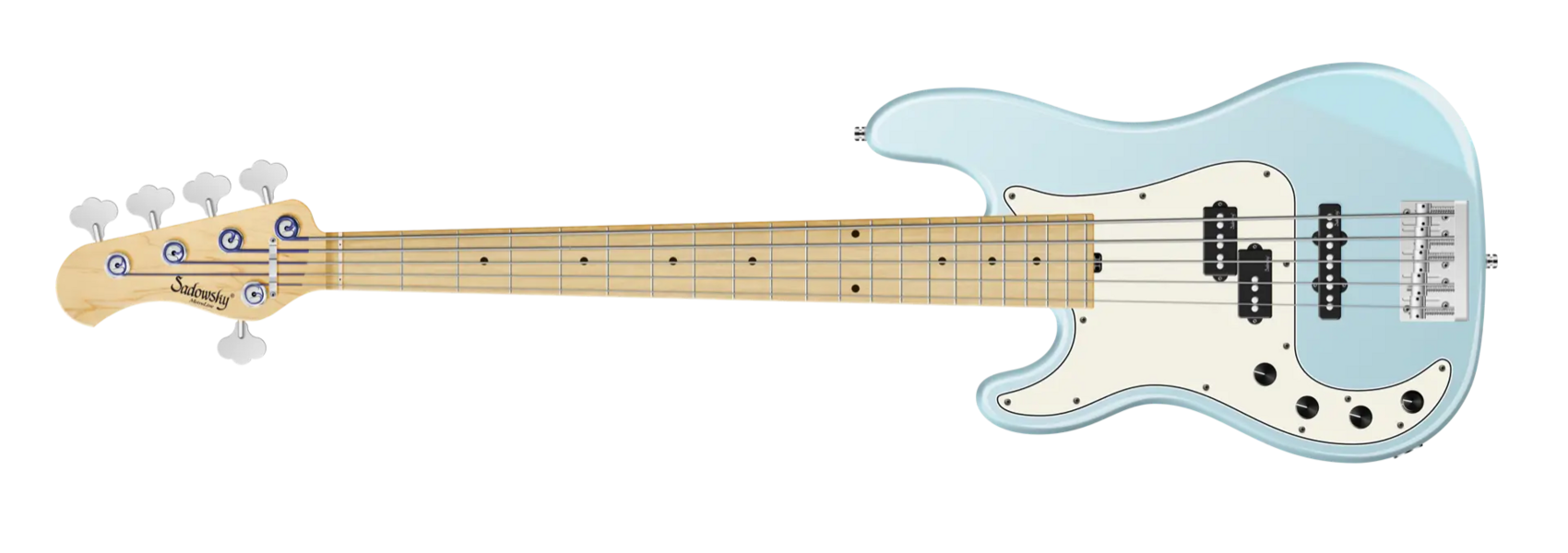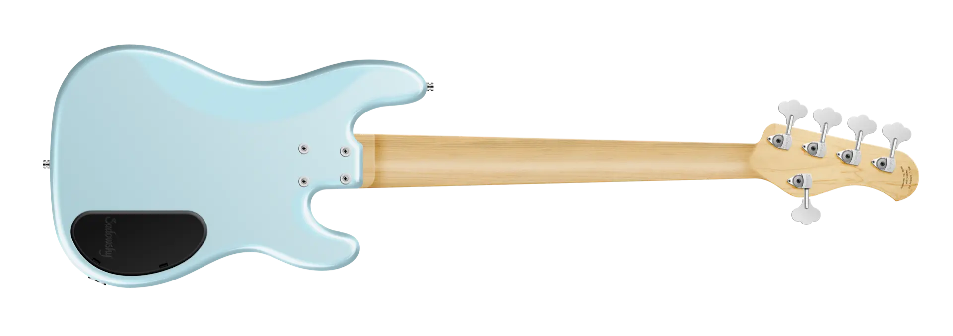 Roger Sadowsky hat es sich zur Aufgabe gemacht ein bereits sehr erfolgreiches Bass-Design noch weiter zu verbessern, indem er eine Reihe von Detailverbesserungen vornahm. Zusammen mit der von ihm entwickelten Elektronik hat er es geschafft, den bekannten P/J-Bass-Sound auf ein neues Level zu heben, so dass man heute von einem typischen Sadowsky Tone sprechen kann: Niemals harsch klingend, mit tiefen, definierten, keinesfalls dumpfen Bässen, präsenten, jedoch nicht aufdringlichen Mitten sowie süßen und luftigen Höhen. Dieser 5-saitige Solidbody Linkshänder-Bass, hier in einer Solid Ice Blue Metallic Satin Finish, hat einen P-Style Korpus aus massiver amerikanischer Sumpfesche. Der Hals ist aus Ahorn gefertigt und verfügt über ein Ahorn Griffbrett. Besondere Merkmale dieses Basses sind Sadowsky P und J Pickups, aktive Elektronik mit True Bypass, Vintage Tone Control, Treble und Bass Boost. Dieser Bass verfügt außerdem über leichte, offene Sadowsky-Mechaniken und die Sadowsky Quick String Release Bridge. Sadowsky MetroLine 21-Fret Hybrid P/J Solidbody Bässe werden ausschließlich in Deutschland hergestellt. Das Gewicht dieses Basses beträgt nie mehr als 4,0 kg und sind damit auch für Bassisten interessant, die neben einem modernen Bass-Sound auch eine leichtgewichtige Lösung für die Bühne suchen.