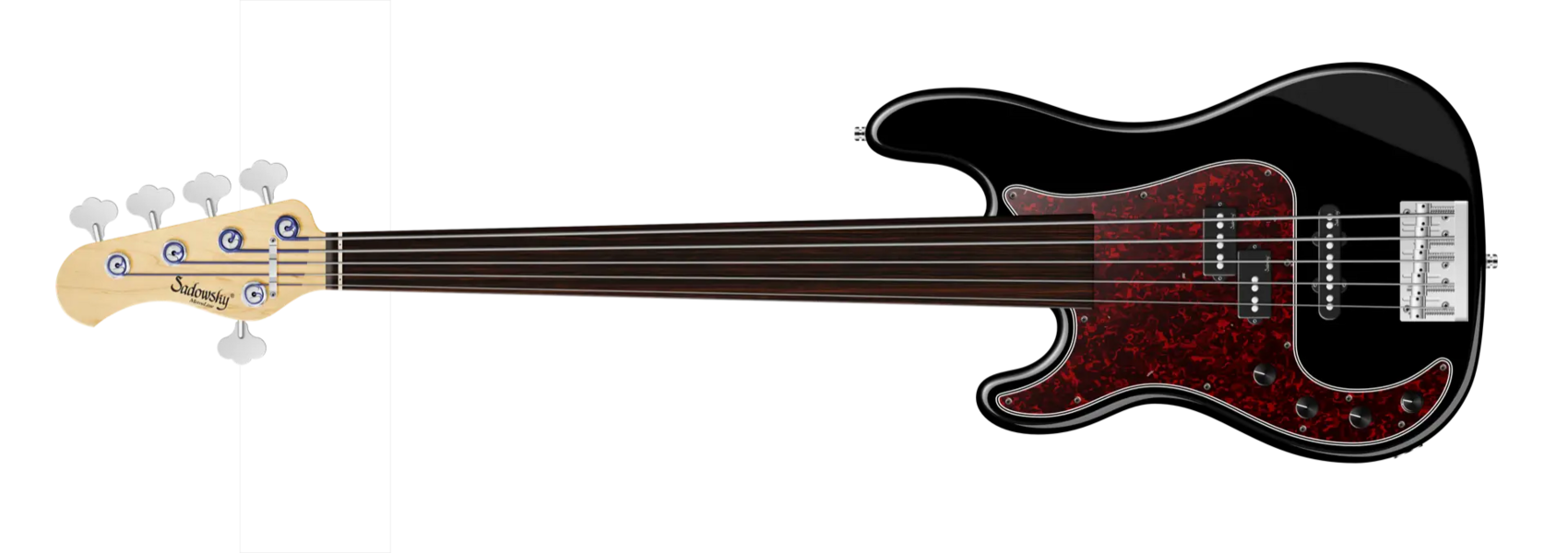 Roger Sadowsky hat es sich zur Aufgabe gemacht ein bereits sehr erfolgreiches Bass-Design noch weiter zu verbessern, indem er eine Reihe von Detailverbesserungen vornahm. Zusammen mit der von ihm entwickelten Elektronik hat er es geschafft, den bekannten P/J-Bass-Sound auf ein neues Level zu heben, so dass man heute von einem typischen Sadowsky Tone sprechen kann: Niemals harsch klingend, mit tiefen, definierten, keinesfalls dumpfen Bässen, präsenten, jedoch nicht aufdringlichen Mitten sowie süßen und luftigen Höhen. Dieser 5-saitige Solidbody Linkshänder Fretless-Bass, hier in einer Solid Black High Polish Finish, hat einen P-Style Korpus aus massiver amerikanischer Sumpfesche. Der Hals ist aus Ahorn gefertigt und verfügt über ein Tigerstripe Ebony Griffbrett. Besondere Merkmale dieses Basses sind Sadowsky P und J Pickups, aktive Elektronik mit True Bypass, Vintage Tone Control, Treble und Bass Boost. Dieser Bass verfügt außerdem über leichte, offene Sadowsky-Mechaniken und die Sadowsky Quick String Release Bridge. Sadowsky MetroLine 21-Fret Hybrid P/J Solidbody Bässe werden ausschließlich in Deutschland hergestellt. Das Gewicht dieses Basses beträgt nie mehr als 4,0 kg und sind damit auch für Bassisten interessant, die neben einem modernen Bass-Sound auch eine leichtgewichtige Lösung für die Bühne suchen.