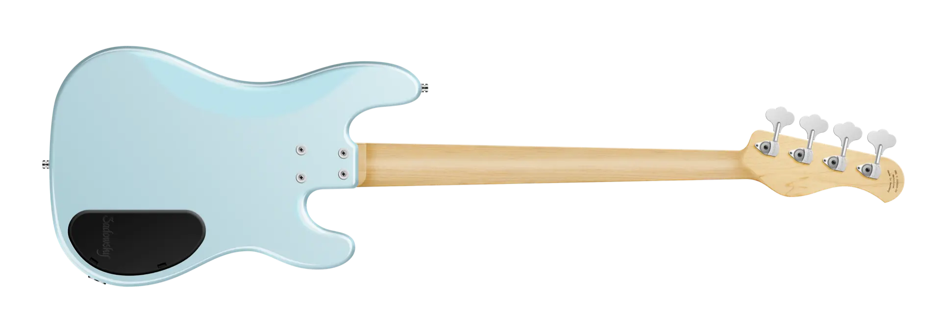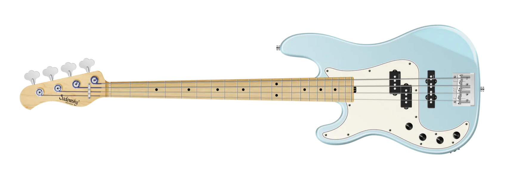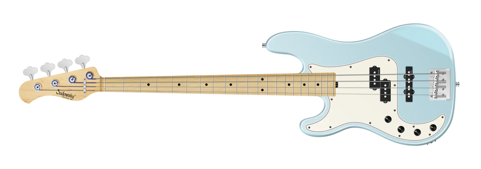 Roger Sadowsky hat es sich zur Aufgabe gemacht ein bereits sehr erfolgreiches Bass-Design noch weiter zu verbessern, indem er eine Reihe von Detailverbesserungen vornahm. Zusammen mit der von ihm entwickelten Elektronik hat er es geschafft, den bekannten P/J-Bass-Sound auf ein neues Level zu heben, so dass man heute von einem typischen Sadowsky Tone sprechen kann: Niemals harsch klingend, mit tiefen, definierten, keinesfalls dumpfen Bässen, präsenten, jedoch nicht aufdringlichen Mitten sowie süßen und luftigen Höhen. Dieser 4-saitige Linkshänder-Bass, hier in einer Solid Ice Blue Metallic Satin Finish, hat einen P-Style Korpus (chambered) aus amerikanischer Sumpfesche. Der Hals ist aus Ahorn gefertigt und verfügt über ein Ahorn Griffbrett. Besondere Merkmale dieses Basses sind Sadowsky P und J Pickups, aktive Elektronik mit True Bypass, Vintage Tone Control, Treble und Bass Boost. Dieser Bass verfügt außerdem über leichte, offene Sadowsky-Mechaniken und die Sadowsky Quick String Release Bridge. Sadowsky MetroLine 21-Fret Hybrid P/J Bässe werden ausschließlich in Deutschland hergestellt. Das Gewicht dieses Basses beträgt nie mehr als 4,0 kg und sind damit auch für Bassisten interessant, die neben einem modernen Bass-Sound auch eine leichtgewichtige Lösung für die Bühne suchen.