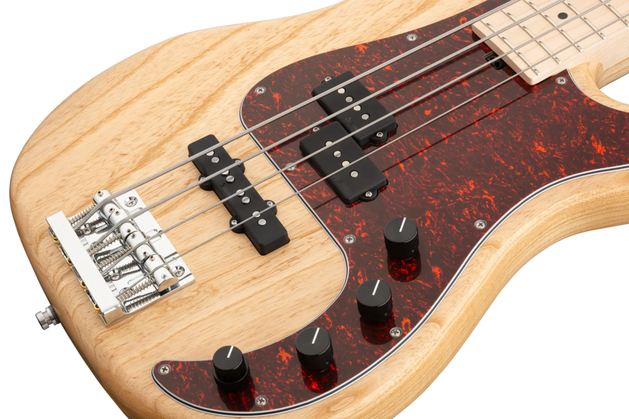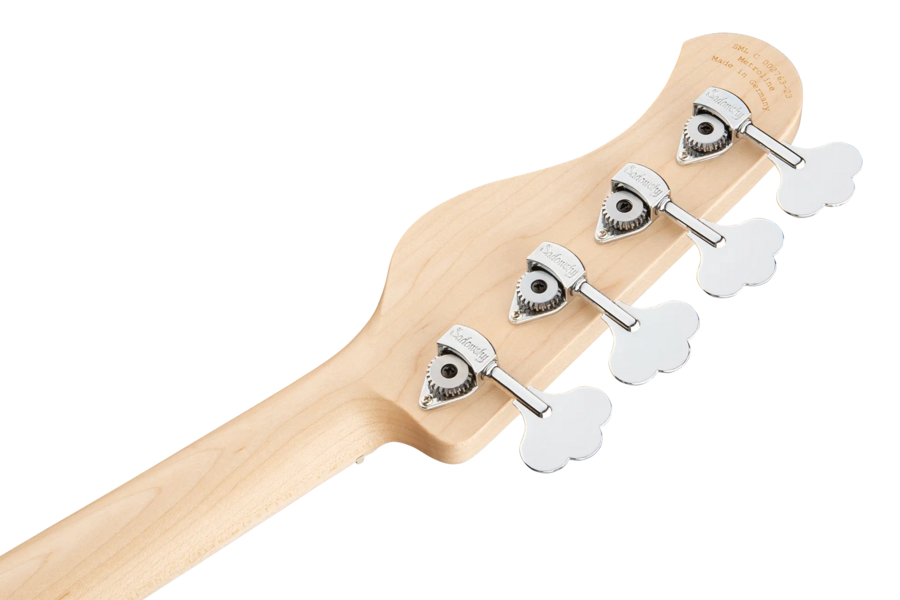 Roger Sadowsky hat es sich zur Aufgabe gemacht ein bereits sehr erfolgreiches Bass-Design noch weiter zu verbessern, indem er eine Reihe von Detailverbesserungen vornahm. Zusammen mit der von ihm entwickelten Elektronik hat er es geschafft, den bekannten P/J-Bass-Sound auf ein neues Level zu heben, so dass man heute von einem typischen Sadowsky Tone sprechen kann: Niemals harsch klingend, mit tiefen, definierten, keinesfalls dumpfen Bässen, präsenten, jedoch nicht aufdringlichen Mitten sowie süßen und luftigen Höhen. Dieser 4-saitige Bass, hier in einer Natural Transparent Satin Finish, hat einen P-Style Korpus (chambered) aus amerikanischer Sumpfesche. Der Hals ist aus Ahorn gefertigt und verfügt über ein Ahorn Griffbrett. Besondere Merkmale dieses Basses sind Sadowsky P und J Pickups, aktive Elektronik mit True Bypass, Vintage Tone Control, Treble und Bass Boost. Dieser Bass verfügt außerdem über leichte, offene Sadowsky-Mechaniken und die Sadowsky Quick String Release Bridge. Sadowsky MetroLine 21-Fret Hybrid P/J Bässe werden ausschließlich in Deutschland hergestellt. Das Gewicht dieses Basses beträgt nie mehr als 4,0 kg und sind damit auch für Bassisten interessant, die neben einem modernen Bass-Sound auch eine leichtgewichtige Lösung für die Bühne suchen.