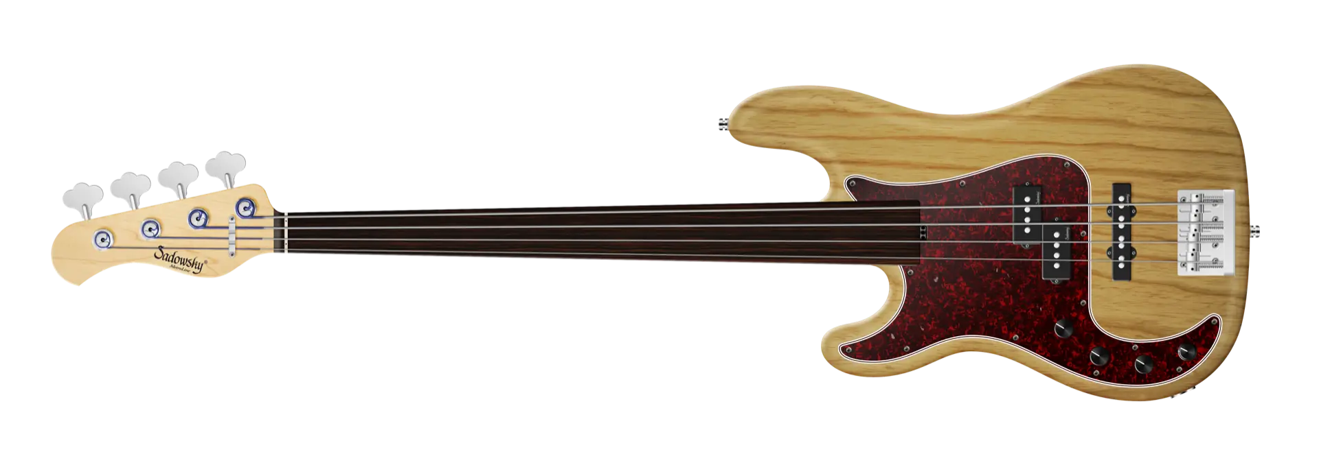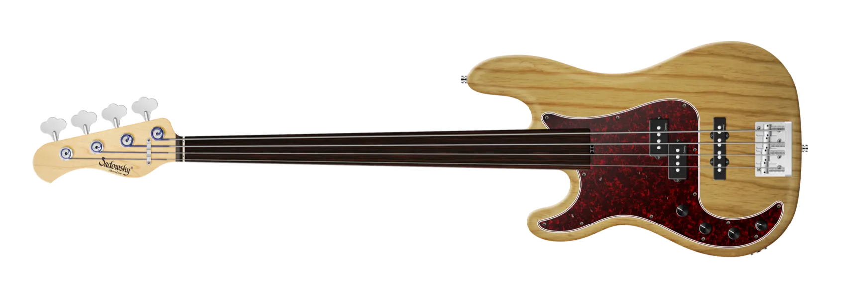 Roger Sadowsky hat es sich zur Aufgabe gemacht ein bereits sehr erfolgreiches Bass-Design noch weiter zu verbessern, indem er eine Reihe von Detailverbesserungen vornahm. Zusammen mit der von ihm entwickelten Elektronik hat er es geschafft, den bekannten P/J-Bass-Sound auf ein neues Level zu heben, so dass man heute von einem typischen Sadowsky Tone sprechen kann: Niemals harsch klingend, mit tiefen, definierten, keinesfalls dumpfen Bässen, präsenten, jedoch nicht aufdringlichen Mitten sowie süßen und luftigen Höhen. Dieser 4-saitige Linkshänder Fretless-Bass, hier in einer Natural Transparent Satin Finish, hat einen P-Style Korpus (chambered) aus amerikanischer Sumpfesche. Der Hals ist aus Ahorn gefertigt und verfügt über ein Tigerstripe Ebony Griffbrett. Besondere Merkmale dieses Basses sind Sadowsky P und J Pickups, aktive Elektronik mit True Bypass, Vintage Tone Control, Treble und Bass Boost. Dieser Bass verfügt außerdem über leichte, offene Sadowsky-Mechaniken und die Sadowsky Quick String Release Bridge. Sadowsky MetroLine 21-Fret Hybrid P/J Bässe werden ausschließlich in Deutschland hergestellt. Das Gewicht dieses Basses beträgt nie mehr als 4,0 kg und sind damit auch für Bassisten interessant, die neben einem modernen Bass-Sound auch eine leichtgewichtige Lösung für die Bühne suchen.