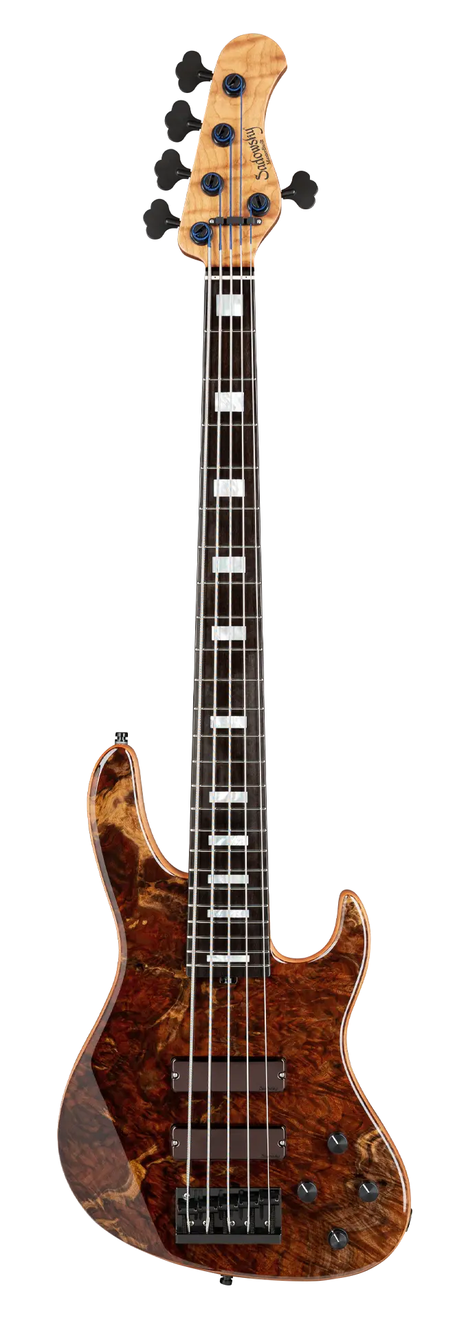 Roger Sadowsky hat es sich zur Aufgabe gemacht ein bereits sehr erfolgreiches Bass-Design noch weiter zu verbessern, indem er eine Reihe von Detailverbesserungen vornahm. Zusammen mit der von ihm entwickelten Elektronik hat er es geschafft, den bekannten P/J-Bass-Sound auf ein neues Level zu heben, so dass man heute von einem typischen Sadowsky Tone sprechen kann: Niemals harsch klingend, mit tiefen, definierten, keinesfalls dumpfen Bässen, präsenten, jedoch nicht aufdringlichen Mitten sowie süßen und luftigen Höhen. Dieser 4-saitige Fretless-Bass, hier in einer Solid Black High Polish Finish, hat einen P-Style Korpus (chambered) aus amerikanischer Sumpfesche. Der Hals ist aus Ahorn gefertigt und verfügt über ein Tigerstripe Ebony Griffbrett. Besondere Merkmale dieses Basses sind Sadowsky P und J Pickups, aktive Elektronik mit True Bypass, Vintage Tone Control, Treble und Bass Boost. Dieser Bass verfügt außerdem über leichte, offene Sadowsky-Mechaniken und die Sadowsky Quick String Release Bridge. Sadowsky MetroLine 21-Fret Hybrid P/J Bässe werden ausschließlich in Deutschland hergestellt. Das Gewicht dieses Basses beträgt nie mehr als 4,0 kg und sind damit auch für Bassisten interessant, die neben einem modernen Bass-Sound auch eine leichtgewichtige Lösung für die Bühne suchen.