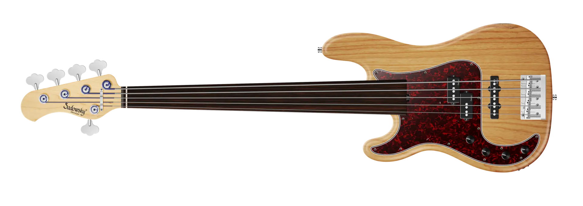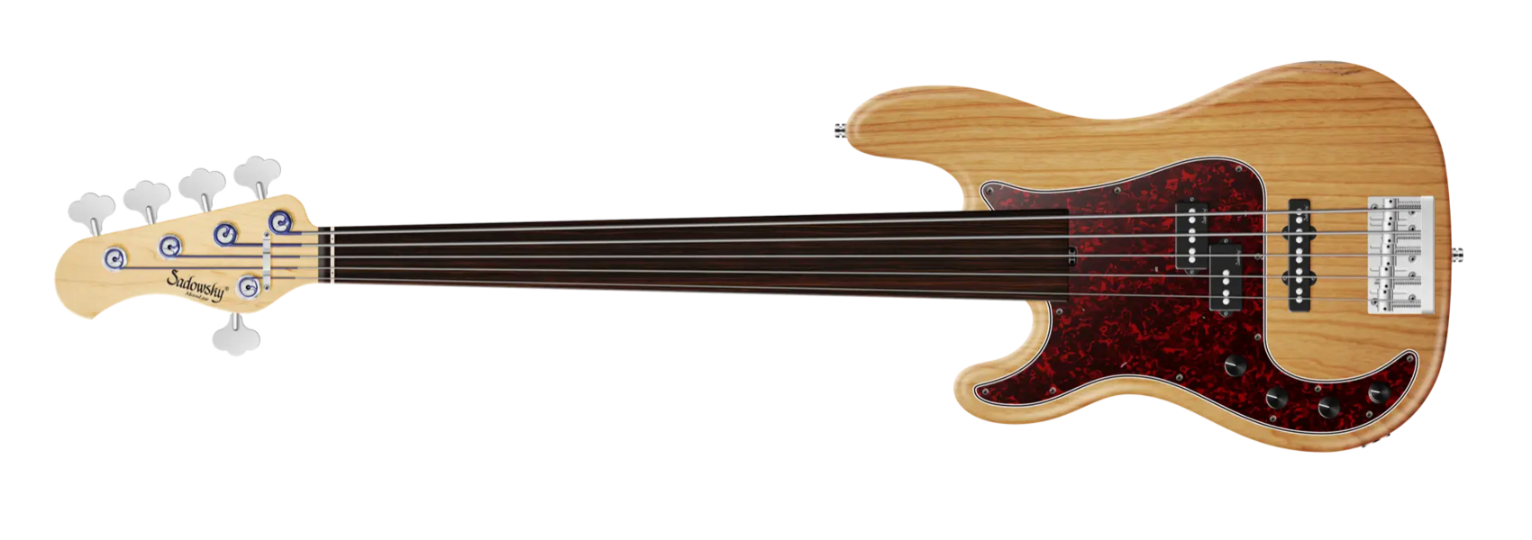Roger Sadowsky hat es sich zur Aufgabe gemacht ein bereits sehr erfolgreiches Bass-Design noch weiter zu verbessern, indem er eine Reihe von Detailverbesserungen vornahm. Zusammen mit der von ihm entwickelten Elektronik hat er es geschafft, den bekannten P/J-Bass-Sound auf ein neues Level zu heben, so dass man heute von einem typischen Sadowsky Tone sprechen kann: Niemals harsch klingend, mit tiefen, definierten, keinesfalls dumpfen Bässen, präsenten, jedoch nicht aufdringlichen Mitten sowie süßen und luftigen Höhen. Dieser 5-saitige Linkshänder Fretless-Bass, hier in einer Natural Transparent Satin Finish, hat einen P-Style Korpus (chambered) aus amerikanischer Sumpfesche. Der Hals ist aus Ahorn gefertigt und verfügt über ein Tigerstripe Ebony Griffbrett. Besondere Merkmale dieses Basses sind Sadowsky P und J Pickups, aktive Elektronik mit True Bypass, Vintage Tone Control, Treble und Bass Boost. Dieser Bass verfügt außerdem über leichte, offene Sadowsky-Mechaniken und die Sadowsky Quick String Release Bridge. Sadowsky MetroLine 21-Fret Hybrid P/J Bässe werden ausschließlich in Deutschland hergestellt. Das Gewicht dieses Basses beträgt nie mehr als 4,0 kg und sind damit auch für Bassisten interessant, die neben einem modernen Bass-Sound auch eine leichtgewichtige Lösung für die Bühne suchen.