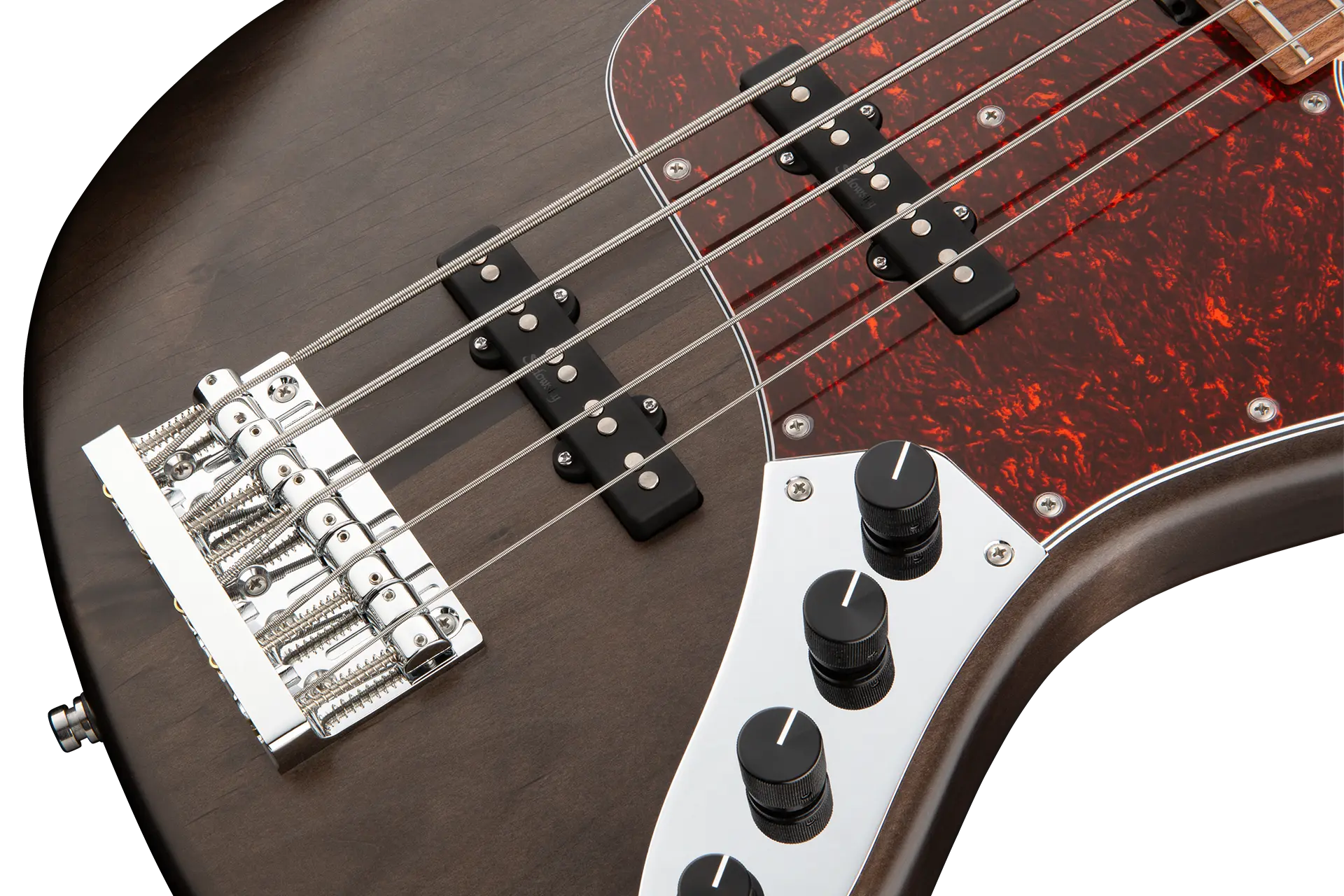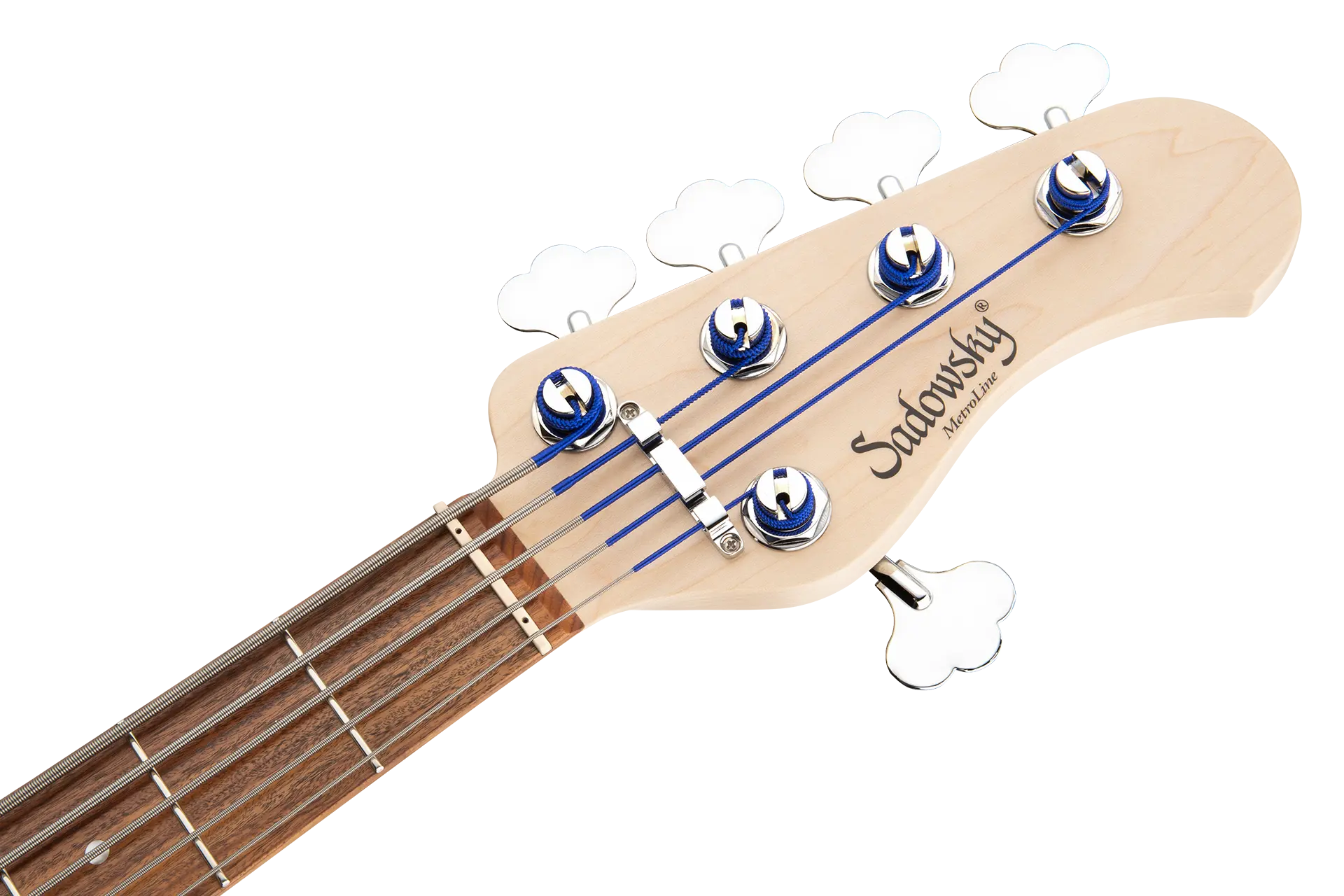 Roger Sadowsky war immer bestrebt, ein bereits erfolgreiches Bassdesign durch eine Reihe von detaillierten und wichtigen Änderungen zu verbessern. Durch die Entwicklung und Herstellung seiner eigenen Elektronik gelang es Roger, den Klang eines J/J-Basses mit dem speziellen Sadowsky-Ton zu verbessern: Niemals harsch oder schrill klingend. Bässe, die stark und kraftvoll, aber nie matschig sind. Mitten, die präsent, aber nicht zu aggressiv sind, und ein Höhenbereich, der süß und luftig ist. Dieser 5-saitige Bass hat einen schlanken, unterdimensionierten J-Style-Korpus (chambered) aus amerikanischer Roterle mit einer Nirvana Black Transparent Satin-Lackierung. Der Hals ist aus amerikanischem Ahorn gefertigt und mit einem Morado (Pau Ferro) Griffbrett ausgestattet. Zu den besonderen Merkmalen dieses Basses gehören Sadowsky J-Style Pickups, eine aktive Elektronik mit True Bypass, Vintage Tone Control, Treble und Bass Boost. Die Hardware umfasst leichte, offene Sadowsky-Mechaniken und eine Sadowsky Quick String Release Bridge. Ein Sadowsky MetroLine 21-Fret Vintage J/J Bass wird ausschließlich in Deutschland hergestellt und wiegt nie mehr als 4,0 kg. Er ist eine gute Wahl für Spieler, die einen leichten Bass mit einem modernen Bass-Sound suchen.