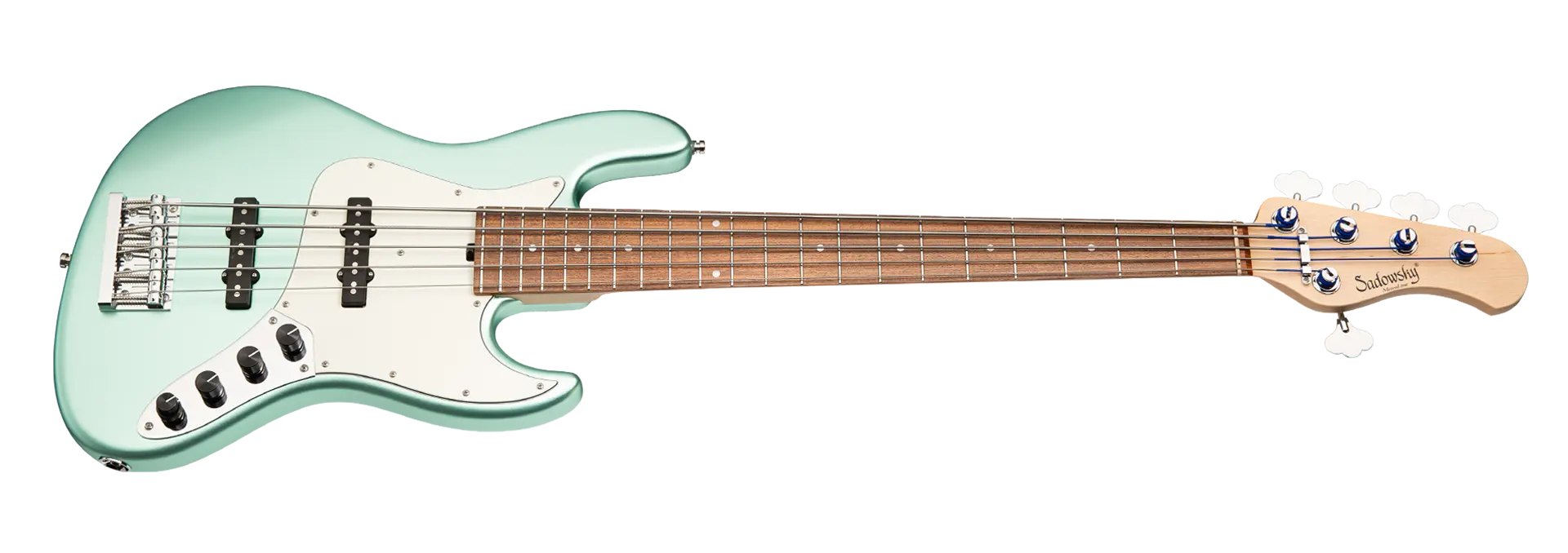 Special features of the Vintage J/J basses of this series are the active electronics with true bypass, Vintage Tone Control, treble and bass boost, ultralight Hipshot tuners and the special Sadowsky bridge for quick string release. This 5-string bass in sleek undersized J-Style shaped red alder body comes in Solid Sage Green Metallic Satin finish.
