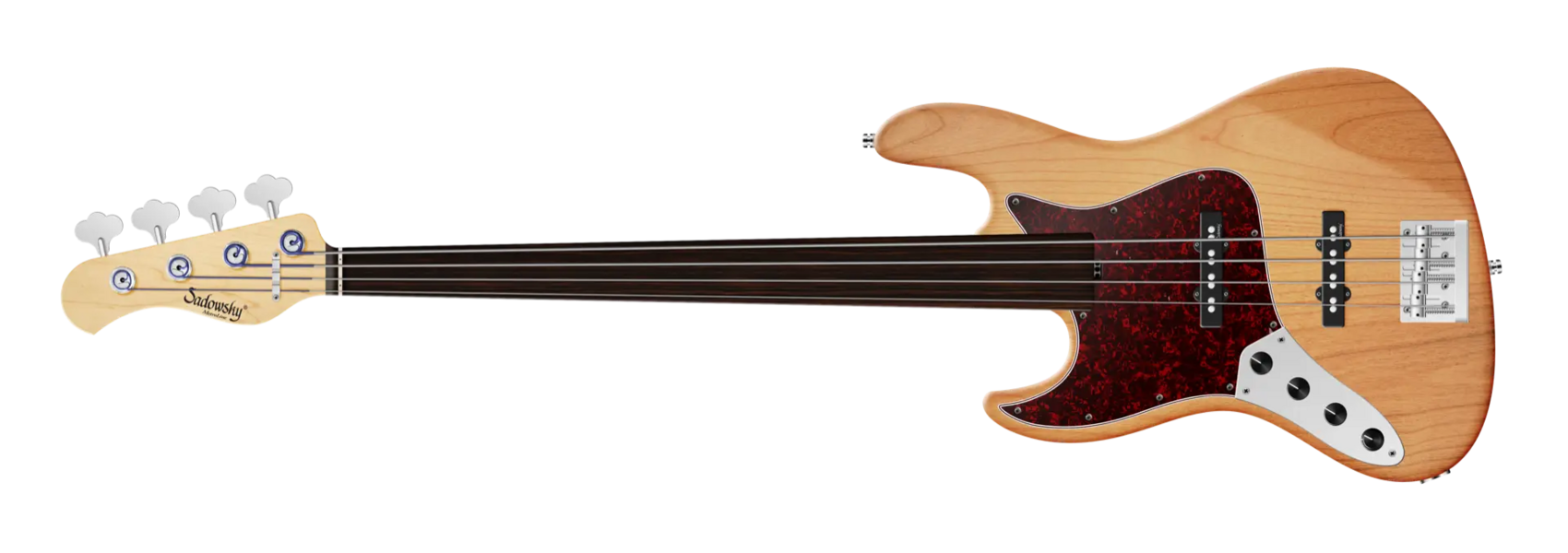 Roger Sadowsky war immer bestrebt, ein bereits erfolgreiches Bassdesign durch eine Reihe von detaillierten und wichtigen Änderungen zu verbessern. Durch die Entwicklung und Herstellung seiner eigenen Elektronik gelang es Roger, den Klang eines J/J-Basses mit dem speziellen Sadowsky-Ton zu verbessern: Niemals harsch oder schrill klingend. Bässe, die stark und kraftvoll, aber nie matschig sind. Mitten, die präsent, aber nicht zu aggressiv sind, und ein Höhenbereich, der süß und luftig ist. Dieser 4-saitige Fretless Linkshänder-Bass hat einen schlanken, unterdimensionierten J-Style-Korpus (chambered) aus amerikanischer Roterle mit einer Natural Transparent Satin-Lackierung. Der Hals ist aus amerikanischem Ahorn gefertigt und mit einem Tigerstripe Ebony Griffbrett ausgestattet. Zu den besonderen Merkmalen dieses Basses gehören Sadowsky J-Style Pickups, eine aktive Elektronik mit True Bypass, Vintage Tone Control, Treble und Bass Boost. Die Hardware umfasst leichte, offene Sadowsky-Mechaniken und eine Sadowsky Quick String Release Bridge. Ein Sadowsky MetroLine 21-Fret Vintage J/J Bass wird ausschließlich in Deutschland hergestellt und wiegt nie mehr als 4,0 kg. Er ist eine gute Wahl für Spieler, die einen leichten Bass mit einem modernen Bass-Sound suchen.