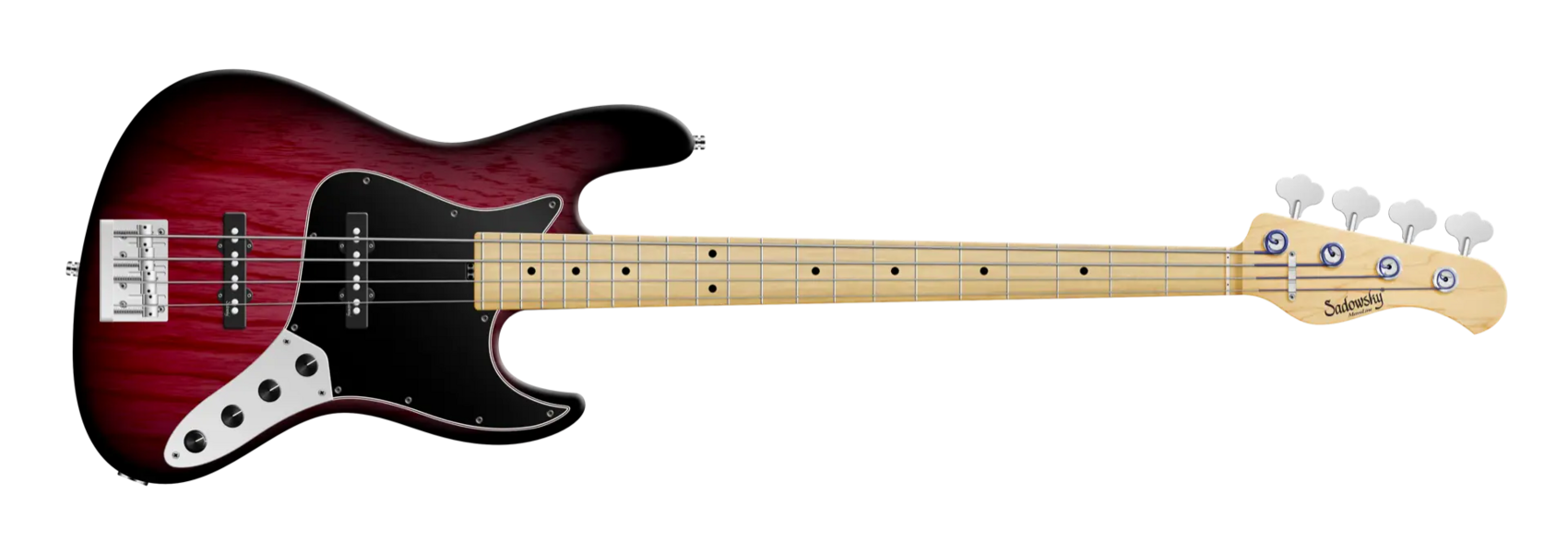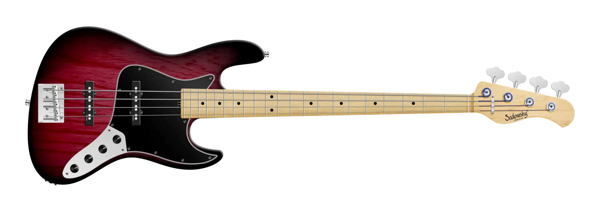 Roger Sadowsky war immer bestrebt, ein bereits erfolgreiches Bassdesign durch eine Reihe von detaillierten und wichtigen Änderungen zu verbessern. Durch die Entwicklung und Herstellung seiner eigenen Elektronik gelang es Roger, den Klang eines J/J-Basses mit dem speziellen Sadowsky-Ton zu verbessern: Niemals harsch oder schrill klingend. Bässe, die stark und kraftvoll, aber nie matschig sind. Mitten, die präsent, aber nicht zu aggressiv sind, und ein Höhenbereich, der süß und luftig ist. Dieser 4-saitige Bass hat einen schlanken, unterdimensionierten J-Style-Korpus (chambered) aus amerikanischer Sumpfesche mit einer Burgundy Blackburst Transparent Satin-Lackierung. Der Hals ist aus amerikanischem Ahorn gefertigtund hat ein Griffbrett aus amerikanischem Ahorn. Zu den besonderen Merkmalen dieses Basses gehören Sadowsky J-Style Pickups, eine aktive Elektronik mit True Bypass, Vintage Tone Control, Treble und Bass Boost. Die Hardware umfasst leichte, offene Sadowsky-Mechaniken und eine Sadowsky Quick String Release Bridge. Ein Sadowsky MetroLine 21-Fret Vintage J/J Bass wird ausschließlich in Deutschland hergestellt und wiegt nie mehr als 4,0 kg. Er ist eine gute Wahl für Spieler, die einen leichten Bass mit einem modernen Bass-Sound suchen.
