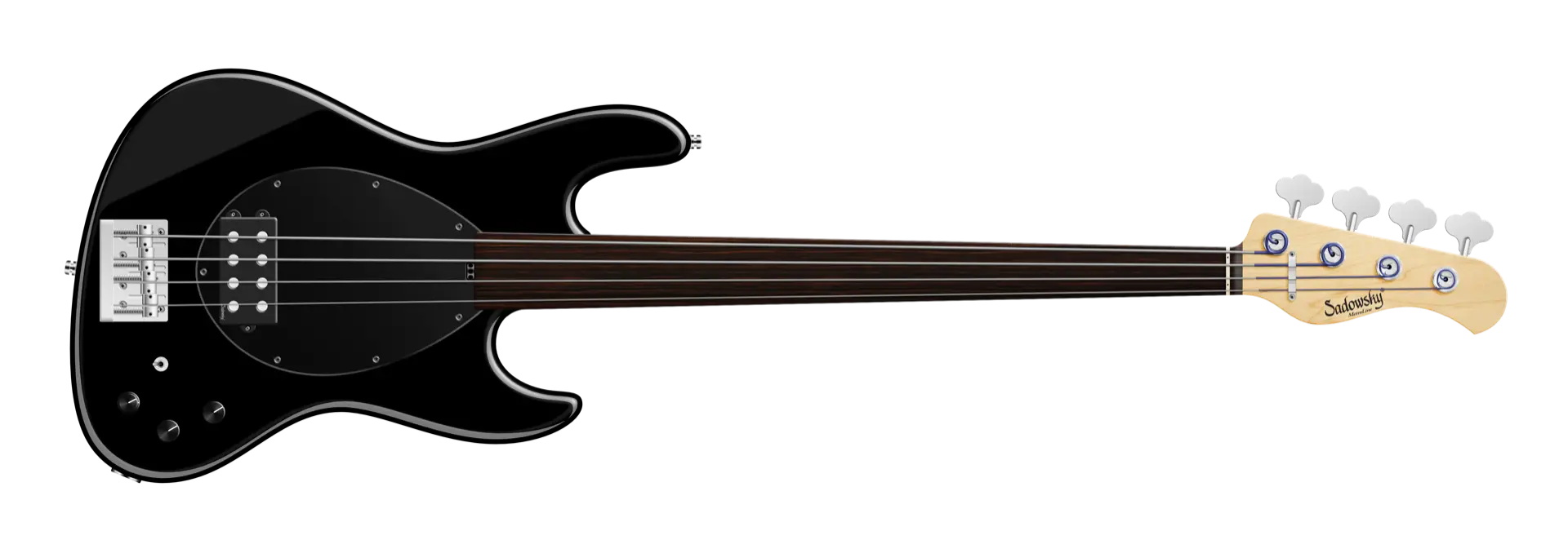 Roger Sadowsky hat es sich zur Aufgabe gemacht, ein bereits sehr erfolgreiches Bass-Design noch weiter zu verbessern, indem er eine Reihe von Detailveränderungen vornahm. Mit der von ihm entwickelten Elektronik hat er es geschafft, den bekannten Vintage M-Bass-Sound auf ein neues Level zu heben, so dass man heute von einem typischen Sadowsky Tone sprechen kann: Niemals harsch klingend, mit tiefen, definierten, keinesfalls dumpfen Bässen, präsenten, jedoch nicht aufdringlichen Mitten sowie süßen und luftigen Höhen. Dieser 4-saitige Fretless-Bass, hier in einer Solid Black High Polish Lackierung, hat einen leichten, verkleinerten J-Style Korpus (chambered), der aus amerikanischer Roterle gefertigt ist. Der Hals ist aus amerikanischem Ahorn gefertigt und verfügt über ein Tigerstripe Ebony Griffbrett. Besondere Merkmale dieses Basses sind ein Sadowsky M-Tonabnehmer, aktive Elektronik mit True Bypass, Vintage Tone Control, Treble und Bass Boost und ein 3-Wege-Kippschalter für Humbucker-Pickup-Konfiguration (Seriell / Parallel / Single Coil). Dieser Bass verfügt außerdem über leichte, offene Sadowsky-Mechaniken und die Sadowsky Quick String Release Bridge. Sadowsky MetroLine 21-Fret Vintage M Bässe werden ausschließlich in Deutschland hergestellt. Das Gewicht eines Basses beträgt nie mehr als 4,0 kg und ist damit auch für Bassisten interessant, die neben einem modernen Bass-Sound auch eine leichtgewichtige Lösung für die Bühne suchen.