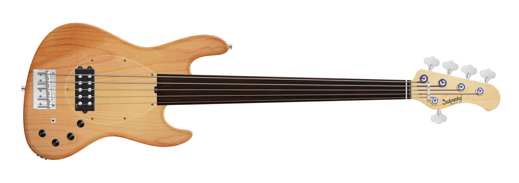 Roger Sadowsky hat es sich zur Aufgabe gemacht, ein bereits sehr erfolgreiches Bass-Design noch weiter zu verbessern, indem er eine Reihe von Detailveränderungen vornahm. Mit der von ihm entwickelten Elektronik hat er es geschafft, den bekannten Vintage M-Bass-Sound auf ein neues Level zu heben, so dass man heute von einem typischen Sadowsky Tone sprechen kann: Niemals harsch klingend, mit tiefen, definierten, keinesfalls dumpfen Bässen, präsenten, jedoch nicht aufdringlichen Mitten sowie süßen und luftigen Höhen. Dieser 5-saitige Fretless-Bass, hier in einer Natural Transparent Satin Lackierung, hat einen leichten, verkleinerten J-Style Korpus (chambered), der aus amerikanischer Roterle gefertigt ist. Der Hals ist aus amerikanischem Ahorn gefertigt und verfügt über ein Tigerstripe Ebony Griffbrett. Besondere Merkmale dieses Basses sind ein Sadowsky M-Tonabnehmer, aktive Elektronik mit True Bypass, Vintage Tone Control, Treble und Bass Boost und ein 3-Wege-Kippschalter für Humbucker-Pickup-Konfiguration (Seriell / Parallel / Single Coil). Dieser Bass verfügt außerdem über leichte, offene Sadowsky-Mechaniken und die Sadowsky Quick String Release Bridge. Sadowsky MetroLine 21-Fret Vintage M Bässe werden ausschließlich in Deutschland hergestellt. Das Gewicht eines Basses beträgt nie mehr als 4,0 kg und ist damit auch für Bassisten interessant, die neben einem modernen Bass-Sound auch eine leichtgewichtige Lösung für die Bühne suchen.