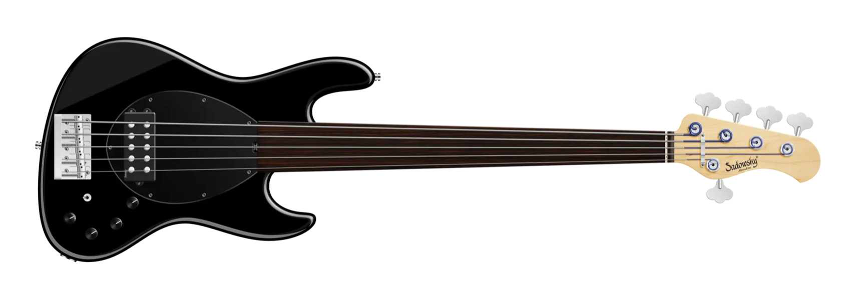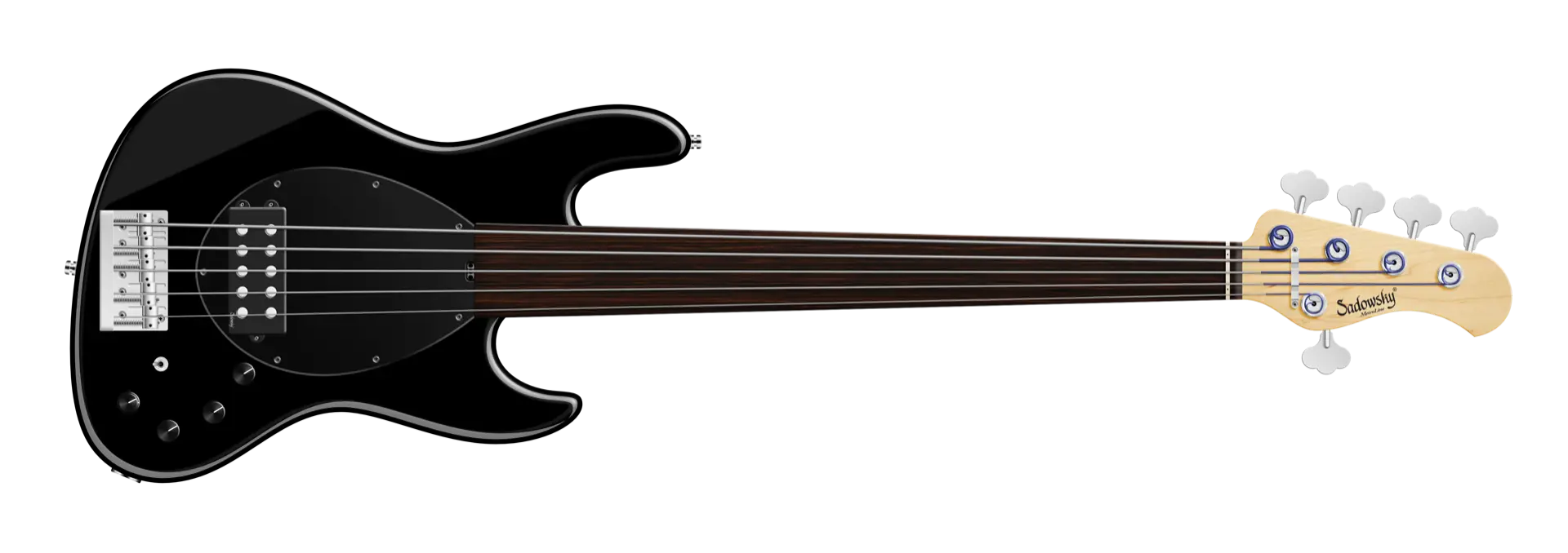 Roger Sadowsky hat es sich zur Aufgabe gemacht, ein bereits sehr erfolgreiches Bass-Design noch weiter zu verbessern, indem er eine Reihe von Detailveränderungen vornahm. Mit der von ihm entwickelten Elektronik hat er es geschafft, den bekannten Vintage M-Bass-Sound auf ein neues Level zu heben, so dass man heute von einem typischen Sadowsky Tone sprechen kann: Niemals harsch klingend, mit tiefen, definierten, keinesfalls dumpfen Bässen, präsenten, jedoch nicht aufdringlichen Mitten sowie süßen und luftigen Höhen. Dieser 5-saitige Fretless-Bass, hier in einer Solid Black High Polish Lackierung, hat einen leichten, verkleinerten J-Style Korpus (chambered), der aus amerikanischer Roterle gefertigt ist. Der Hals ist aus amerikanischem Ahorn gefertigt und verfügt über ein Tigerstripe Ebony Griffbrett. Besondere Merkmale dieses Basses sind ein Sadowsky M-Tonabnehmer, aktive Elektronik mit True Bypass, Vintage Tone Control, Treble und Bass Boost und ein 3-Wege-Kippschalter für Humbucker-Pickup-Konfiguration (Seriell / Parallel / Single Coil). Dieser Bass verfügt außerdem über leichte, offene Sadowsky-Mechaniken und die Sadowsky Quick String Release Bridge. Sadowsky MetroLine 21-Fret Vintage M Bässe werden ausschließlich in Deutschland hergestellt. Das Gewicht eines Basses beträgt nie mehr als 4,0 kg und ist damit auch für Bassisten interessant, die neben einem modernen Bass-Sound auch eine leichtgewichtige Lösung für die Bühne suchen.