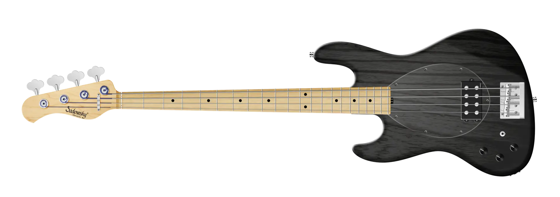 Roger Sadowsky hat es sich zur Aufgabe gemacht, ein bereits sehr erfolgreiches Bass-Design noch weiter zu verbessern, indem er eine Reihe von Detailveränderungen vornahm. Mit der von ihm entwickelten Elektronik hat er es geschafft, den bekannten Vintage M-Bass-Sound auf ein neues Level zu heben, so dass man heute von einem typischen Sadowsky Tone sprechen kann: Niemals harsch klingend, mit tiefen, definierten, keinesfalls dumpfen Bässen, präsenten, jedoch nicht aufdringlichen Mitten sowie süßen und luftigen Höhen. Dieser 4-saitige Linkshänderbass, hier in einer Nirvana Black Transparent Satin Lackierung, hat einen leichten, verkleinerten J-Style Korpus (chambered), der aus amerikanischer Sumpfesche gefertigt ist. Der Hals ist aus amerikanischem Ahorn und hat ein Griffbrett aus amerikanischem Ahorn. Besondere Merkmale dieses Basses sind ein Sadowsky M-Tonabnehmer, aktive Elektronik mit True Bypass, Vintage Tone Control, Treble und Bass Boost und ein 3-Wege-Kippschalter für Humbucker-Pickup-Konfiguration (Seriell / Parallel / Single Coil). Dieser Bass verfügt außerdem über leichte, offene Sadowsky-Mechaniken und die Sadowsky Quick String Release Bridge. Sadowsky MetroLine 21-Fret Vintage M Bässe werden ausschließlich in Deutschland hergestellt. Das Gewicht eines Basses beträgt nie mehr als 4,0 kg und ist damit auch für Bassisten interessant, die neben einem modernen Bass-Sound auch eine leichtgewichtige Lösung für die Bühne suchen.