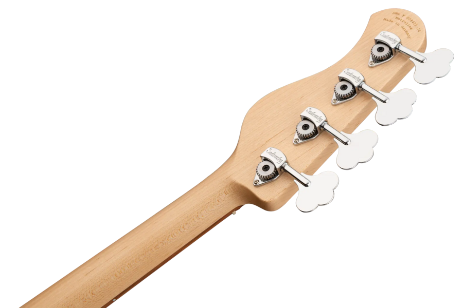 Roger Sadowsky hat es sich zur Aufgabe gemacht, ein bereits sehr erfolgreiches Bass-Design noch weiter zu verbessern, indem er eine Reihe von Detailveränderungen vornahm. Mit der von ihm entwickelten Elektronik hat er es geschafft, den bekannten M/J-Bass-Sound auf ein neues Level zu heben, so dass man heute von einem typischen Sadowsky Tone sprechen kann: Niemals harsch klingend, mit tiefen, definierten, keinesfalls dumpfen Bässen, präsenten, jedoch nicht aufdringlichen Mitten sowie süßen und luftigen Höhen. Dieser 4-saitige Bass, hier in einer Nirvana Black Transparent Satin Lackierung, hat einen leichten, verkleinerten J-Style Korpus (chambered), der aus amerikanischer Roterle gefertigt ist. Der Hals ist aus amerikanischem Ahorn gefertigt und verfügt über ein Morado (Pau Ferro) Griffbrett. Besondere Merkmale dieses Basses sind Sadowsky M und J Pickups, aktive Elektronik mit True Bypass, Vintage Tone Control, Treble und Bass Boost und ein 3-Wege-Kippschalter für Humbucker-Pickup-Konfiguration (Seriell / Parallel / Single Coil). Dieser Bass verfügt außerdem über leichte, offene Sadowsky-Mechaniken und die Sadowsky Quick String Release Bridge. Sadowsky MetroLine 21-Fret Vintage M/J Bässe werden ausschließlich in Deutschland hergestellt. Das Gewicht eines Basses beträgt nie mehr als 4,0 kg und ist damit auch für Bassisten interessant, die neben einem modernen Bass-Sound auch eine leichtgewichtige Lösung für die Bühne suchen.