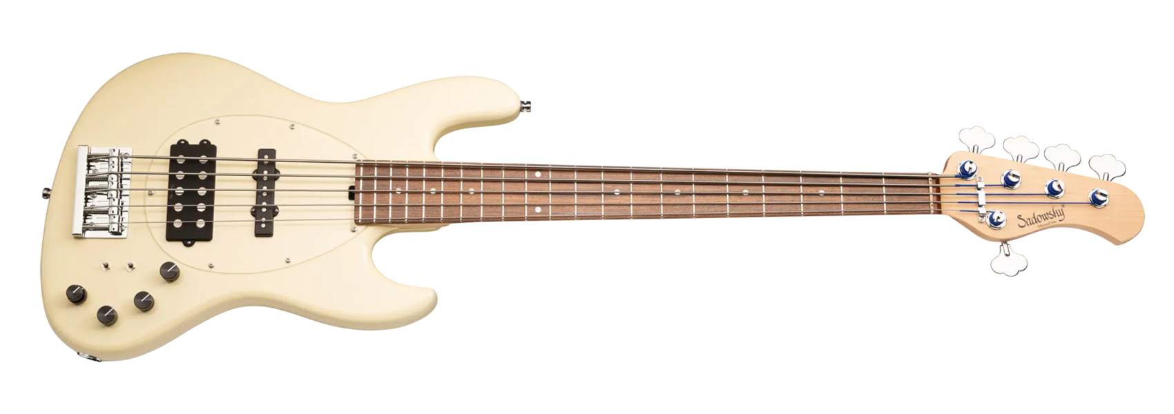 Roger Sadowsky hat es sich zur Aufgabe gemacht, ein bereits sehr erfolgreiches Bass-Design noch weiter zu verbessern, indem er eine Reihe von Detailveränderungen vornahm. Mit der von ihm entwickelten Elektronik hat er es geschafft, den bekannten M/J-Bass-Sound auf ein neues Level zu heben, so dass man heute von einem typischen Sadowsky Tone sprechen kann: Niemals harsch klingend, mit tiefen, definierten, keinesfalls dumpfen Bässen, präsenten, jedoch nicht aufdringlichen Mitten sowie süßen und luftigen Höhen. Dieser 5-saitige Bass, hier in einer Solid Olympic White High Polish Lackierung, hat einen leichten, verkleinerten J-Style Korpus (chambered), der aus amerikanischer Roterle gefertigt ist. Der Hals ist aus amerikanischem Ahorn gefertigt und verfügt über ein Morado (Pau Ferro) Griffbrett. Besondere Merkmale dieses Basses sind Sadowsky M und J Pickups, aktive Elektronik mit True Bypass, Vintage Tone Control, Treble und Bass Boost und zwei 3-Wege-Kippschalter für Pickup-Konfiguration (Seriell / Parallel / Single Coil). Dieser Bass verfügt außerdem über leichte, offene Sadowsky-Mechaniken und die Sadowsky Quick String Release Bridge. Sadowsky MetroLine 21-Fret Vintage M/J Bässe werden ausschließlich in Deutschland hergestellt. Das Gewicht eines Basses beträgt nie mehr als 4,0 kg und ist damit auch für Bassisten interessant, die neben einem modernen Bass-Sound auch eine leichtgewichtige Lösung für die Bühne suchen.