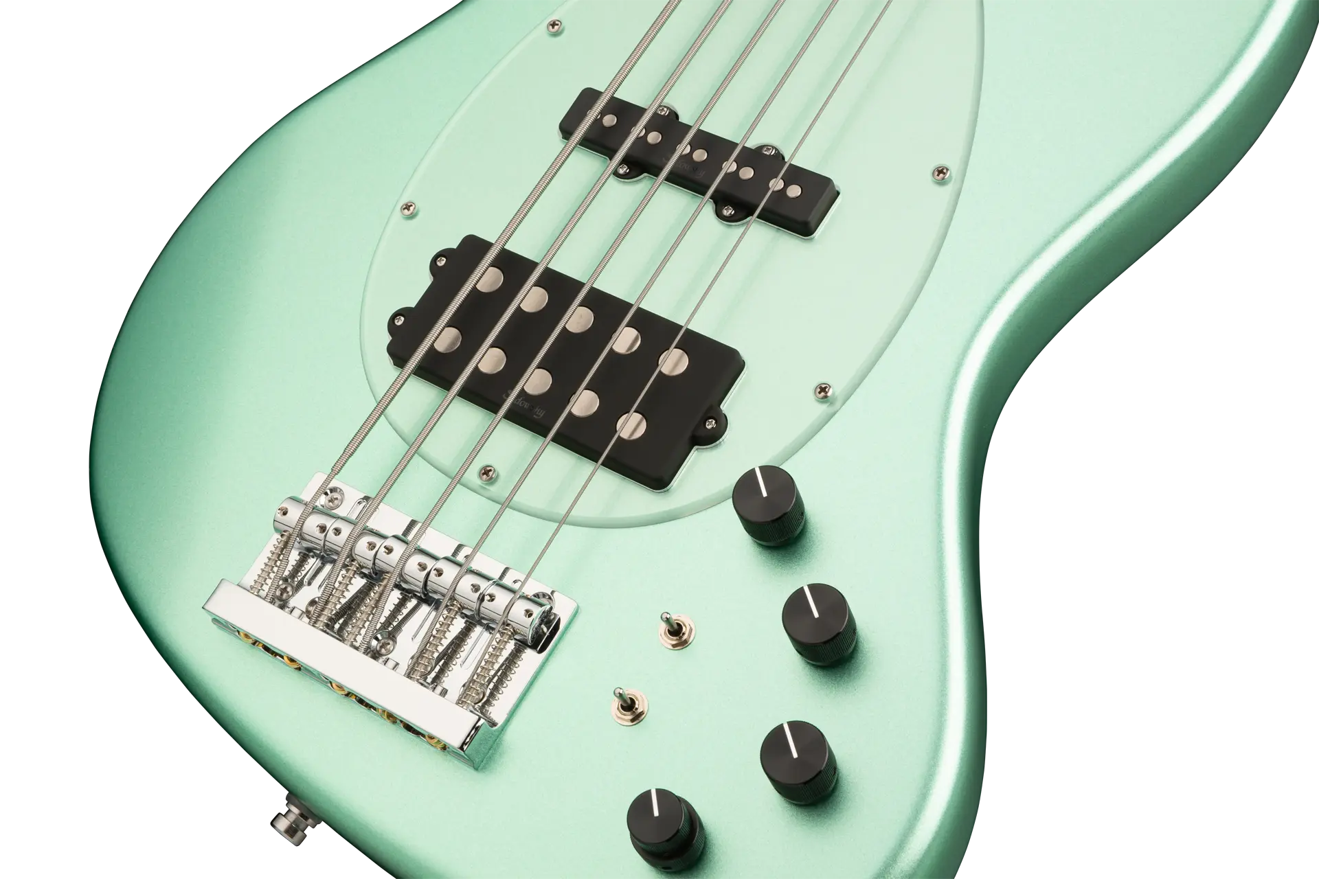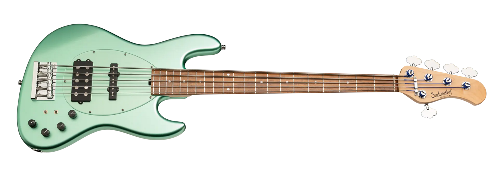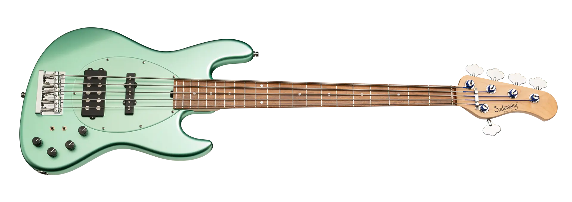 Roger Sadowsky hat es sich zur Aufgabe gemacht, ein bereits sehr erfolgreiches Bass-Design noch weiter zu verbessern, indem er eine Reihe von Detailveränderungen vornahm. Mit der von ihm entwickelten Elektronik hat er es geschafft, den bekannten M/J-Bass-Sound auf ein neues Level zu heben, so dass man heute von einem typischen Sadowsky Tone sprechen kann: Niemals harsch klingend, mit tiefen, definierten, keinesfalls dumpfen Bässen, präsenten, jedoch nicht aufdringlichen Mitten sowie süßen und luftigen Höhen. Dieser 5-saitige Bass, hier in einer Solid Sage Green Metallic Satin Lackierung, hat einen leichten, verkleinerten J-Style Korpus (chambered), der aus amerikanischer Roterle gefertigt ist. Der Hals ist aus amerikanischem Ahorn gefertigt und verfügt über ein Morado (Pau Ferro) Griffbrett. Besondere Merkmale dieses Basses sind Sadowsky M und J Pickups, aktive Elektronik mit True Bypass, Vintage Tone Control, Treble und Bass Boost und zwei 3-Wege-Kippschalter für Pickup-Konfiguration (Seriell / Parallel / Single Coil). Dieser Bass verfügt außerdem über leichte, offene Sadowsky-Mechaniken und die Sadowsky Quick String Release Bridge. Sadowsky MetroLine 21-Fret Vintage M/J Bässe werden ausschließlich in Deutschland hergestellt. Das Gewicht eines Basses beträgt nie mehr als 4,0 kg und ist damit auch für Bassisten interessant, die neben einem modernen Bass-Sound auch eine leichtgewichtige Lösung für die Bühne suchen.
