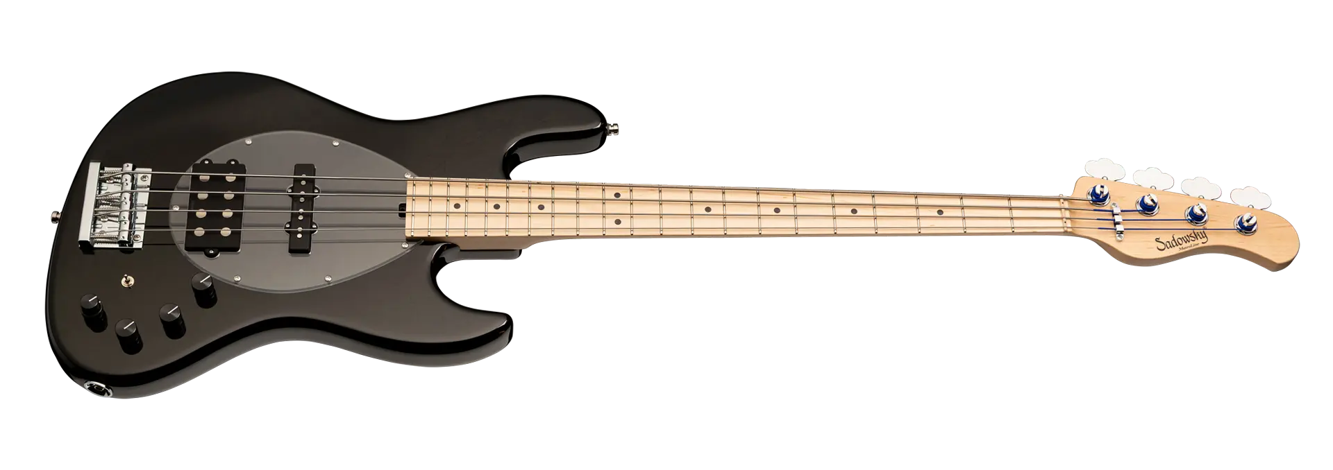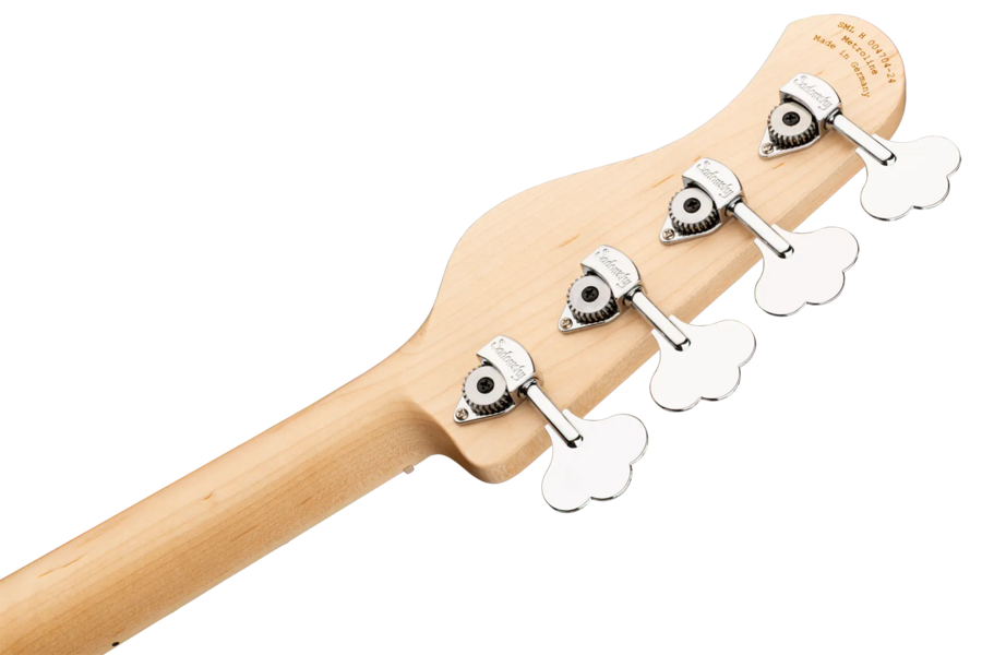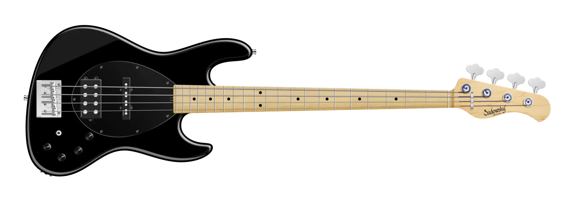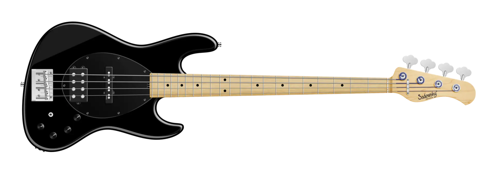 Roger Sadowsky hat es sich zur Aufgabe gemacht, ein bereits sehr erfolgreiches Bass-Design noch weiter zu verbessern, indem er eine Reihe von Detailveränderungen vornahm. Mit der von ihm entwickelten Elektronik hat er es geschafft, den bekannten M/J-Bass-Sound auf ein neues Level zu heben, so dass man heute von einem typischen Sadowsky Tone sprechen kann: Niemals harsch klingend, mit tiefen, definierten, keinesfalls dumpfen Bässen, präsenten, jedoch nicht aufdringlichen Mitten sowie süßen und luftigen Höhen. Dieser 4-saitige Bass, hier in einer Solid Black High Polish Lackierung, hat einen leichten, verkleinerten J-Style Korpus (chambered), der aus amerikanischer Sumpfesche gefertigt ist. Der Hals ist aus amerikanischem Ahorn und hat ein Griffbrett aus amerikanischem Ahorn. Besondere Merkmale dieses Basses sind Sadowsky M und J Pickups, aktive Elektronik mit True Bypass, Vintage Tone Control, Treble und Bass Boost und ein 3-Wege-Kippschalter für Humbucker-Pickup-Konfiguration (Seriell / Parallel / Single Coil). Dieser Bass verfügt außerdem über leichte, offene Sadowsky-Mechaniken und die Sadowsky Quick String Release Bridge. Sadowsky MetroLine 21-Fret Vintage M/J Bässe werden ausschließlich in Deutschland hergestellt. Das Gewicht eines Basses beträgt nie mehr als 4,0 kg und ist damit auch für Bassisten interessant, die neben einem modernen Bass-Sound auch eine leichtgewichtige Lösung für die Bühne suchen.